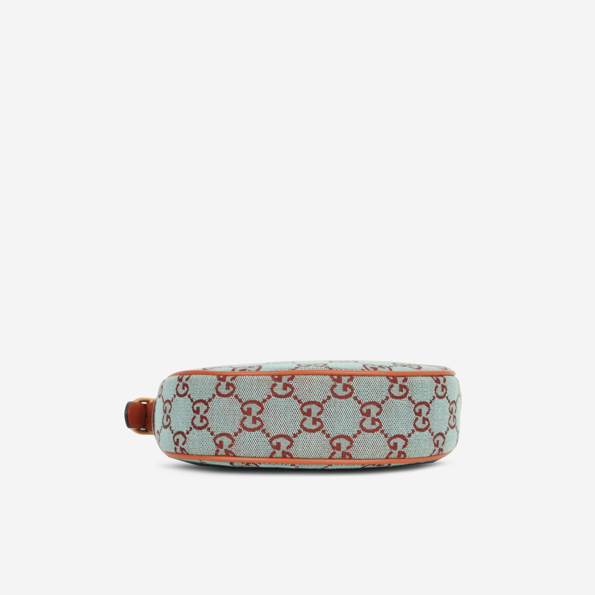 Crafted from durable GG Supreme canvas in a unique azure-blue hue, the bag features a structured half-moon silhouette, a smooth leather top strap with adjustable buckle, and a secure top zip closure. The interior offers just enough space for your essentials; Phone, cardholder, keys. Making it a stylish yet practical choice.