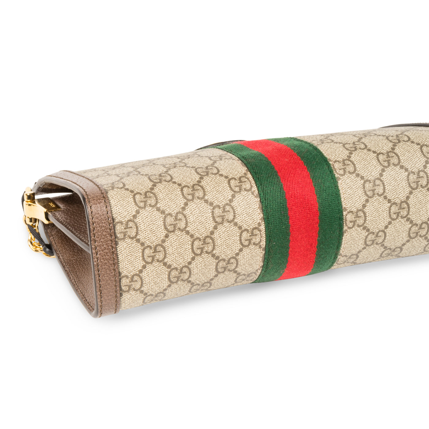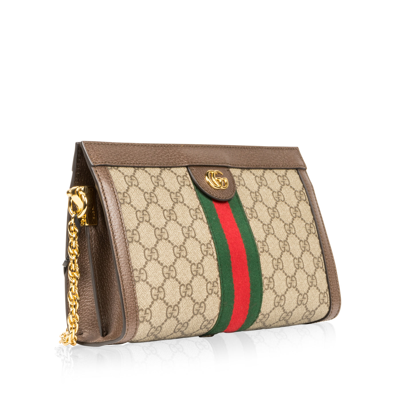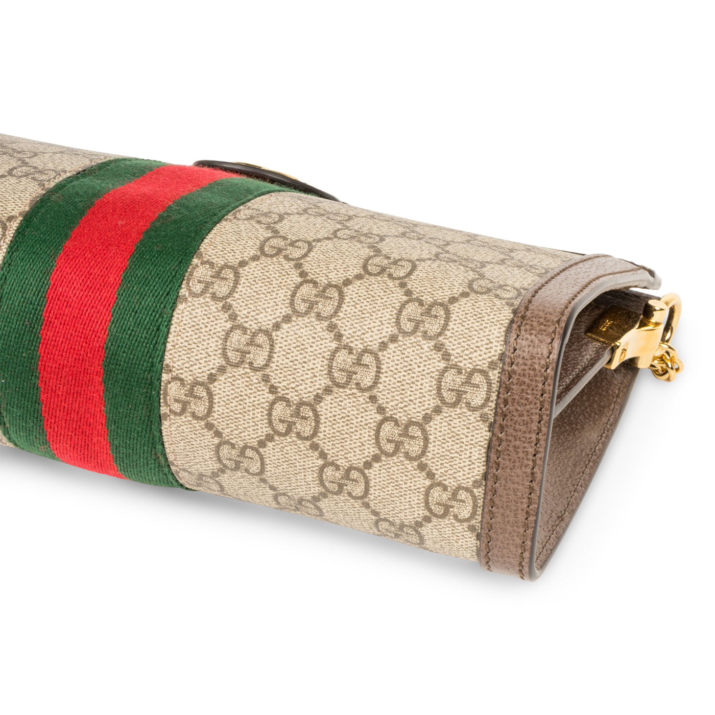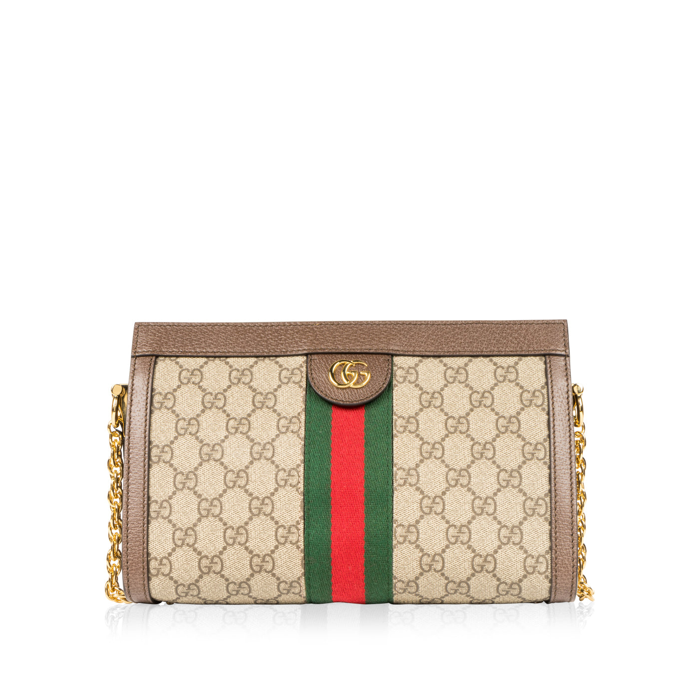Crafted from the brand's signature GG Supreme monogram canvas, Gucci presents their Ophidia cross-body bag. Accented with gold-tone hardware, brown leather trimming and Gucci's classic red and green fabric strip down the front, the Ophidia is an absolute must-have for any woman with a love for luxury and a soft spot for timepieces. Though the Ophidia isn't a vintage model, it is the perfect balance between old and new. A somewhat modernized version of a traditional Gucci bag, the Ophidia reminds us of a vintage piece that's been pushed forward into the contemporary world - and we're here for it. Suitable for any and every occasion, this bag is the ideal compliment to pretty much anything in your wardrobe. A sophisticated piece with elements of youth and playfulness, the Ophidia is a well-worthy addition to any woman's luxury handbag collection.