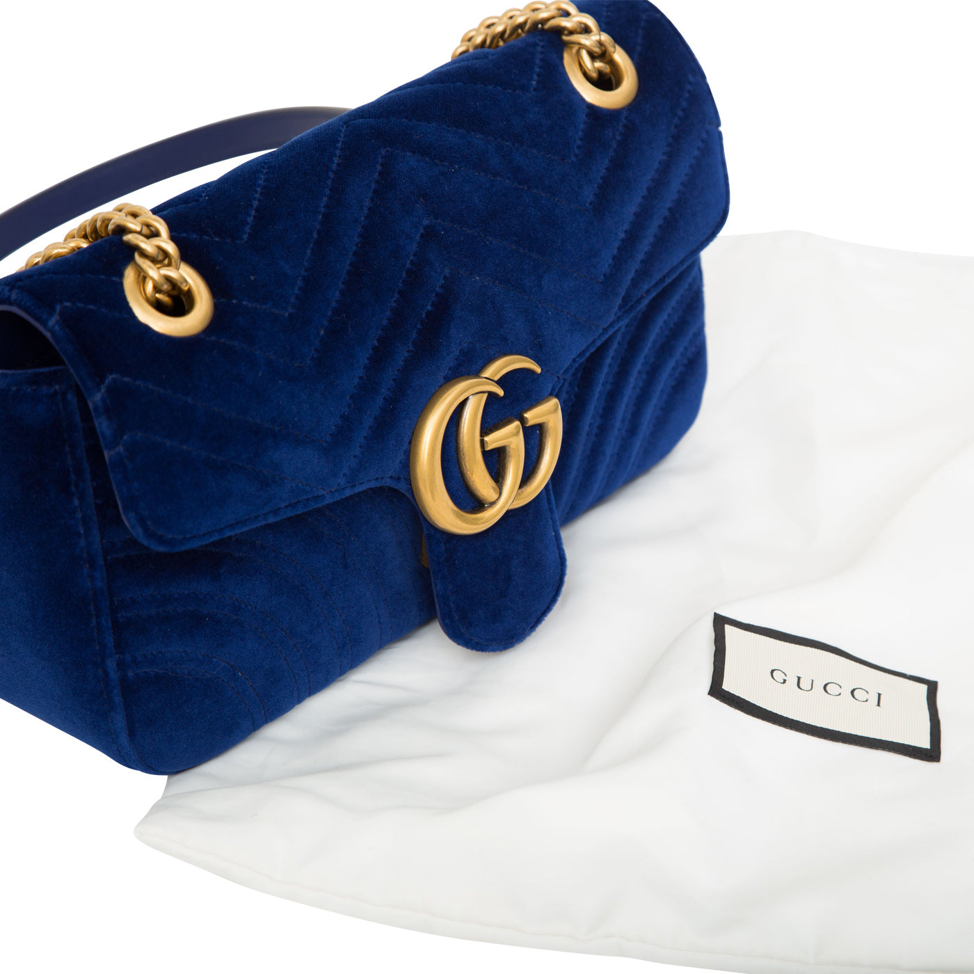 This stunning velvet Marmont cross-body bag is definitely one to add to your collection. Gucci hits the mark when it comes to subtle statement pieces - with its rich, royal blue hue and romantic, antique-gold tone hardware, you'll be sure to discreetly stand out from the crowd. Offering the best of both worlds, you can dress this bag up with heels and a cocktail dress or a t-shirt and trousers for a more casual look. With a singular, spacious compartment and one interior zip pocket, you can be sure to carry all of your every day essentials in style.