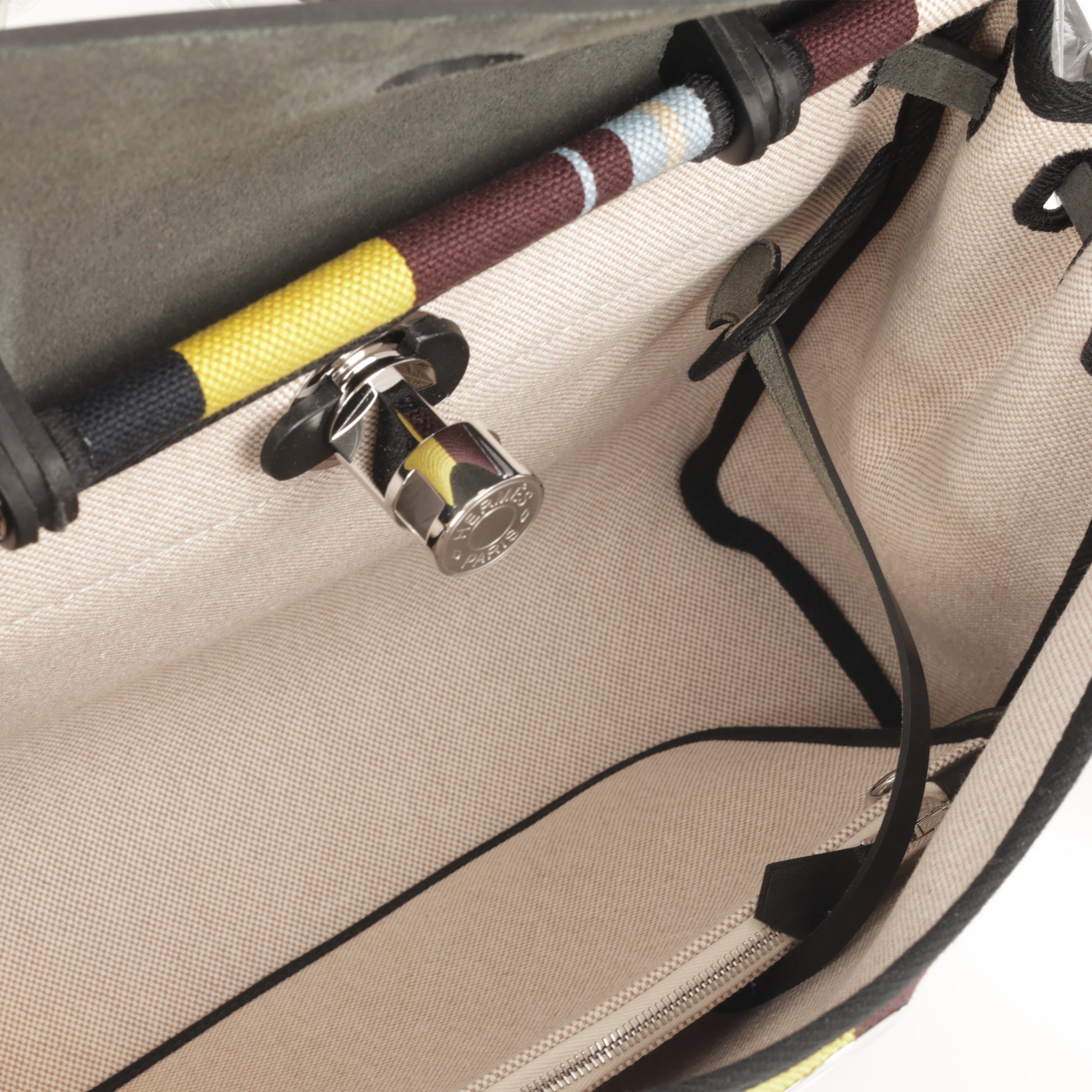 The Herbag 31 combines timeless elegance with modern craftsmanship, making it a true icon of style and versatility. Crafted from natural canvas, adorned with the distinctive "Rayures d'Equipage" motif, and accented with Hunter cowhide and lacquer finishes, this bag is the perfect blend of sophistication and functionality.