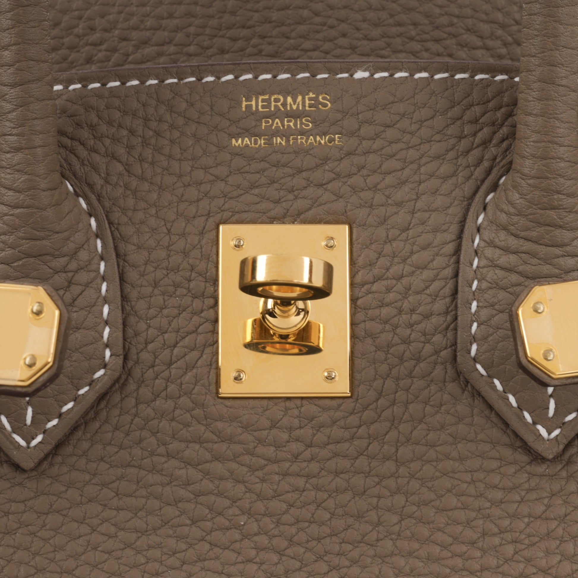 This Hermès Birkin 25 is crafted in the brand's signature Etoupe Togo leather, a versatile taupe-grey hue accented with warm gold hardware. A favourite among collectors, Etoupe is both modern and timeless - making it one of the most wearable shades in the Hermès colour family.