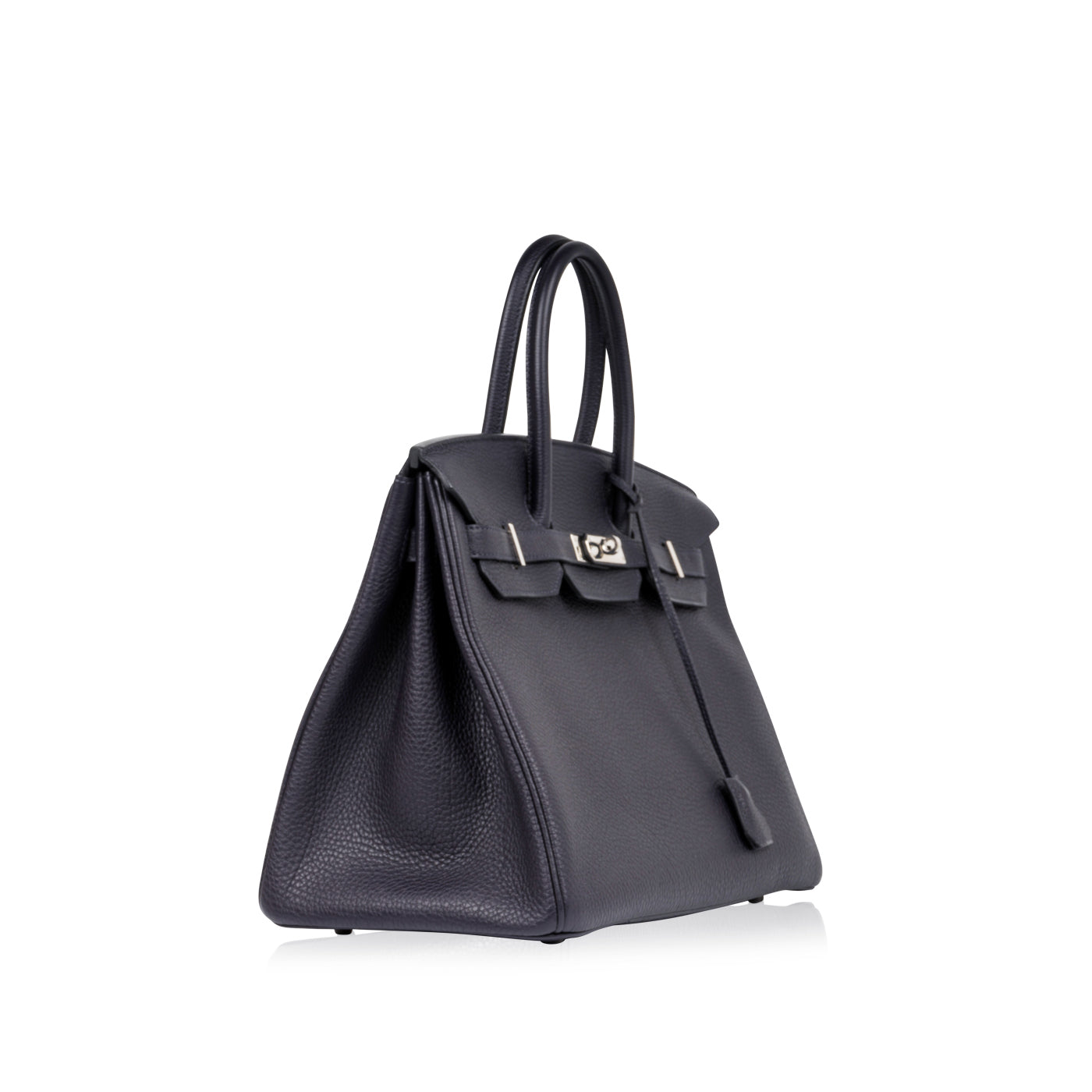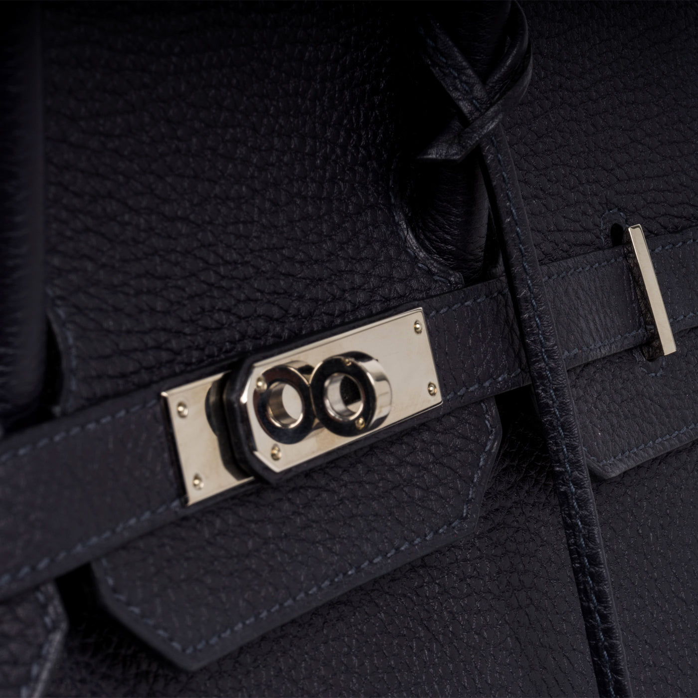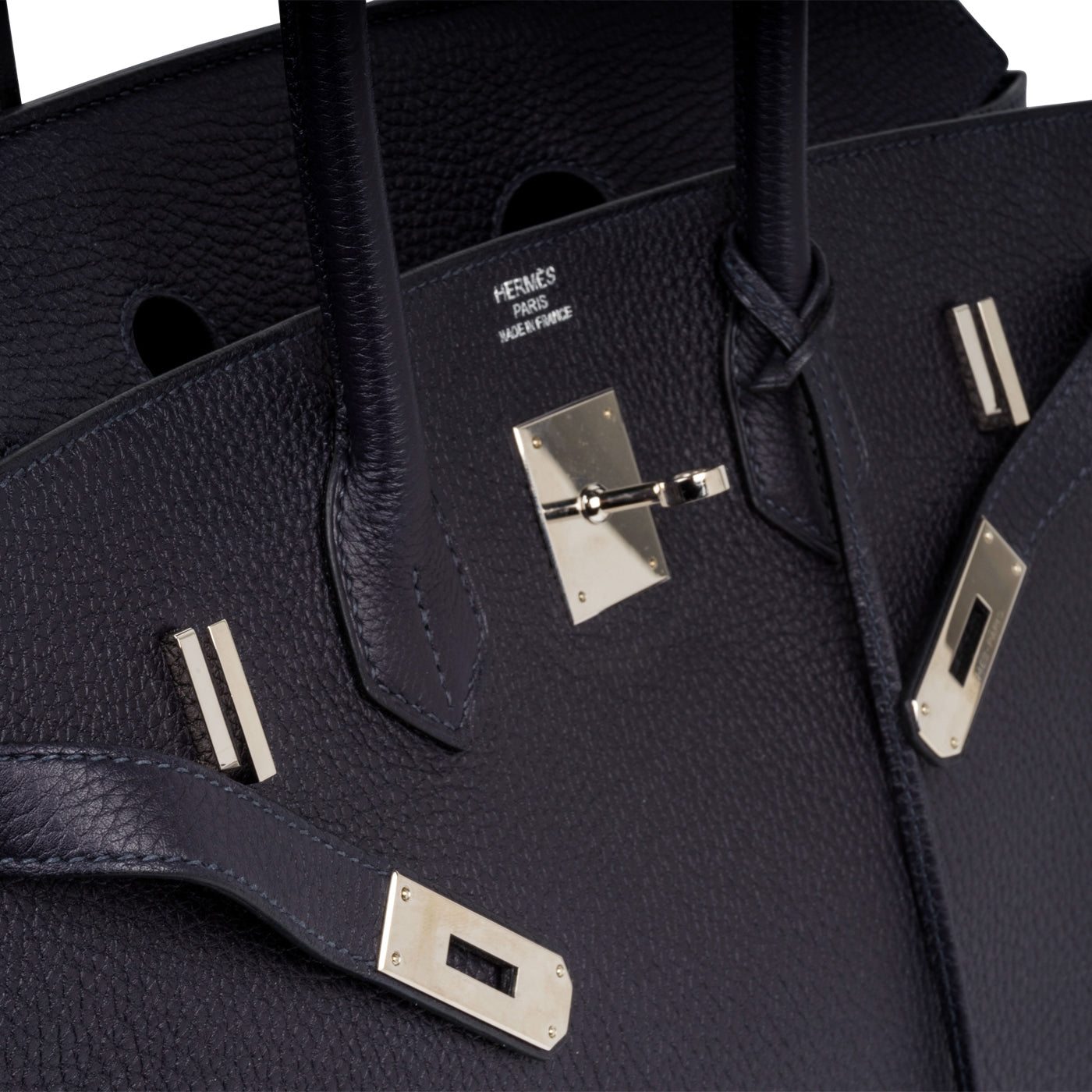 The Hermès Birkin is among the most famous bags in the world. First created in 1983 after Jean-Louis Dumas met Jane Birkin on a flight from Paris to London. In the short flight, Birkin explained that she needed a bag which was spacious enough for everything she needed to carry, with plenty of pockets as well. He sketched the first bag there and then, and the rest is history. Thirty-four years later, this bag has been created in a huge variety of styles and materials. This version of the Birkin is crafted out of stunning, Blue Nuit Togo leather and finished with palladium hardware.
