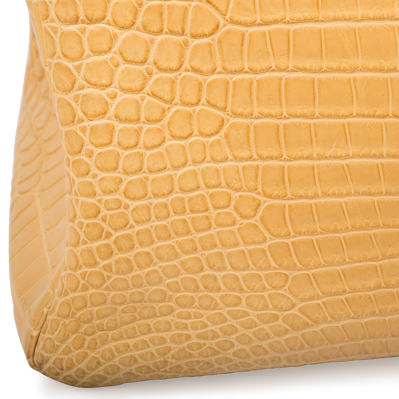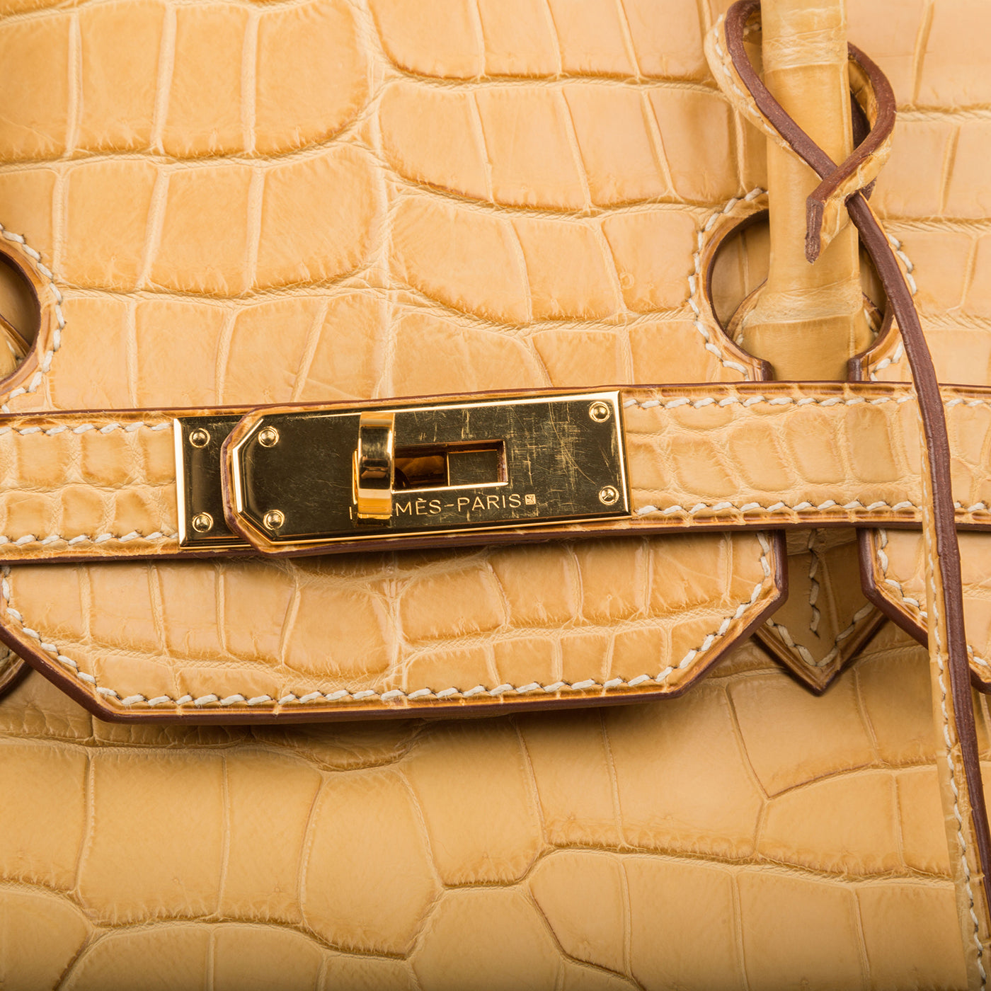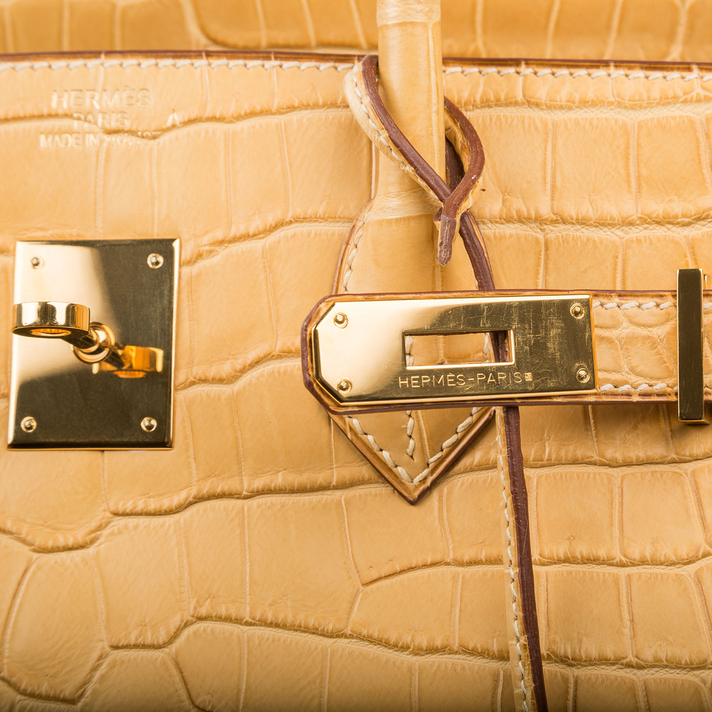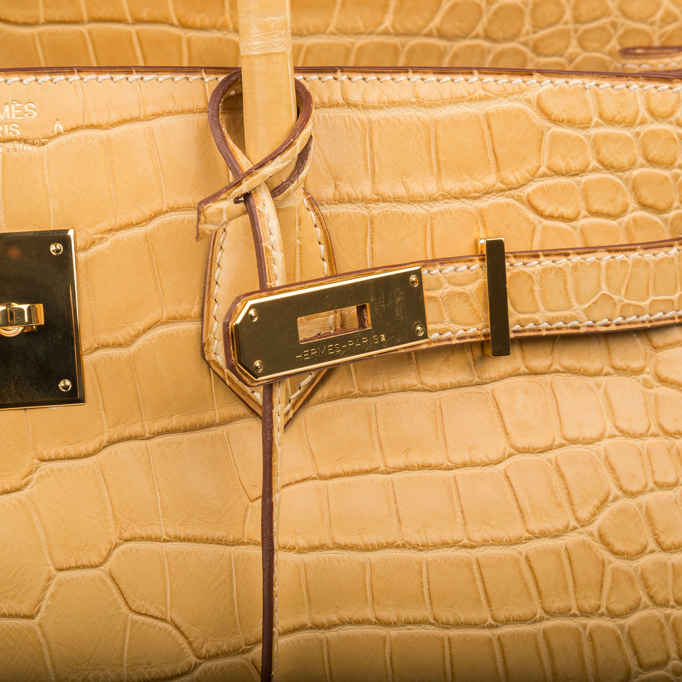 Alongside its coveted sister bag, the Kelly, Hermès presents their iconic Birkin bag - the most internationally recognised and in-demand bag in the world. It holds an extremely elite reputation for being a status symbol, as well as a luxury handbag that offers everything you may need. Expertly constructed from extremely rare Porous Crocodile, this Birkin is a complete statement. This particular piece is made from Matte finished Mais Crocodile and perfectly complimenting gold hardware. An absolute must-have for any woman with a love for ultra-luxury, the Birkin is the ultimate addition to any luxury handbag collection.