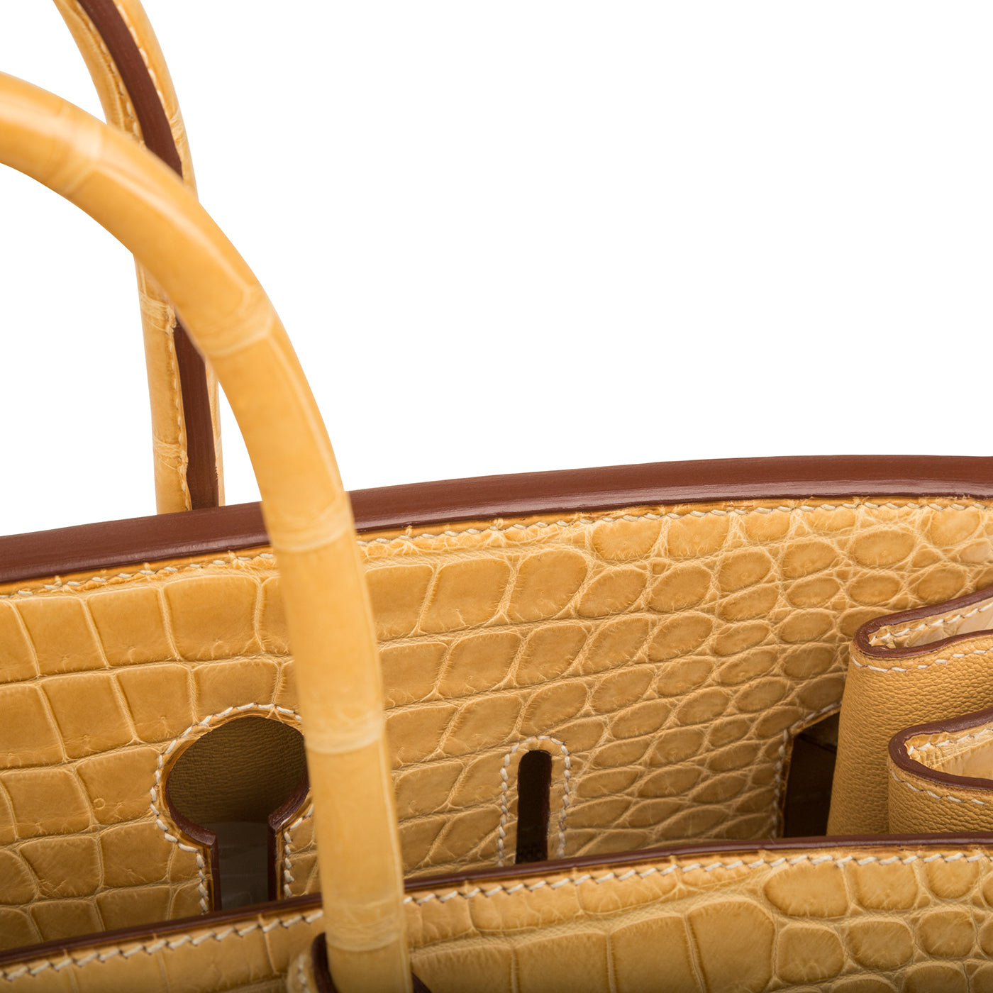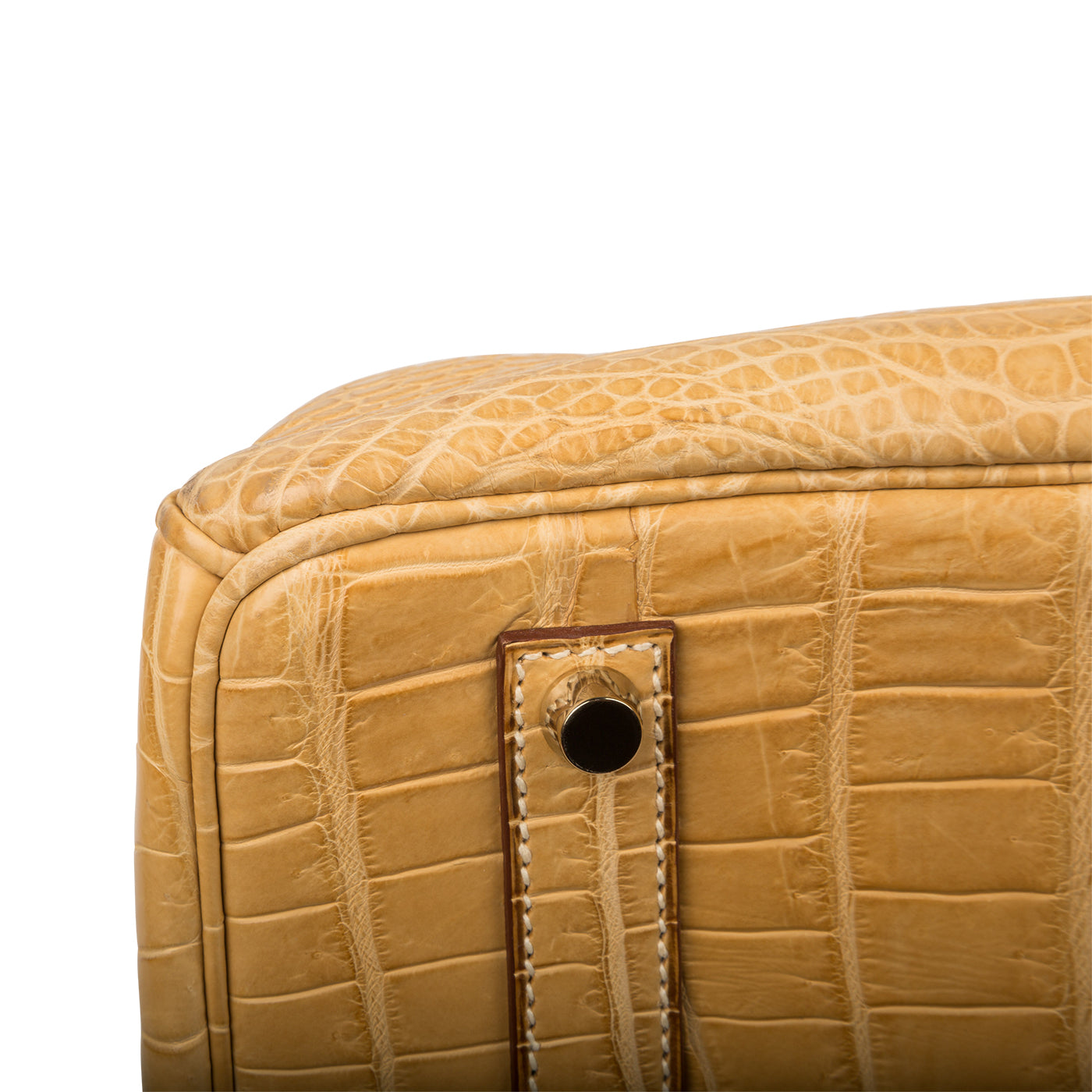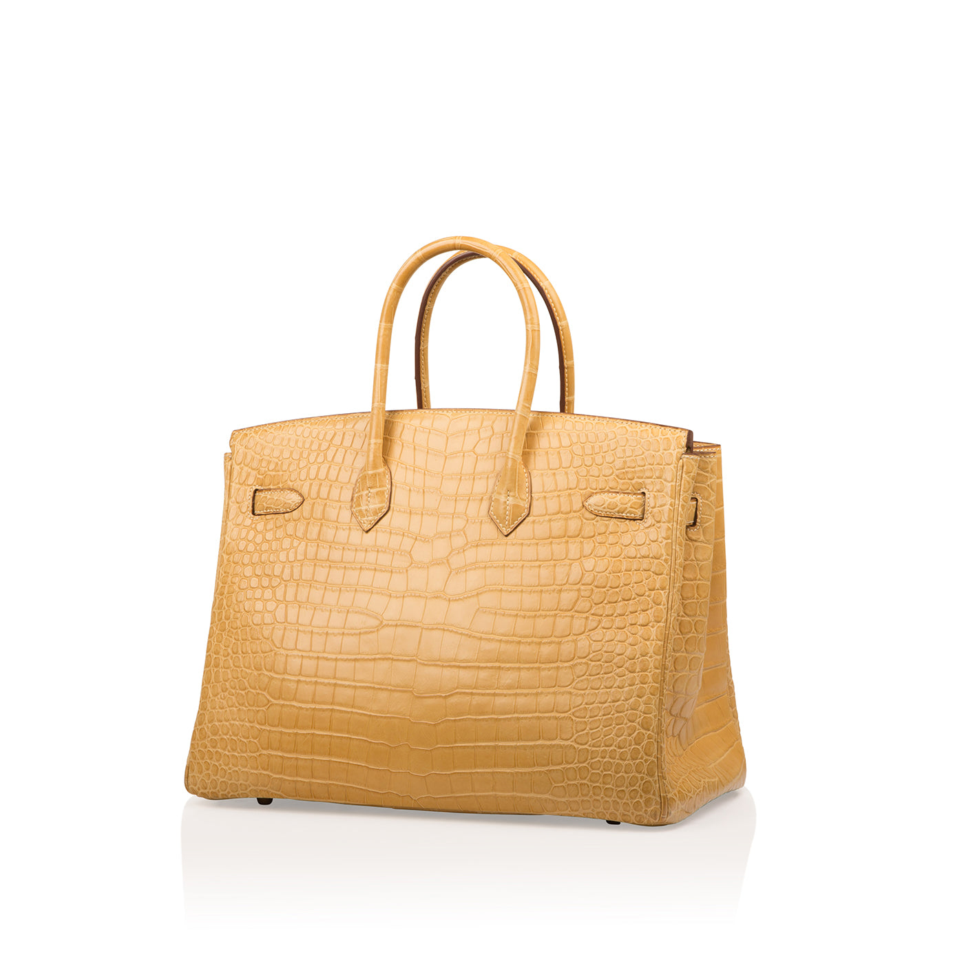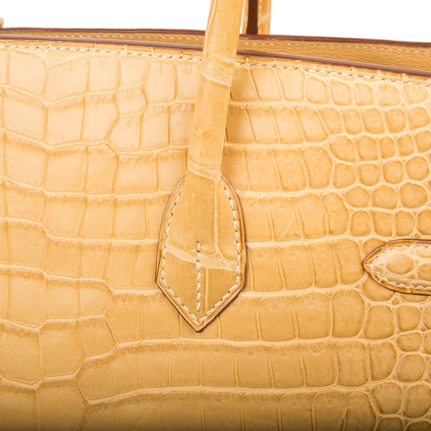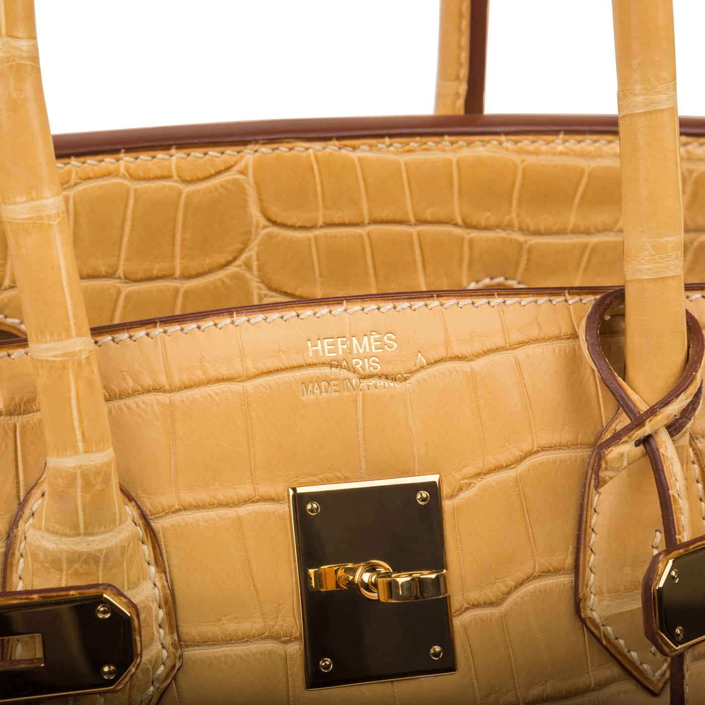 Alongside its coveted sister bag, the Kelly, Hermès presents their iconic Birkin bag - the most internationally recognised and in-demand bag in the world. It holds an extremely elite reputation for being a status symbol, as well as a luxury handbag that offers everything you may need. Expertly constructed from extremely rare Porous Crocodile, this Birkin is a complete statement. This particular piece is made from Matte finished Mais Crocodile and perfectly complimenting gold hardware. An absolute must-have for any woman with a love for ultra-luxury, the Birkin is the ultimate addition to any luxury handbag collection.