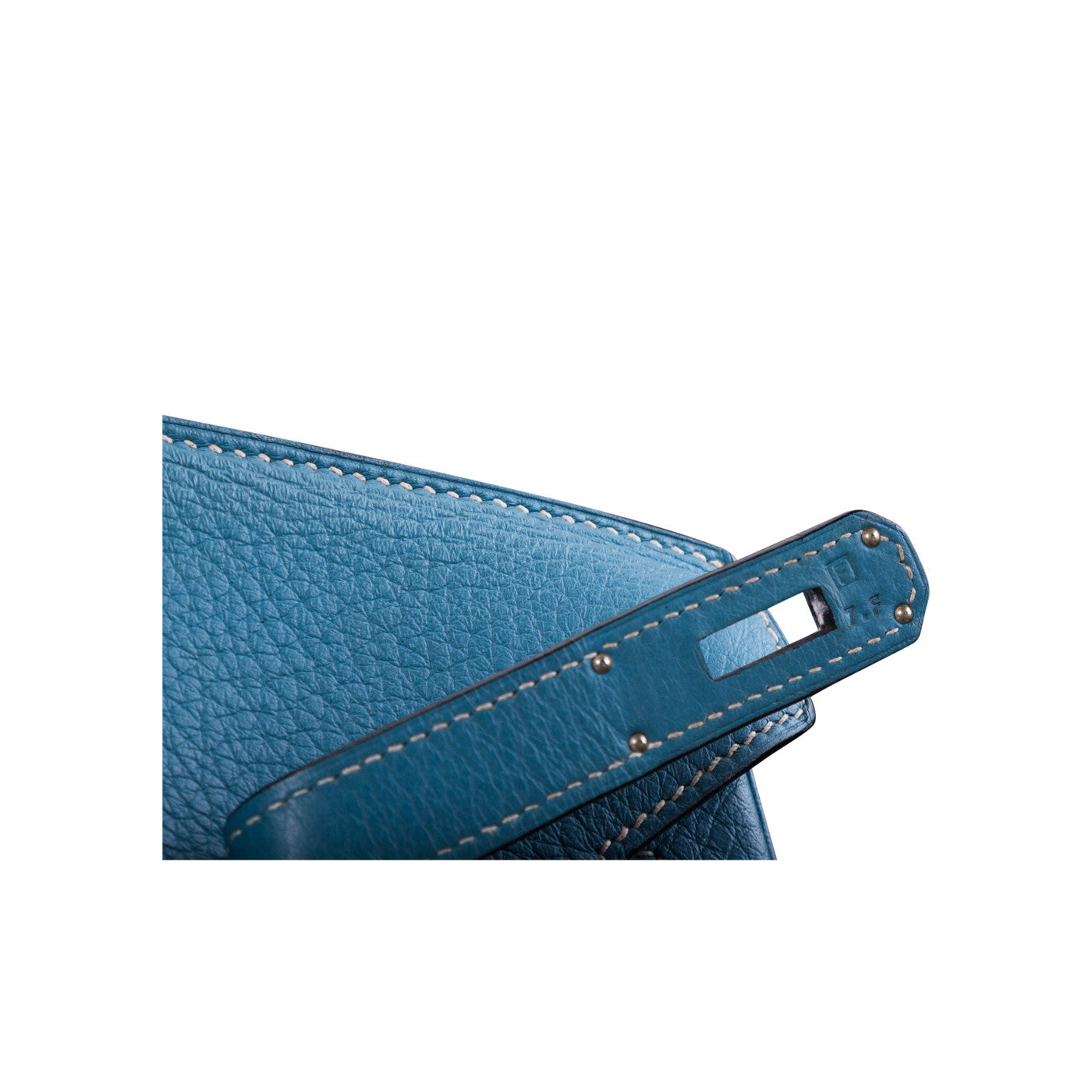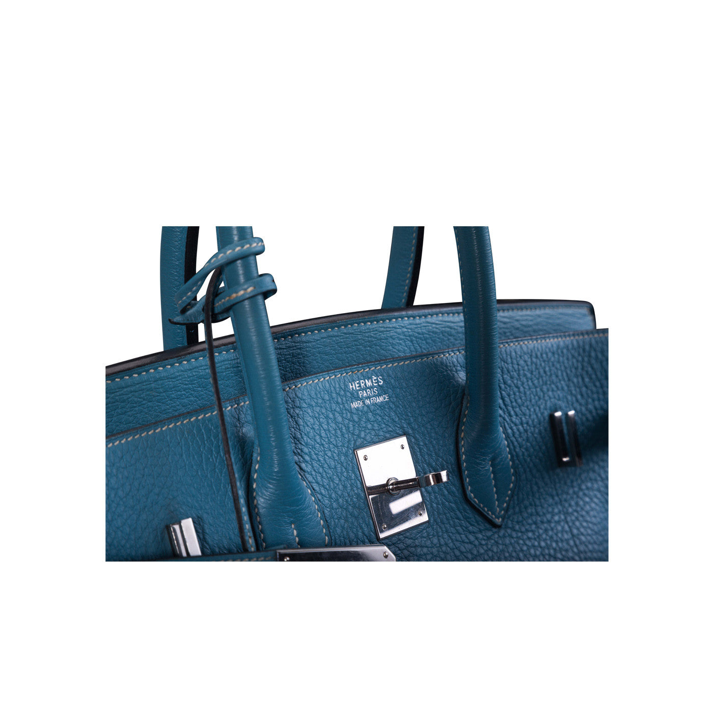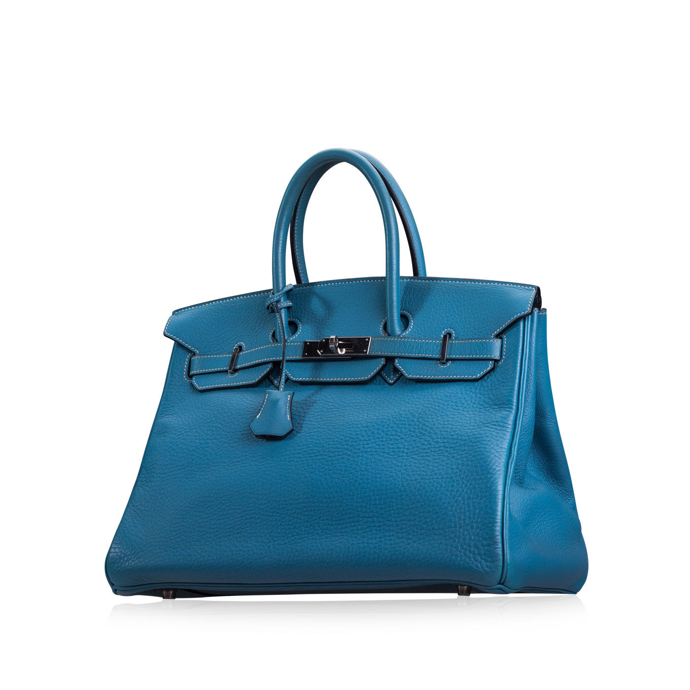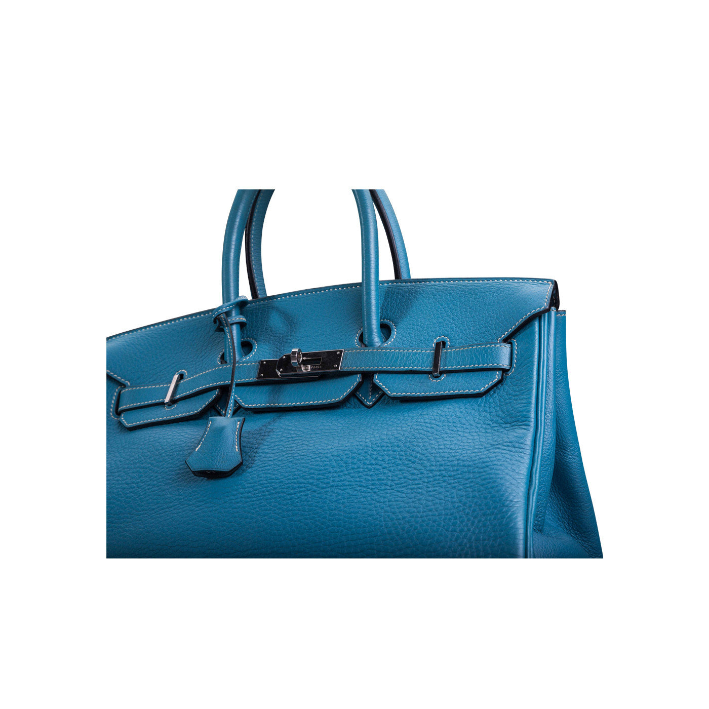 This Birkin 35 is the perfect size to carry everything you need, and comes in a stunning summer blue. The palladium hardware is modern and fresh for 2017. The Hermès Birkin is among the most famous bags in the world. First created in 1983 after Jean-Louis Dumas met Jane Birkin on a flight from Paris to London. In the short flight, Birkin explained that she needed a bag which was spacious enough for everything she needed to carry, with plenty of pockets as well. He sketched the first bag there and then, and the rest is history. Thirty-four years later, this bag has been created in a huge variety of styles and materials.