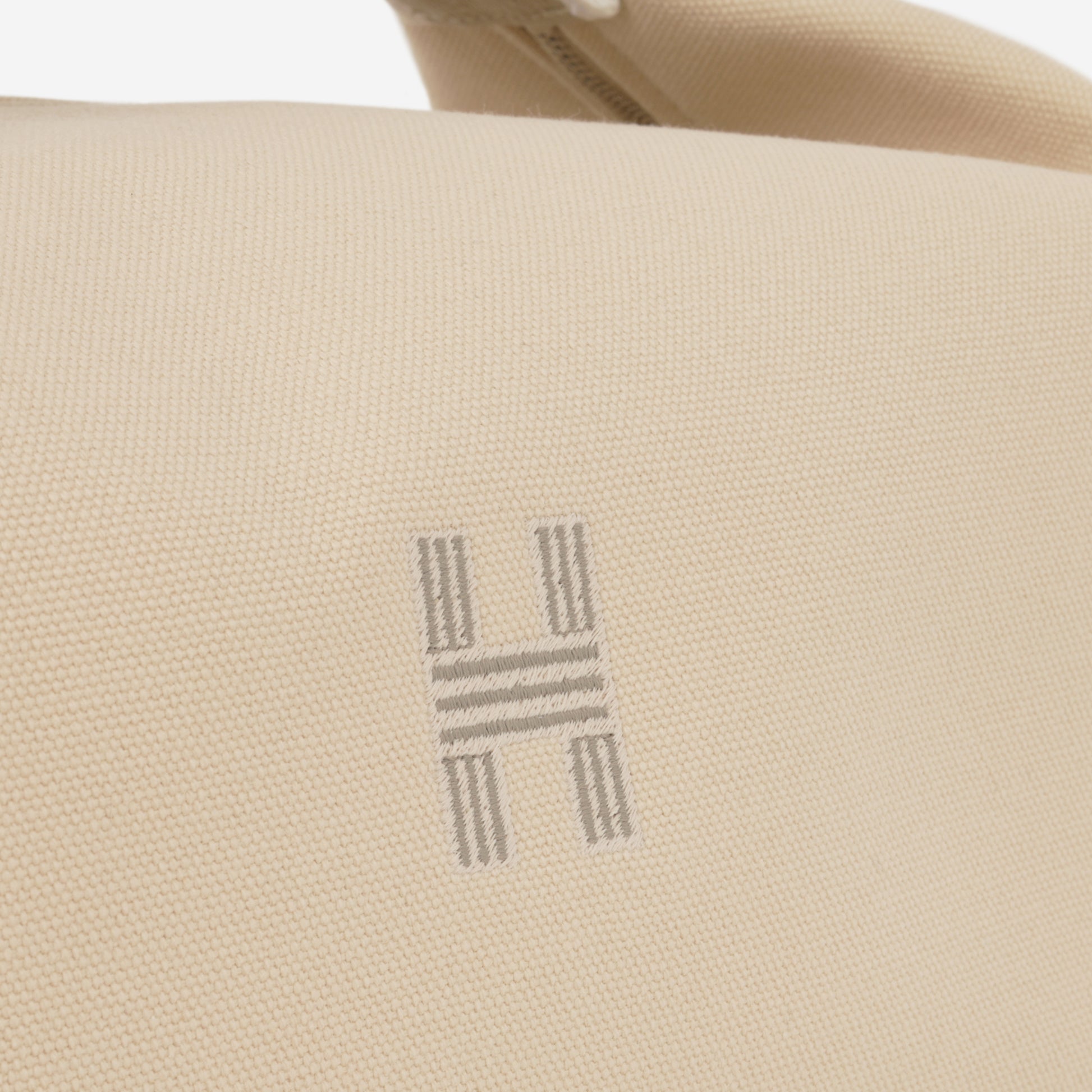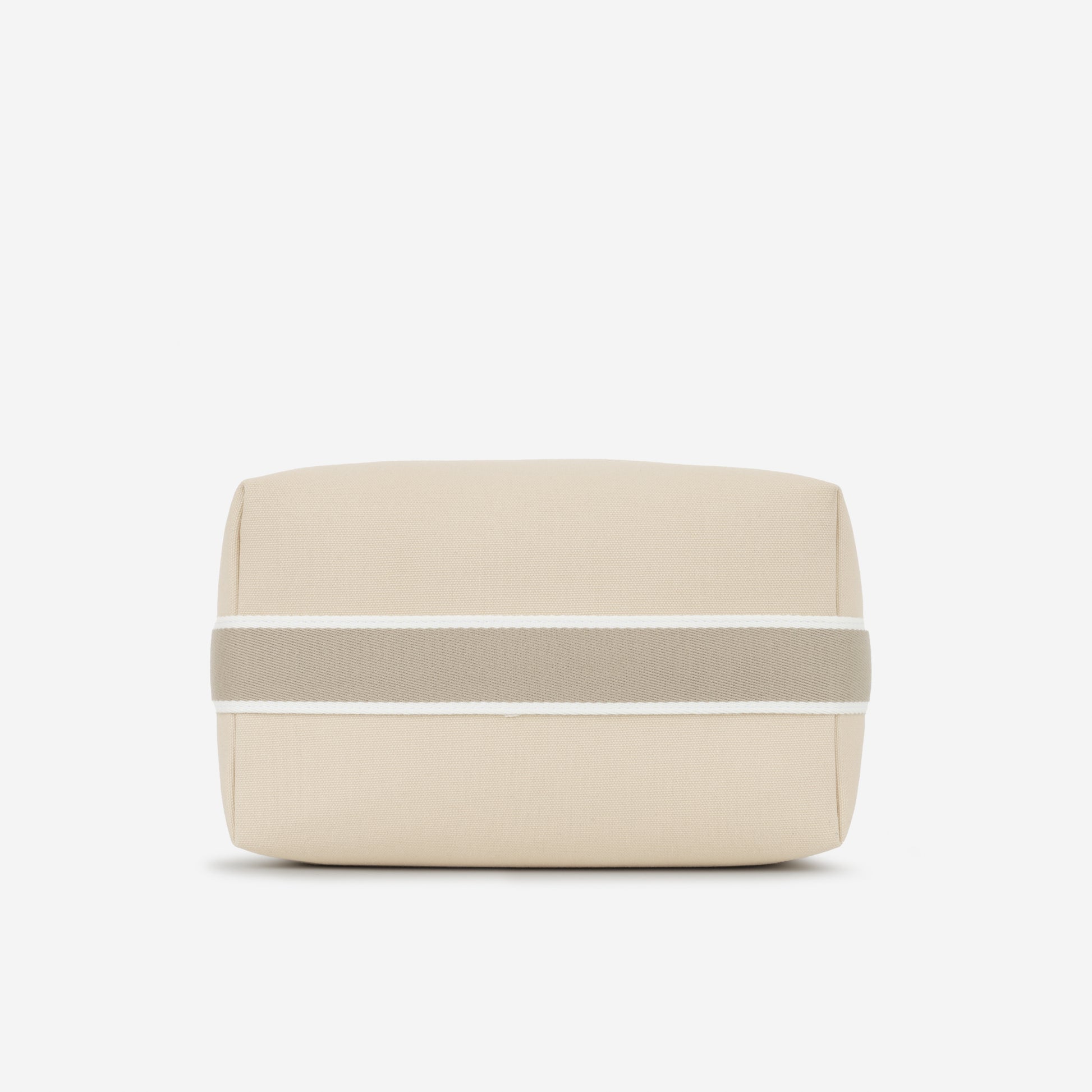 The Hermès Bride-a-Brac Case in the large model is a rare and versatile travel accessory designed in Naturel cotton canvas, accented with the House’s signature webbing trim and finished with a smooth palladium zip closure.