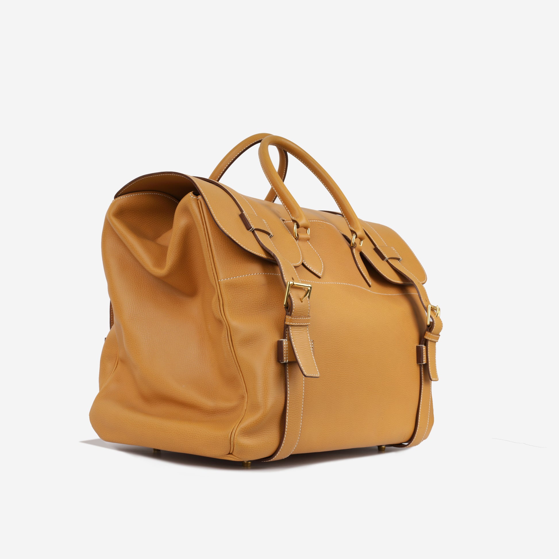 A Luxurious Legacy. Crafted with timeless elegance and meticulous artistry, this limited edition piece seamlessly blends vintage charm with modern utility. Signature Hermes motifs grace rich leather, while clever compartments cater to your travel needs. Elevate your journey with a touch of history and sophistication – own the Hermes Drag Voyage 48 today.