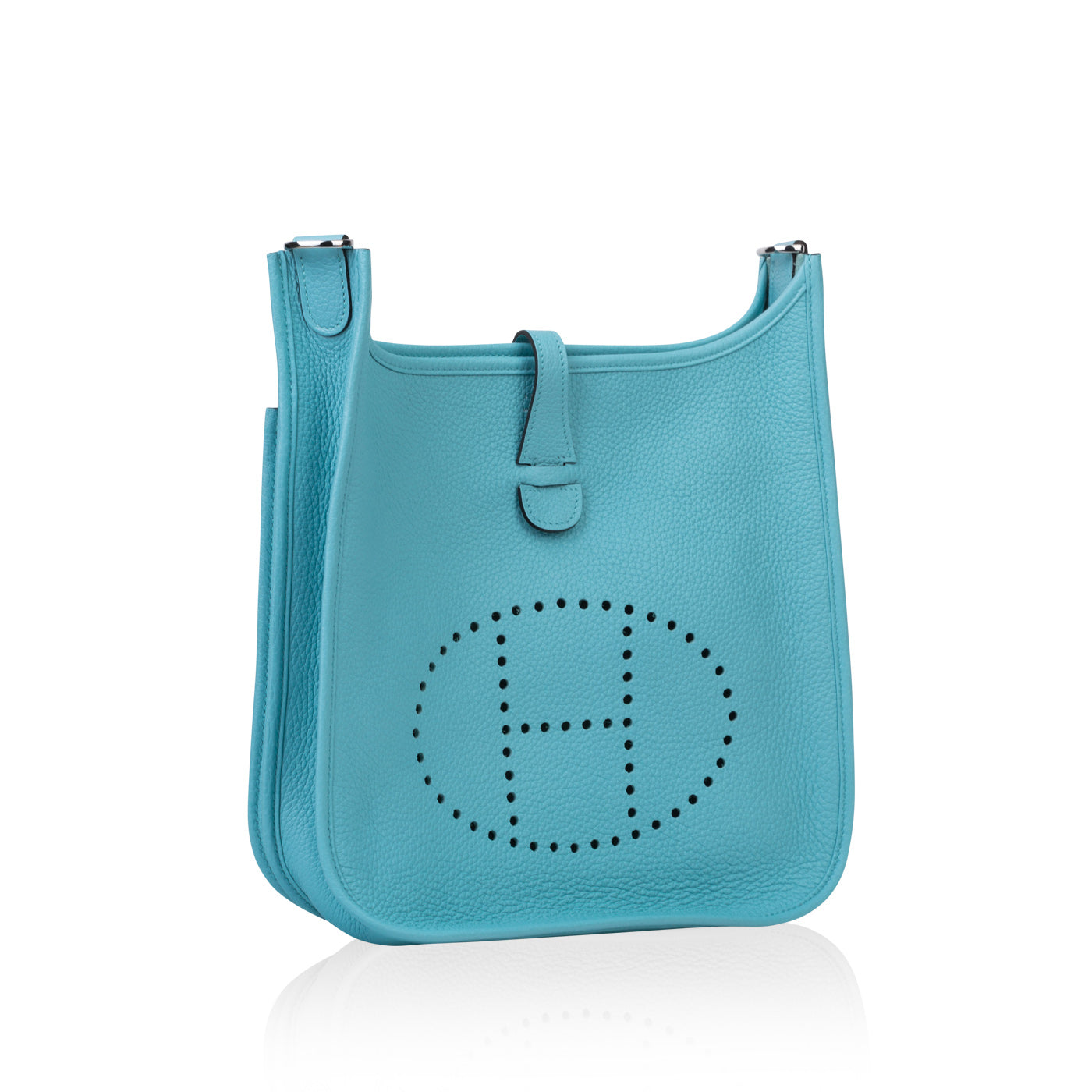 Luxury fashion house Hermès have made their name by creating some of the most highly sought after pieces in the industry. Their famous craftsmanship is impeccable and they use only the highest quality materials. The Evelyne was first introduced in the 1970’s and is named after the brands former head of the riding department, Evelyne Bertrand. Crafted out of supple, textured Clemence leather in Blue Atoll, and complete with a matching detachable strap, the Evelyne in PM size is an investment piece which brings a luxury feel to your everyday messenger bag. Catch it if you can, the Evelyne PM is a rare find in Hermès stores worldwide!