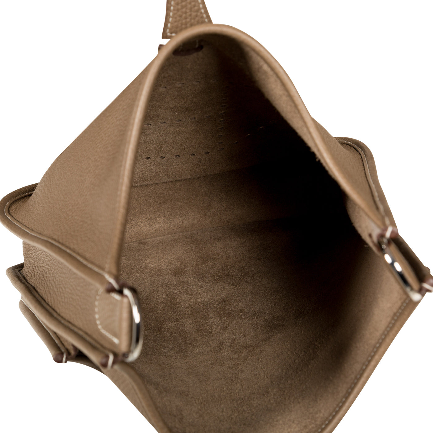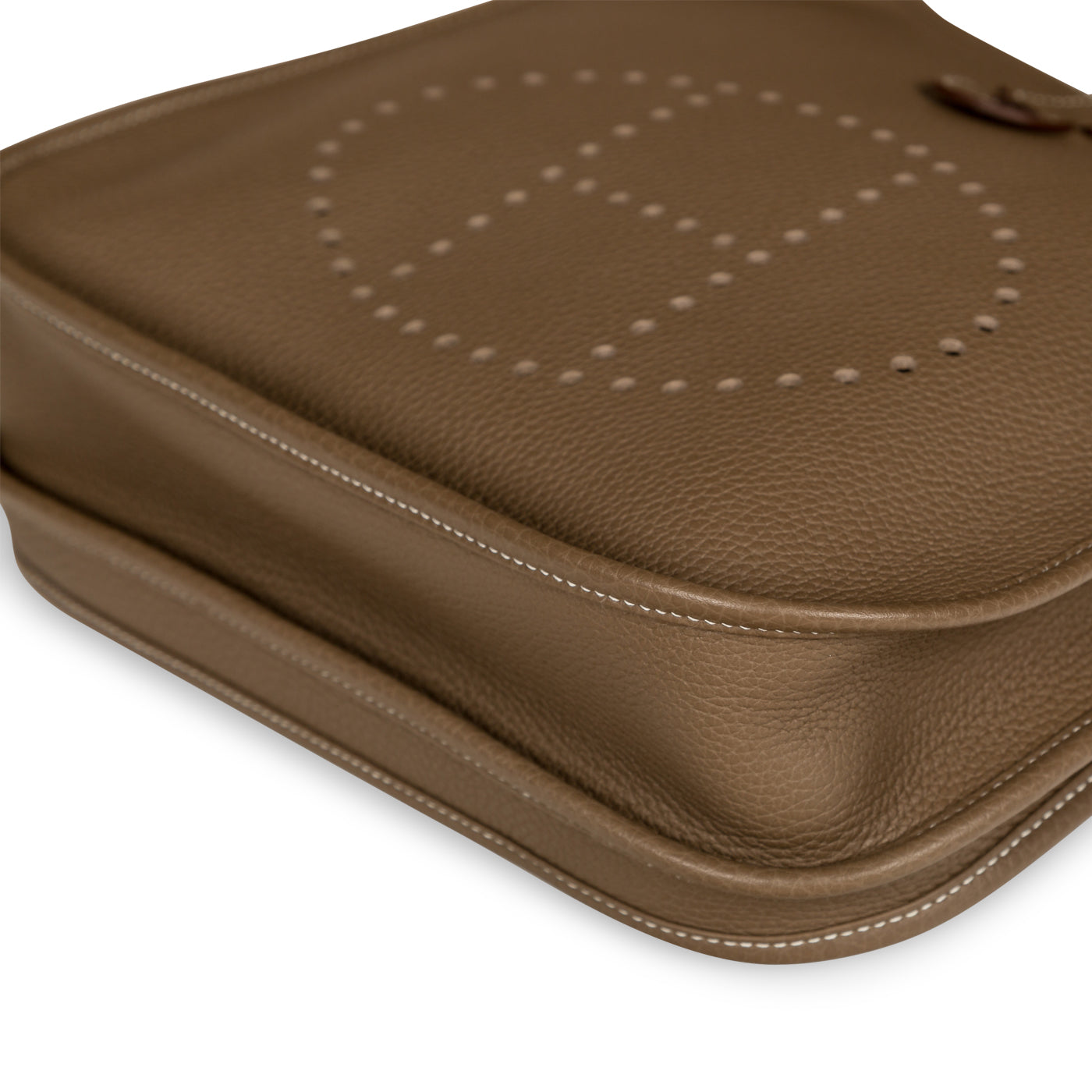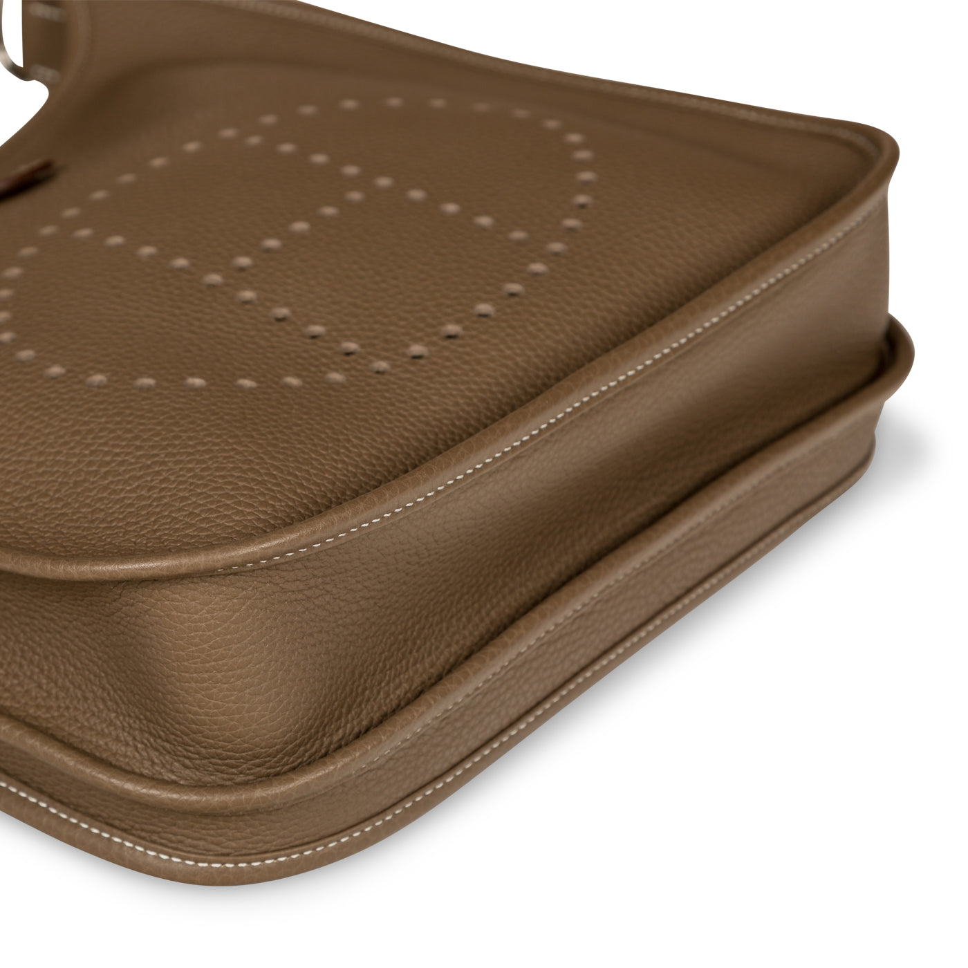 Hermes is acclaimed for their meticulous craftsmanship and pristine leather quality. The luxury fashion house is famous for creating some of the most desirable accessories in the world - particularly when it comes to bags. Named after the brands former head of the riding department, Evelyne Bertrand, the Evelyne bag was first introduced in the 1970’s. Crafted out of supple, textured Taurillon Clemence leather in Etoupe, and complete with a matching detachable strap, the Evelyne in PM size is a true investment piece. Not only never go out of style, but will also never lose its value. Don't miss out on this rare piece that is difficult to get your hands on!