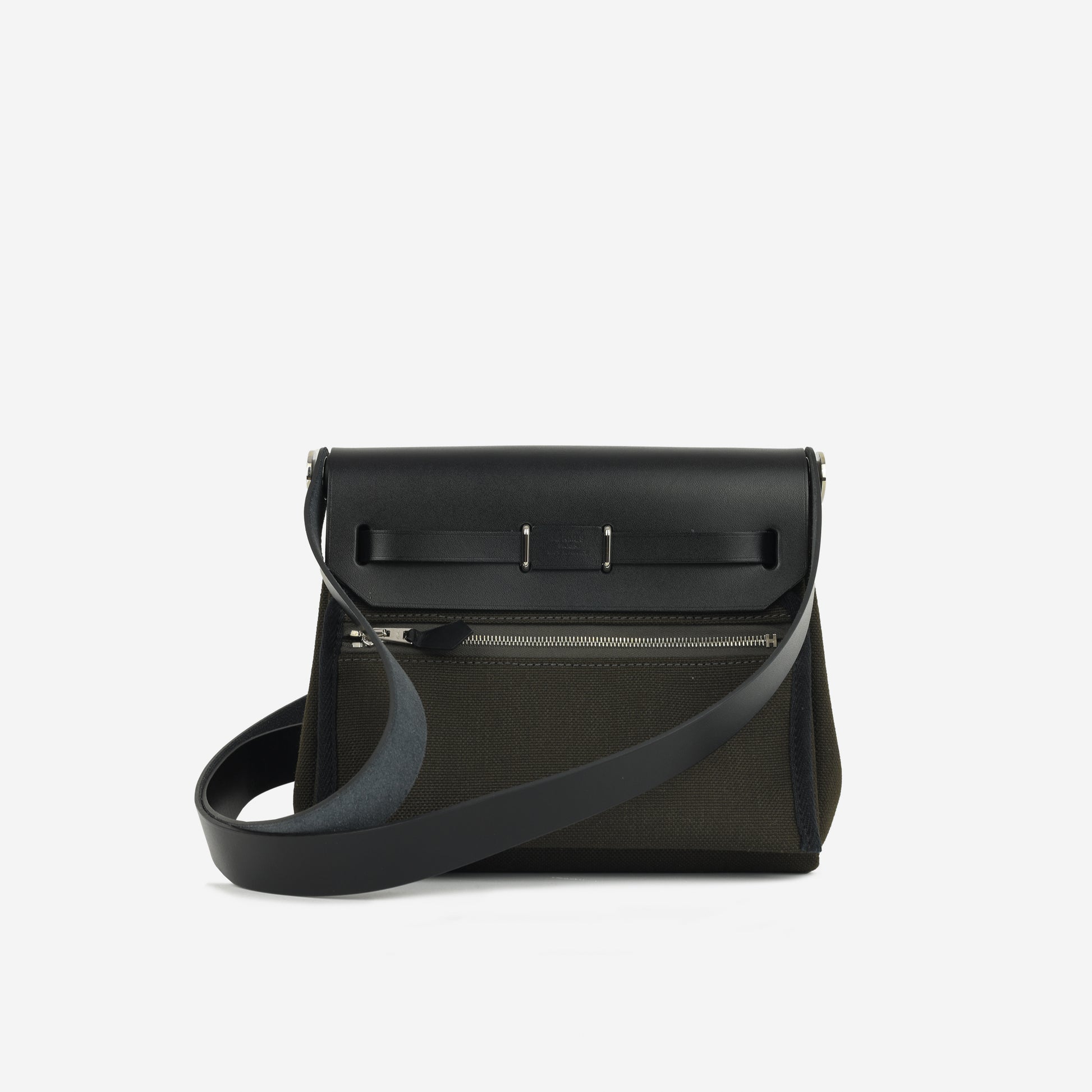 The Hermès Mini Herbag is a modern favourite, celebrated for its versatility, understated elegance, and nod to the house’s equestrian heritage. This version pairs durable dark bronze canvas with contrasting Noir Hunter leather trim, creating a rich, sophisticated combination that is both chic and practical.