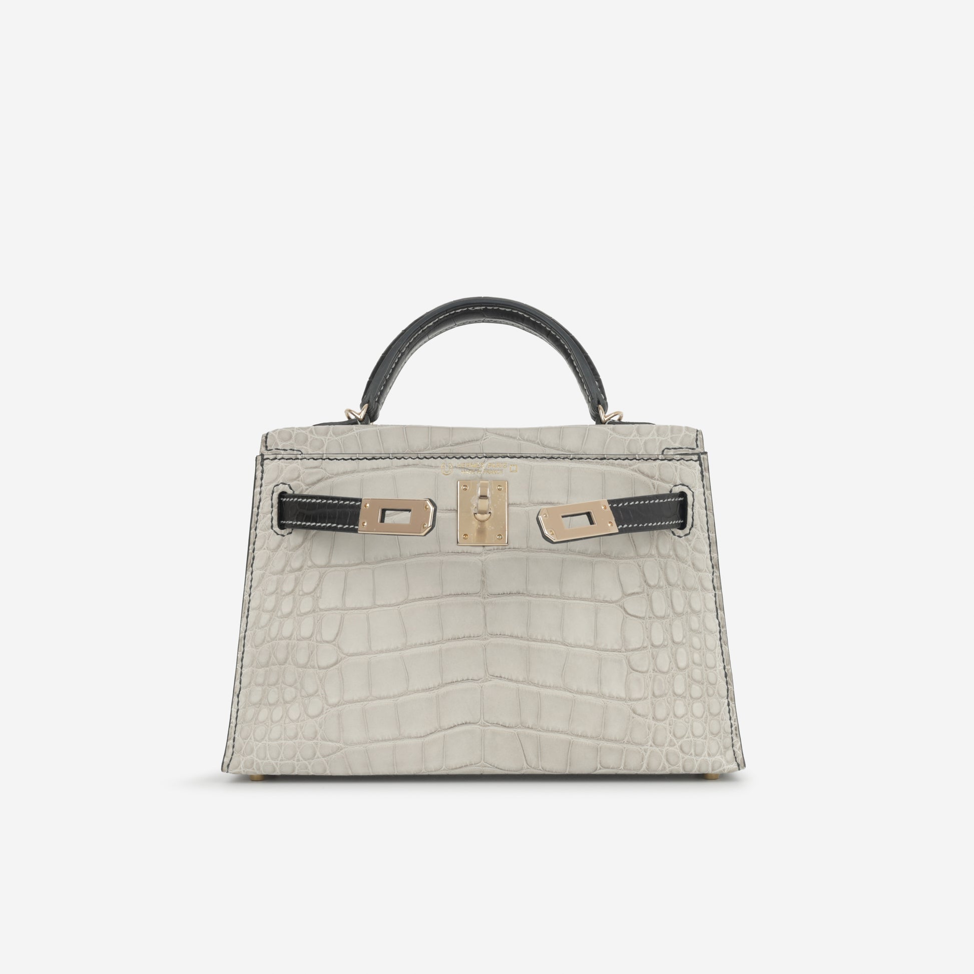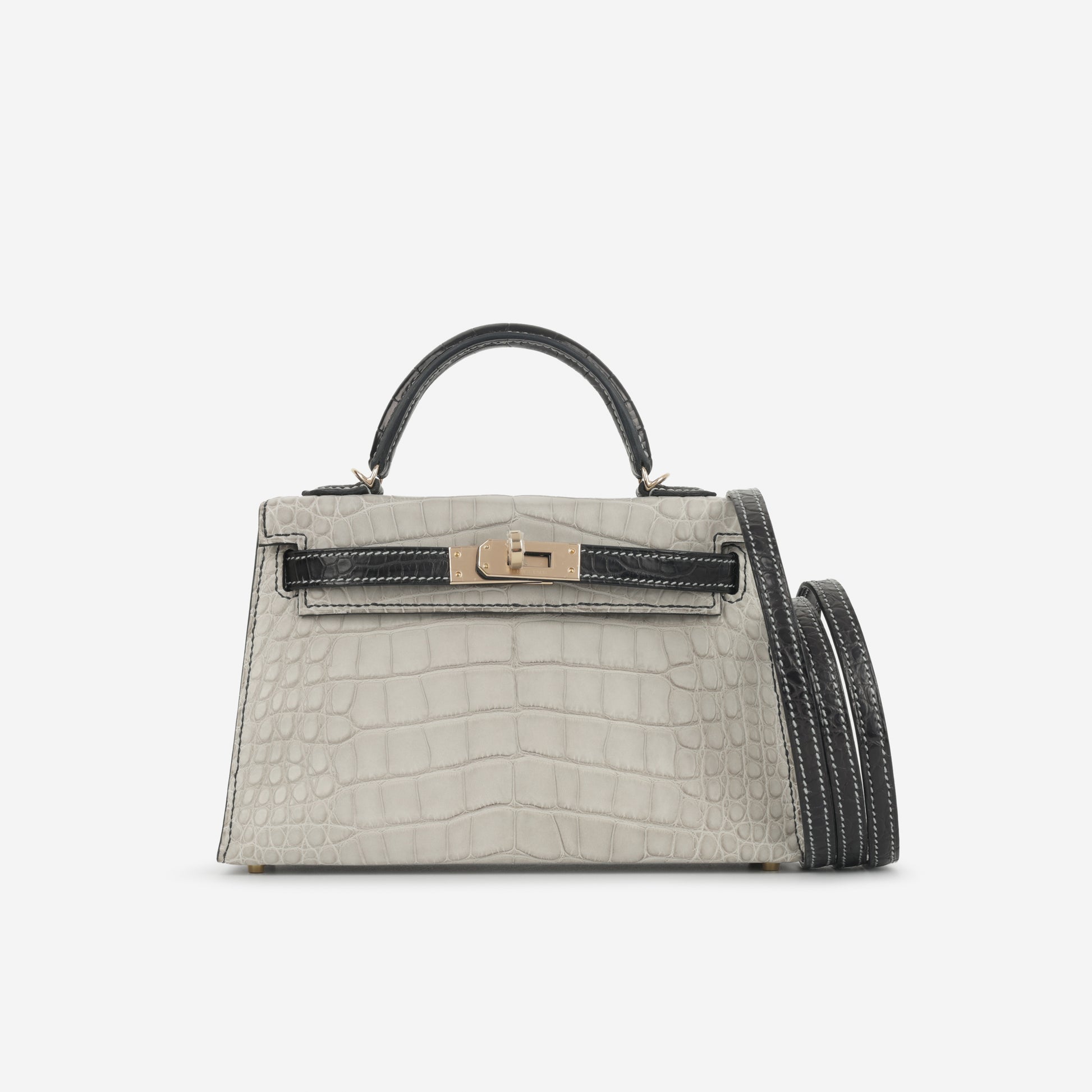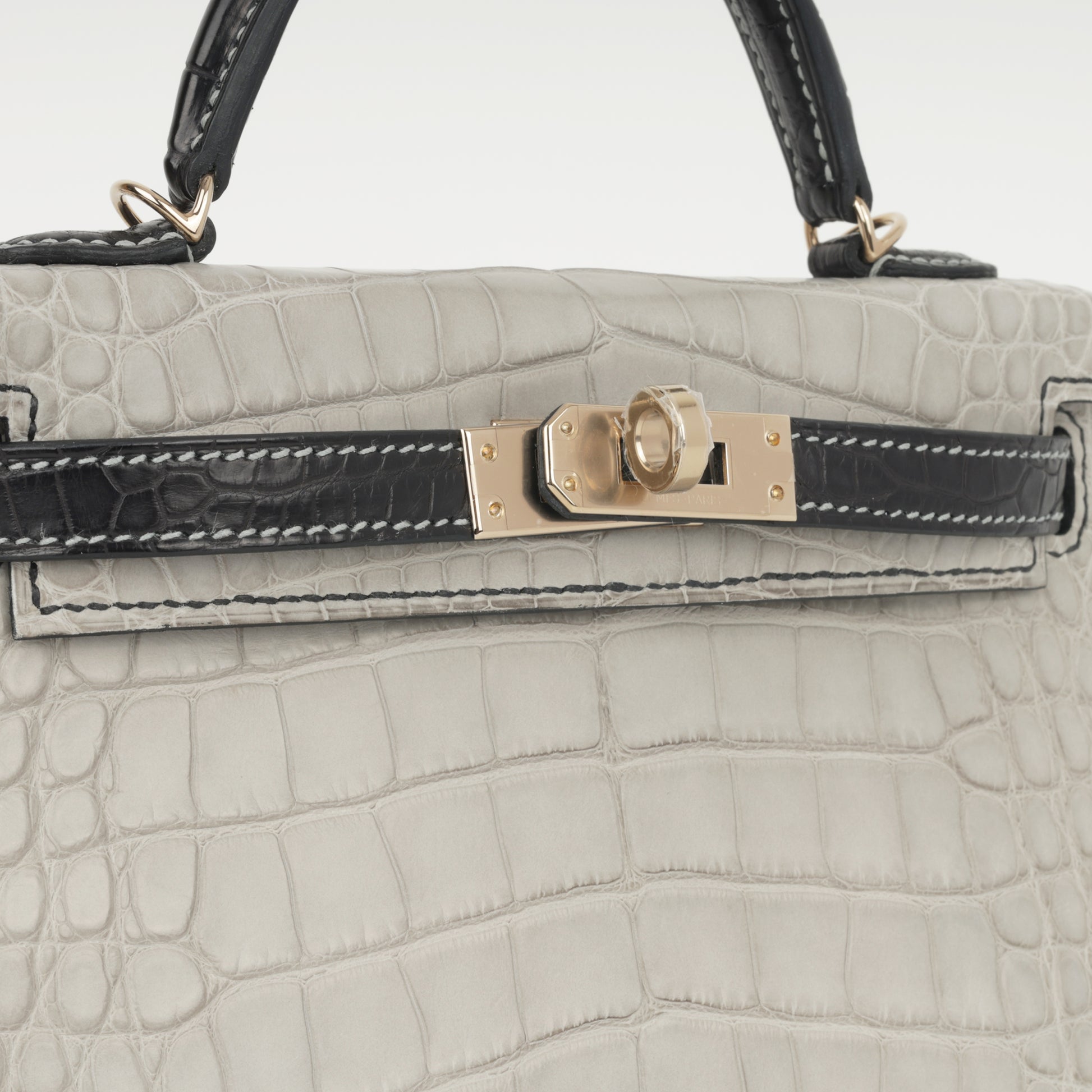Hermès HSS Mini Kelly - Gris Perle / Black Matte Alligator | Permabrass Hardware