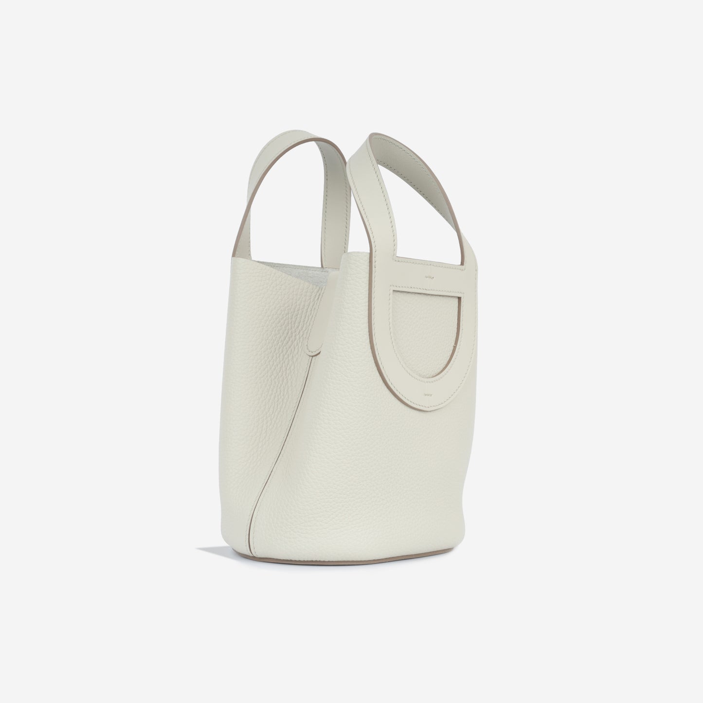 A bag that would be considered a cousin to the Hermes Picotin - the In-The-Loop bag features the same supple structure and bucket shape, but doesn't carry the hardware feet or lock and keys. Carefully crafted from Clemence leather in Beton, the In The Loop bag is the perfect everyday choice to carry with you. Hermès is acclaimed for their leather quality, as well as being at the very top of the fashion hierarchy and this bag is no exception.