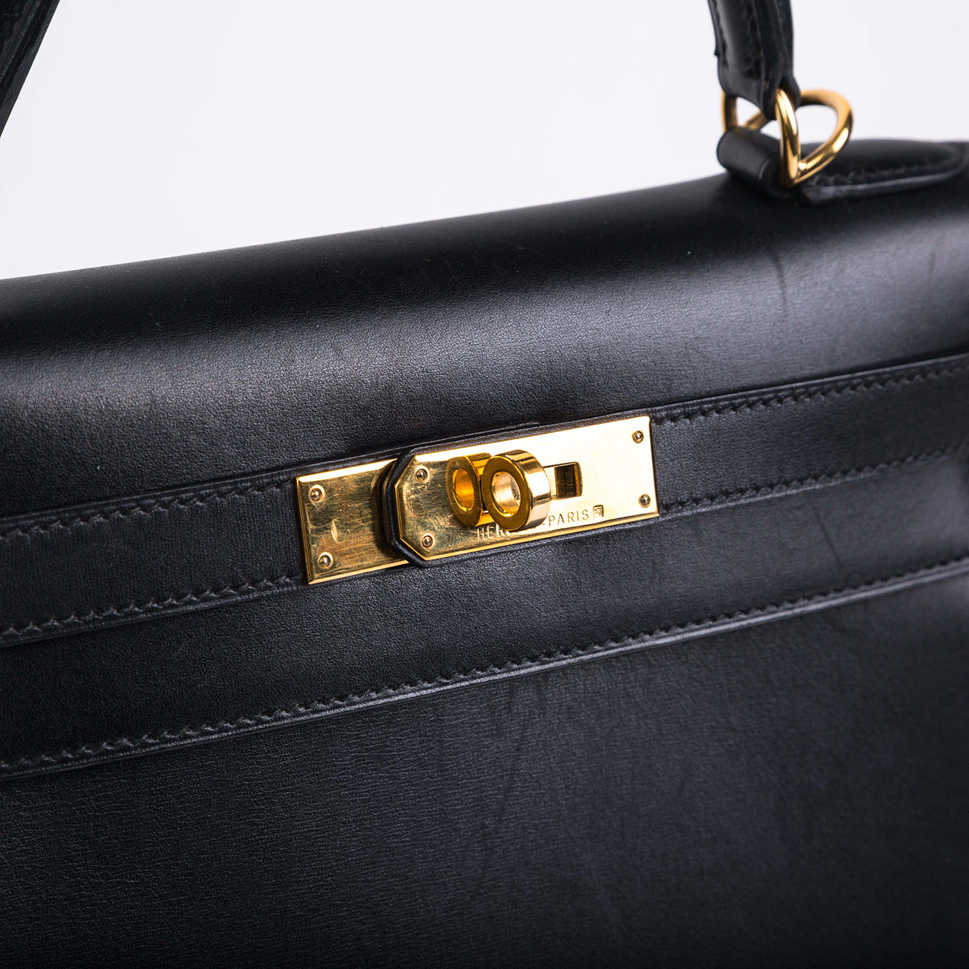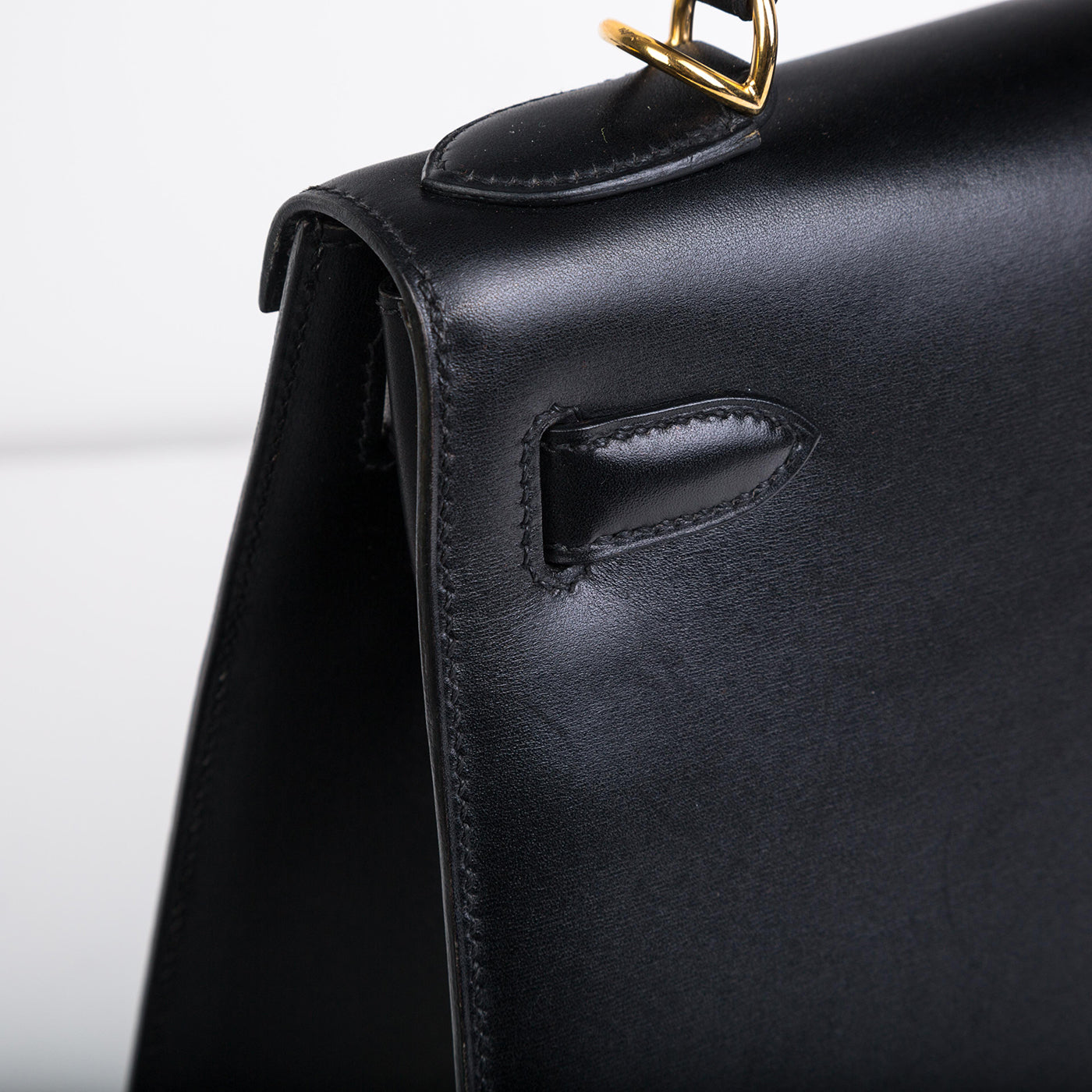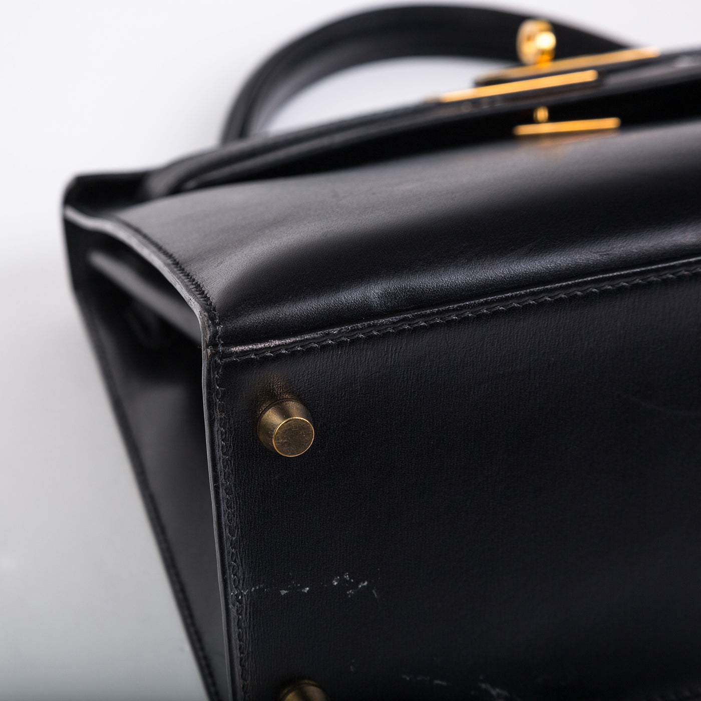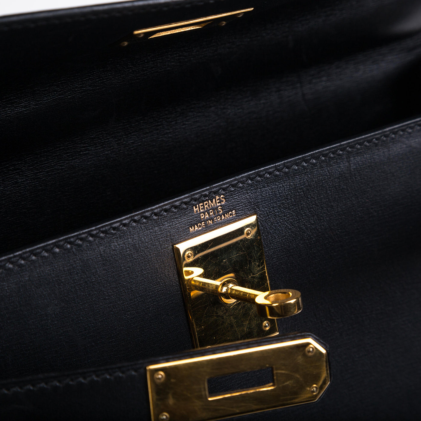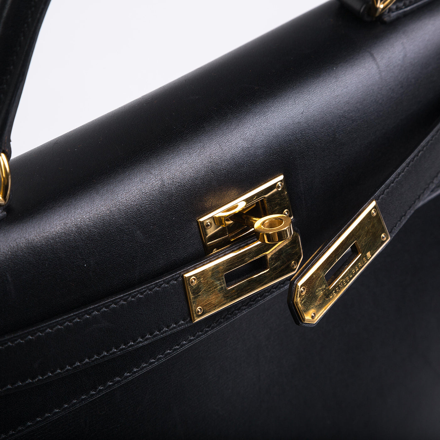 The Hermes Kelly - alongside its sister bag, the Birkin, is one of the most desired bags in the world. Originally created and designed for actress and Princess of Monaco, Grace Kelly - the Kelly bag is true investment piece that will never go out of style. Carefully crafted in smooth, black box calf leather, this bag is durable as well as timelessly elegant by combining the ideal mix of function and fashion. Naturally, being one of the most famous bags ever created, an Hermes Kelly will never lose its value - regardless of being a vintage piece. Rooted in history, this chic, classic bag not only comes with a story, but will also remain stylish, sophisticated, and desirable forever.