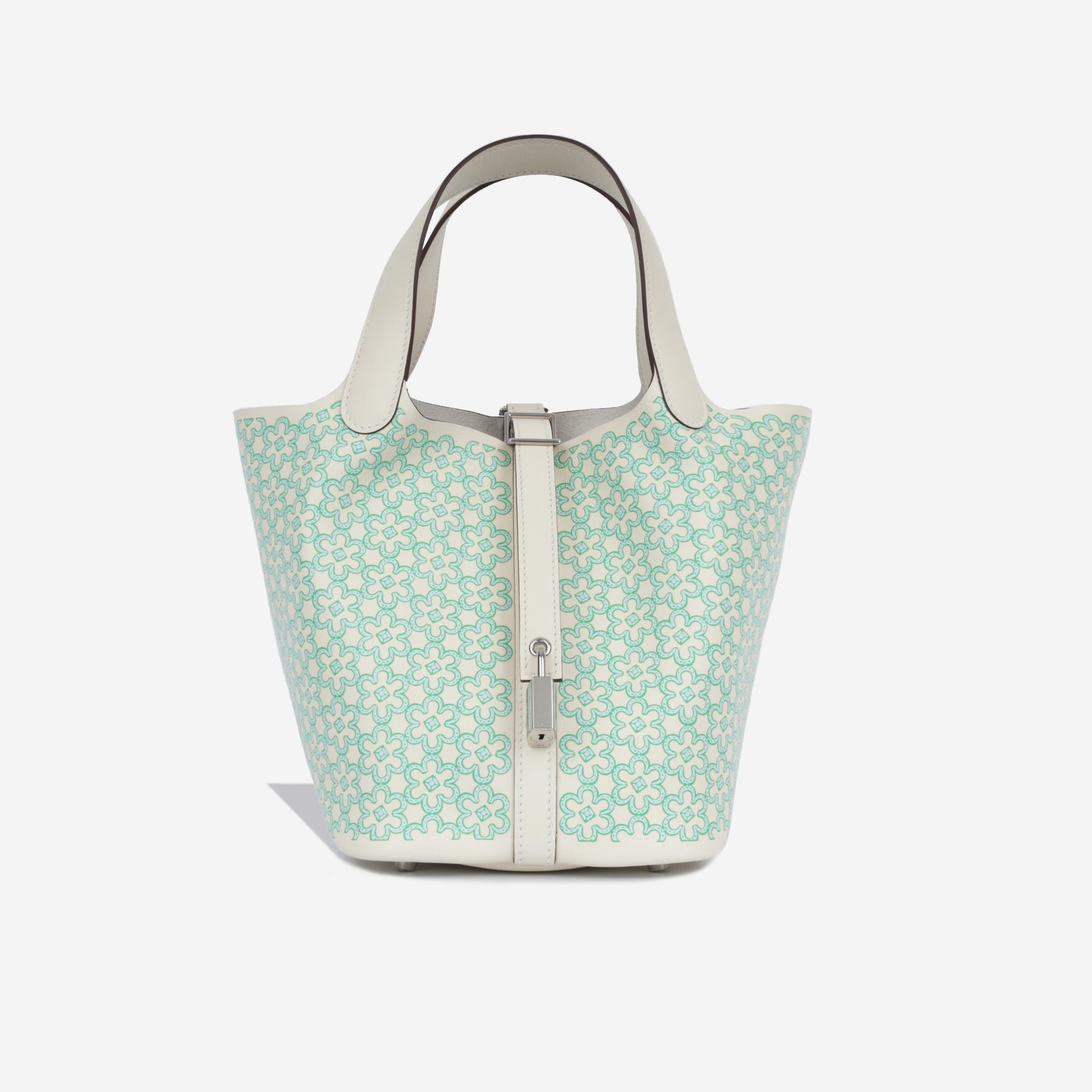 Part of the 2022 collection, Hermès presents their Picotin in Nata Swift leather with a beautiful pattern of ‘Lucky Daisy’ in vert. Carry all your everyday essentials in style while remaining sleek and sophisticated. The Picotin lock exudes Hermès classic "if you know, you know" aesthetic.