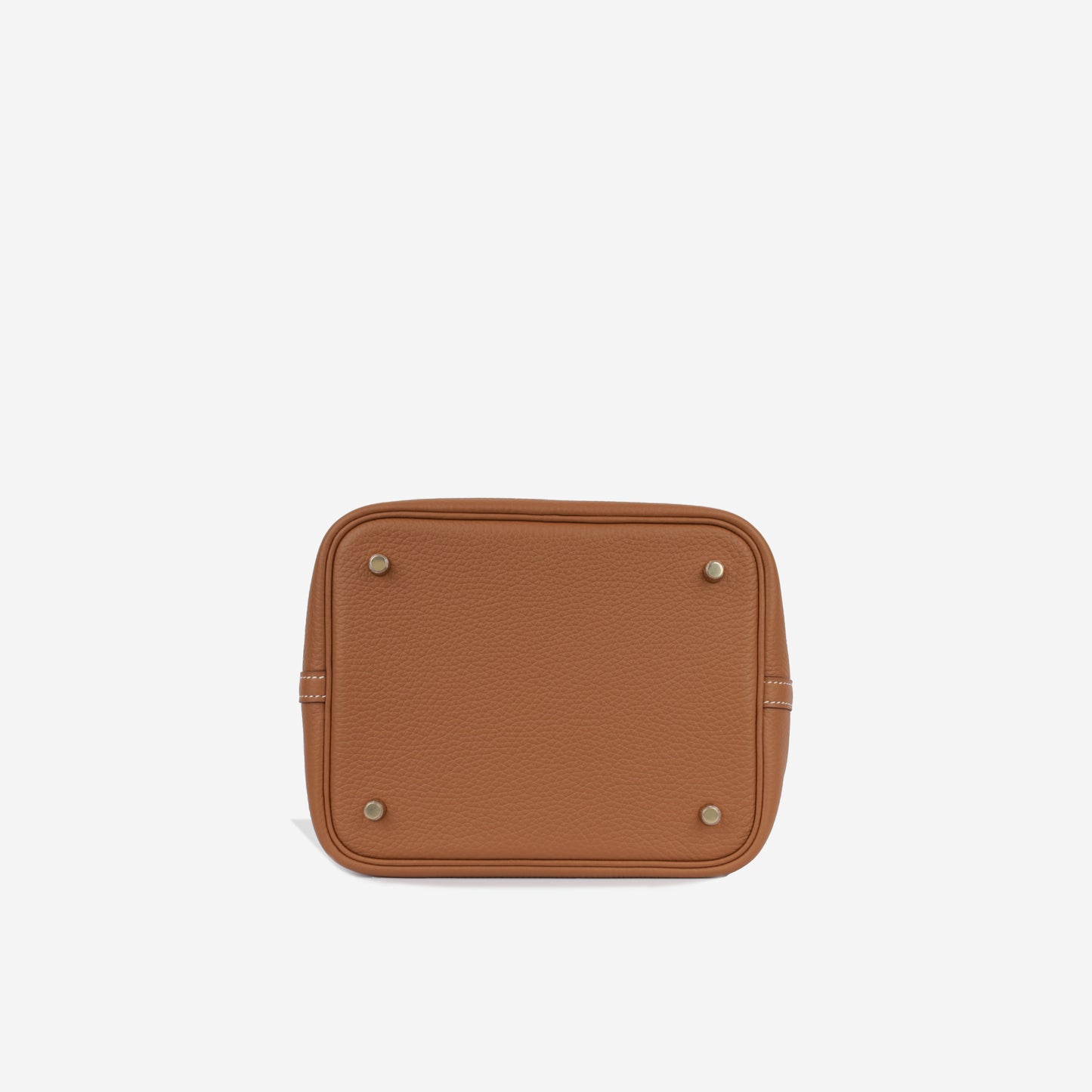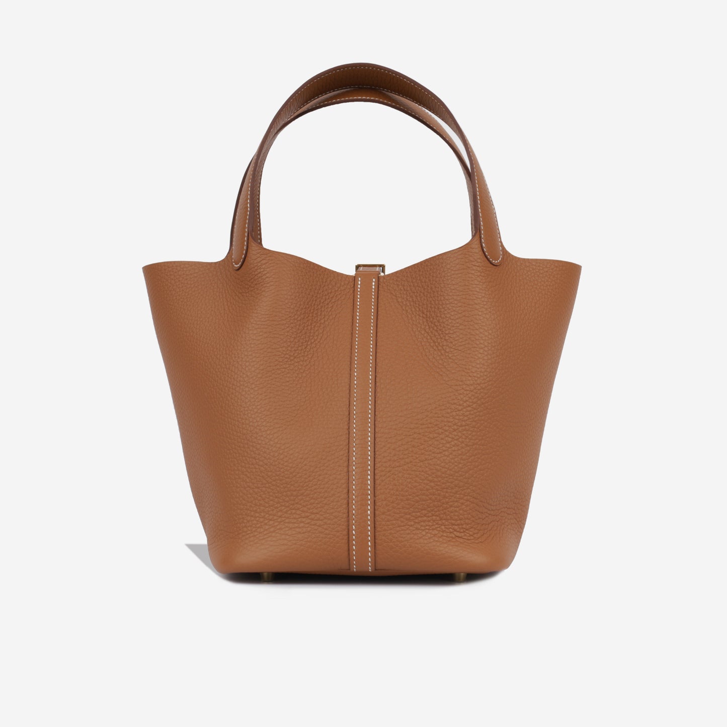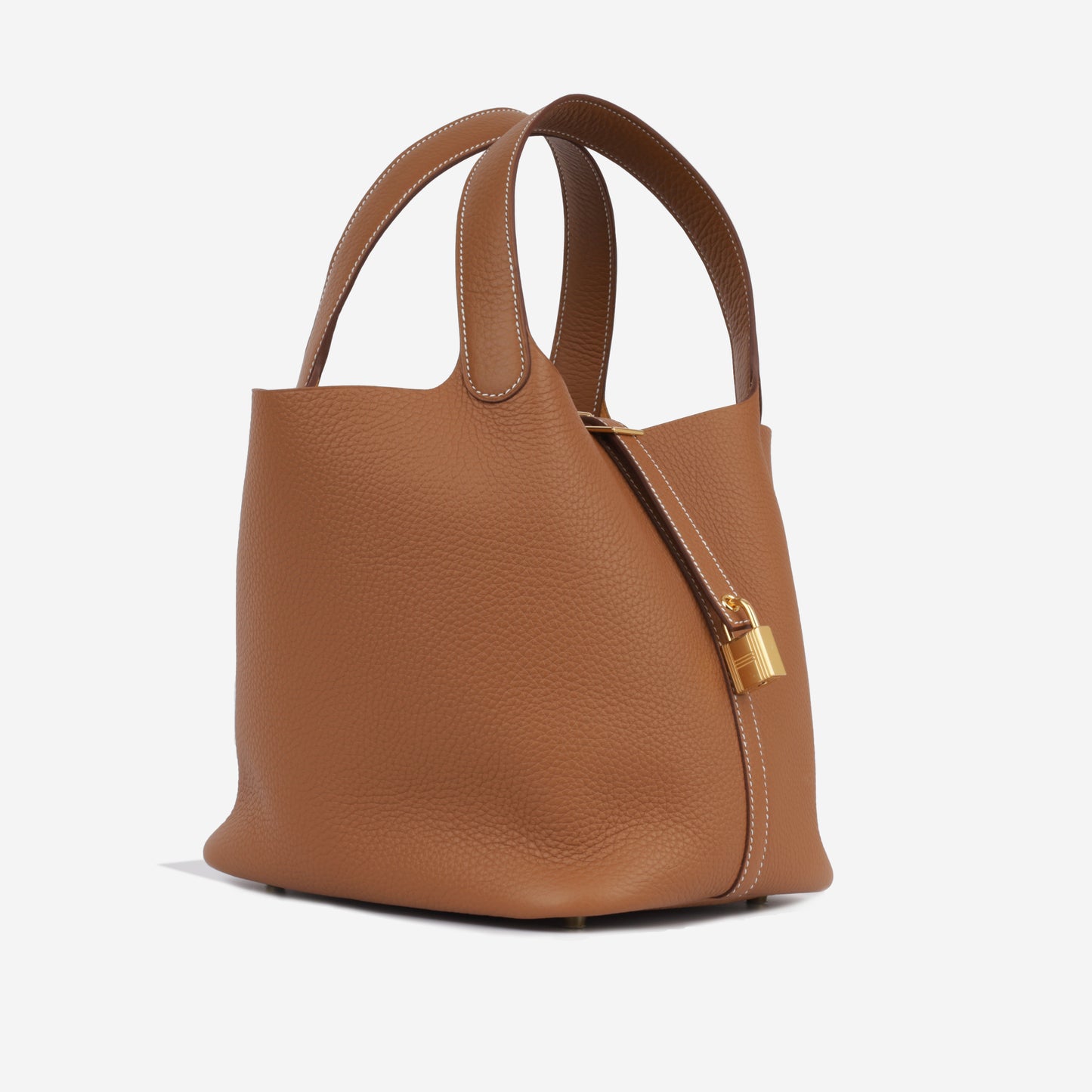 Carefully crafted from supple, textured leather, Hermès presents their stunning Picotin 22 bag in a beautiful combination of Gold Clemence leather and gold hardware. Hermès is acclaimed for their leather quality, as well as being at the very top of the fashion hierarchy. Simple, elegant, and understated, each Hermès bag is timeless and tasteful.
