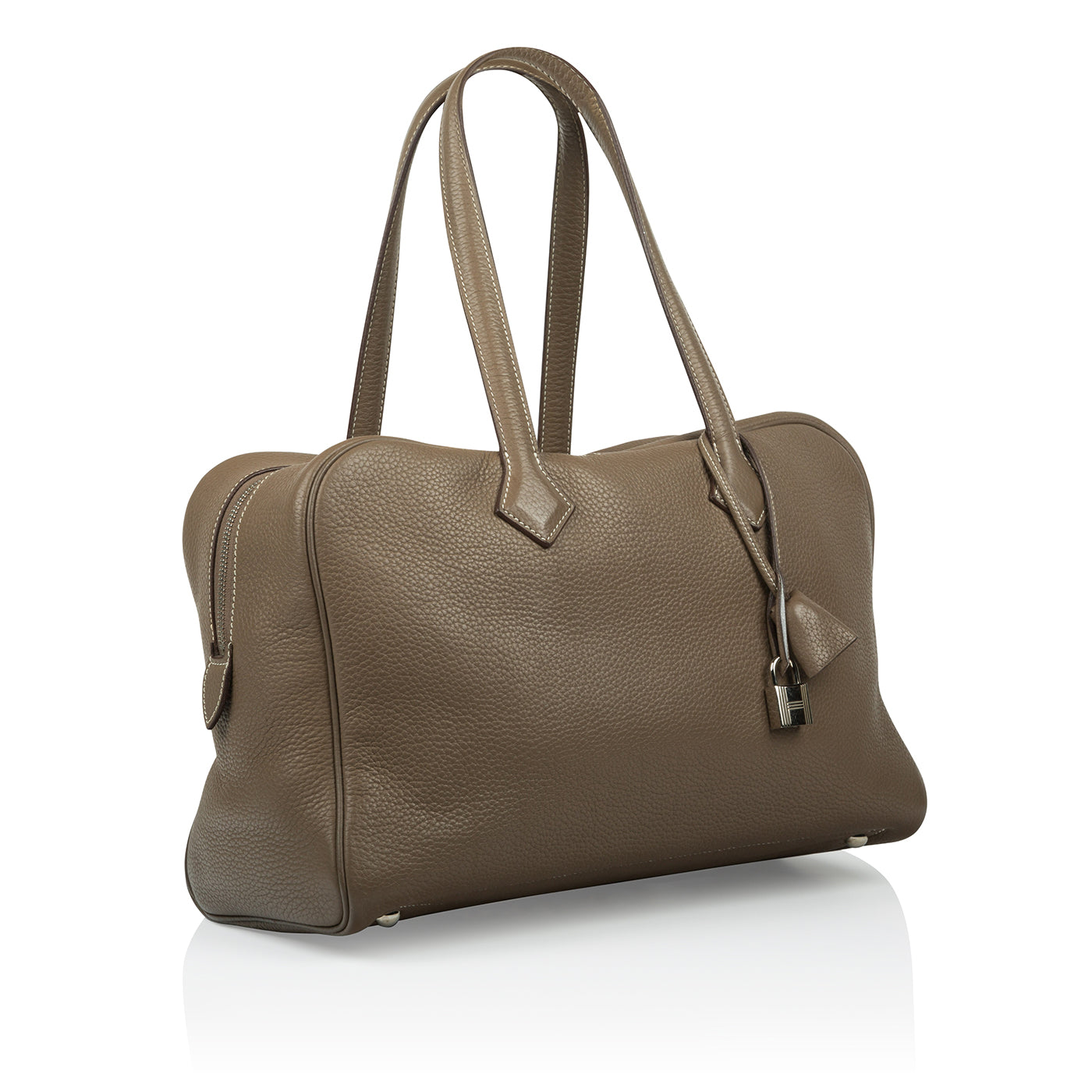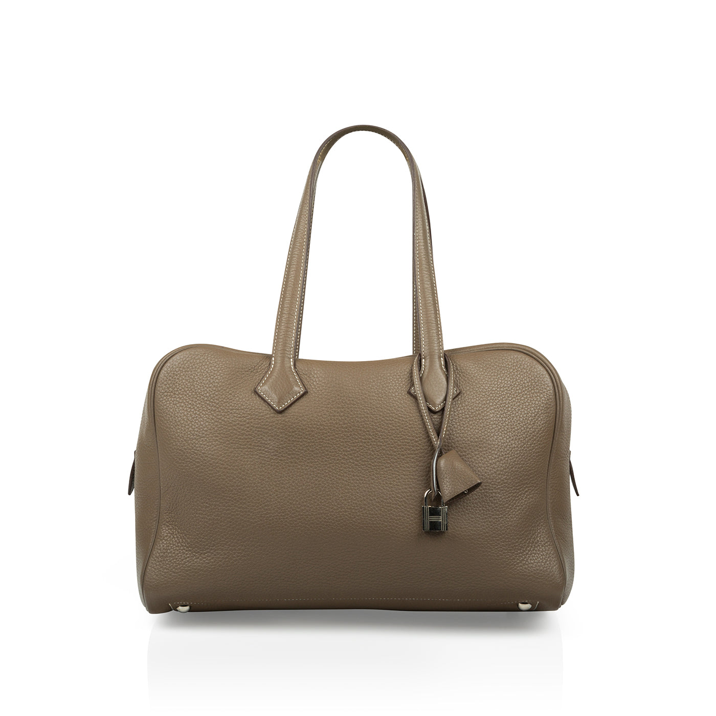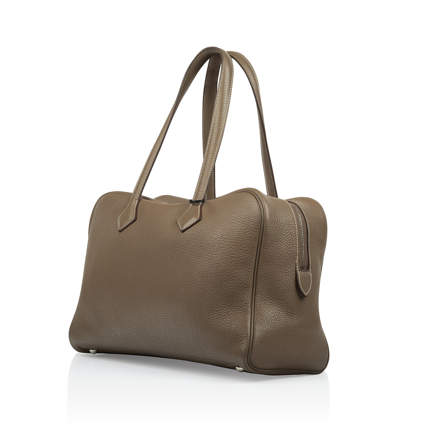 Acclaimed for their fine leathers and quality craftsmanship, Hermès presents their Victoria handbag - which is no exception to their luxurious leather goods reputation. Carefully crafted from Taurillon Clemence leather and palladium plated hardware, this bag exudes a true "if you know, you know" aesthetic. Anyone with a relative knowledge of quality leathers knows an Hermès bag when they see one, regardless of there not being a prominent logo. This bag is the ideal every day bag for any woman with an understated sense of style and a love for luxury. Fit all your daily necessities inside the spacious compartment while remaining sleek, stylish and sophisticated. A timeless piece that will never go out of style and will remain in your wardrobe forever, the Victoria is a trust must-have.