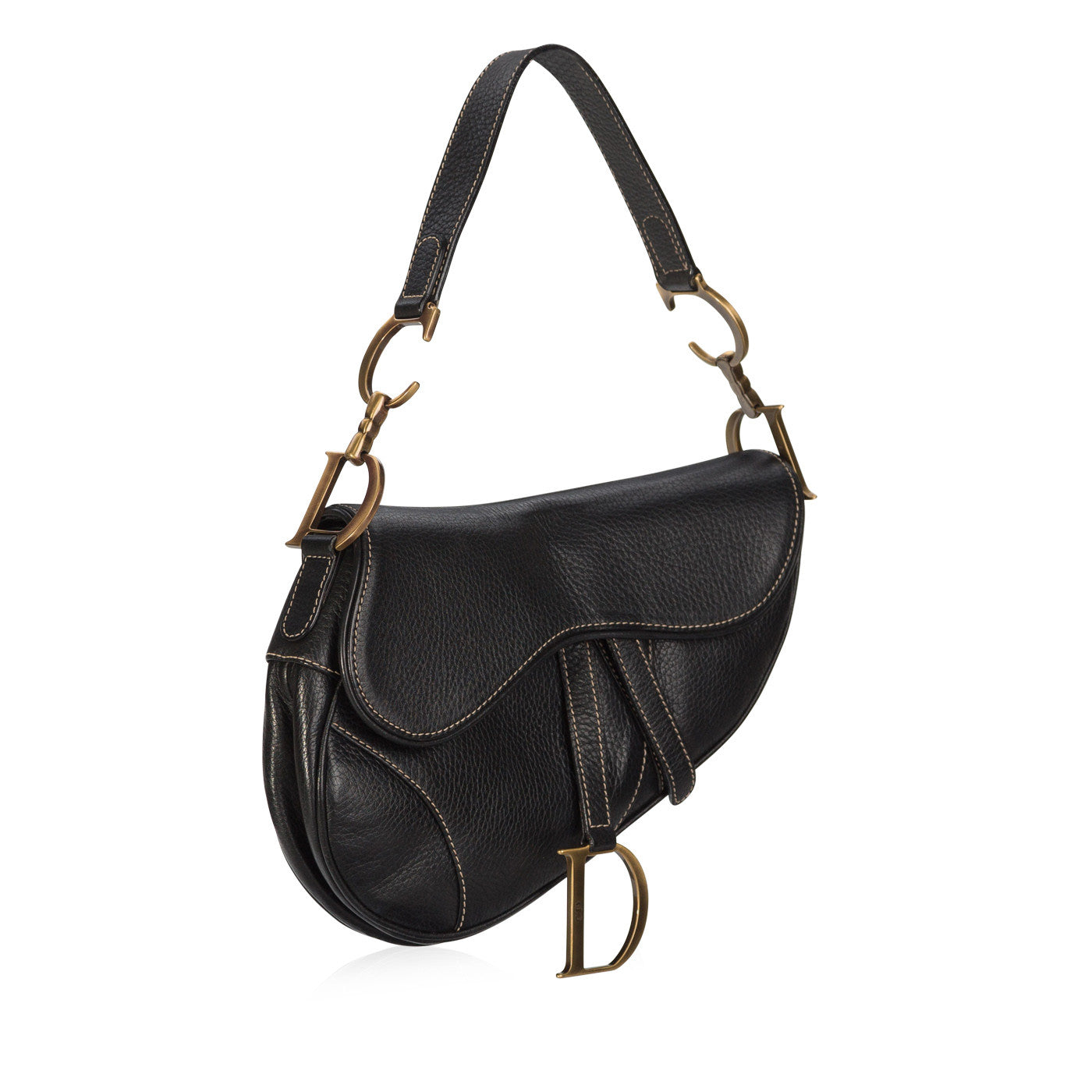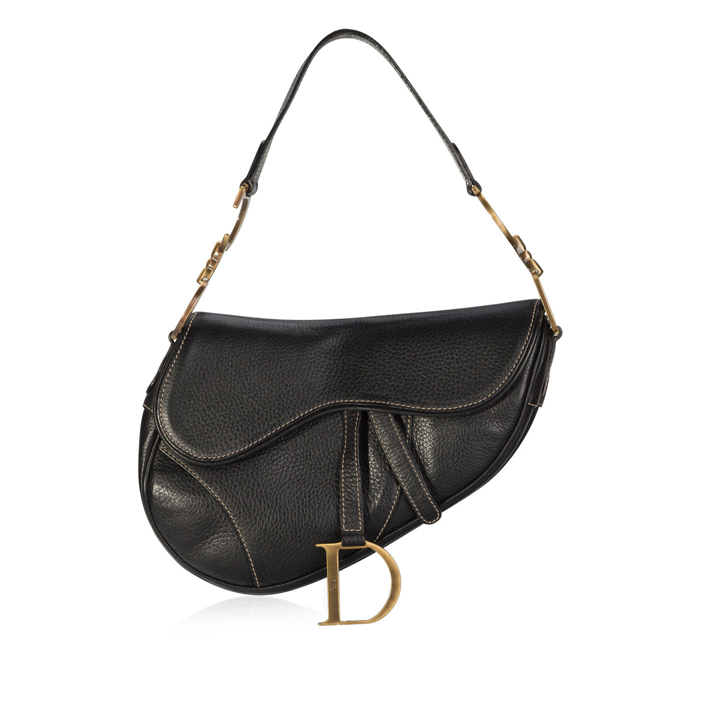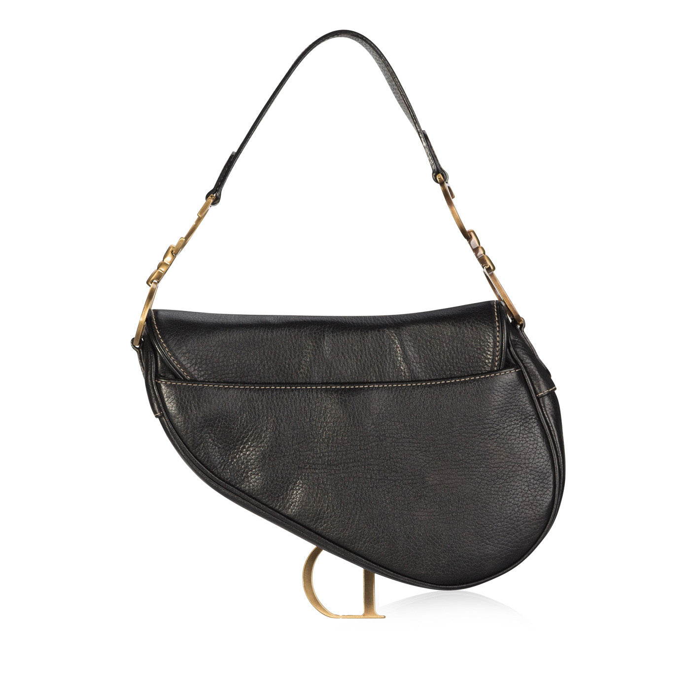 Complete almost any look with the trendy Saddle from Christian Dior that is set to remain a fashion icon for years to come. The hand-crafted piece is bolstered by gold hardware, a flat external pocket with snap button closure and flap Velcro closure.