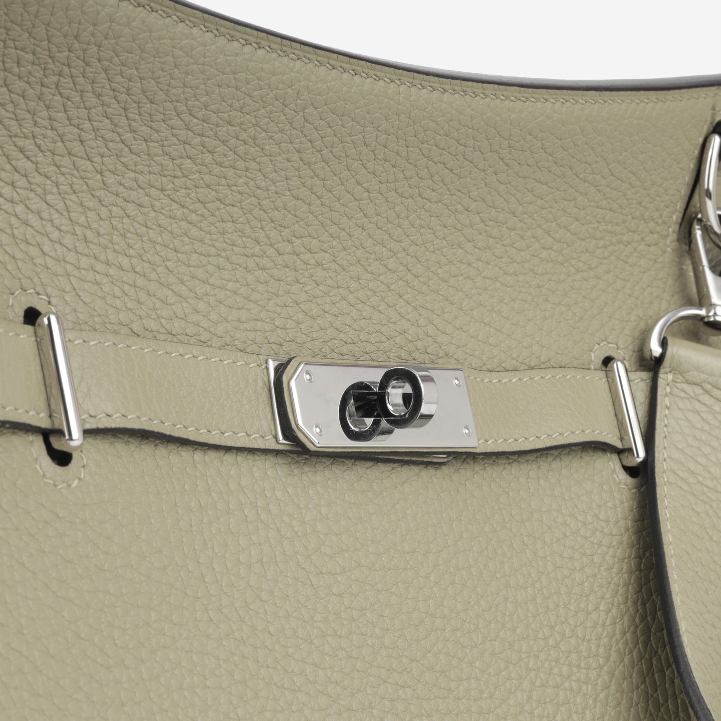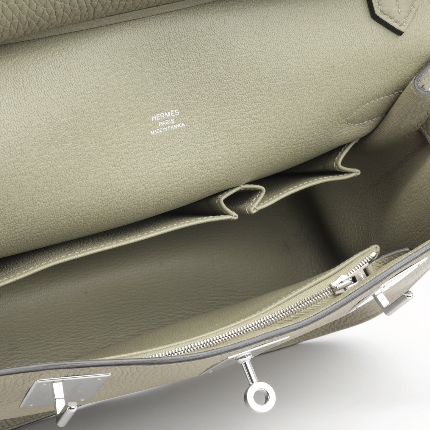 Style meets contemporary efficiency in the form of the Hermès Jypsière. Carefully crafted from Sauge Clemence , this iconic piece also features palladium hardware, elongated front flap and twist lock closure. Its interior is crafted in the same leather in matching Sauge Clemence, with an array of of spacious storage compartments. The perfect every day back for a woman with a love for understated luxury, the Jypsière is a timeless classic that will remain in your wardrobe forever.
