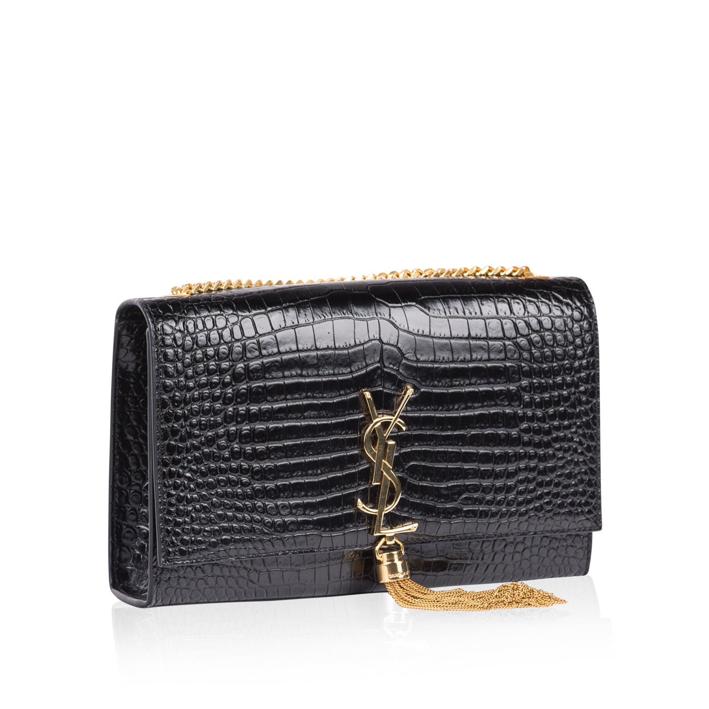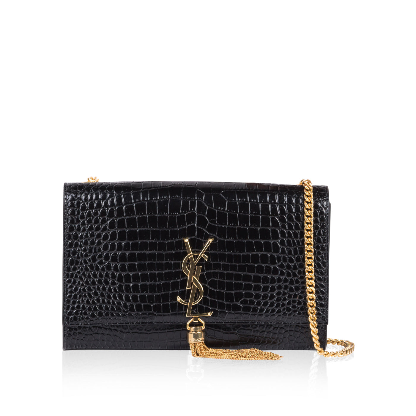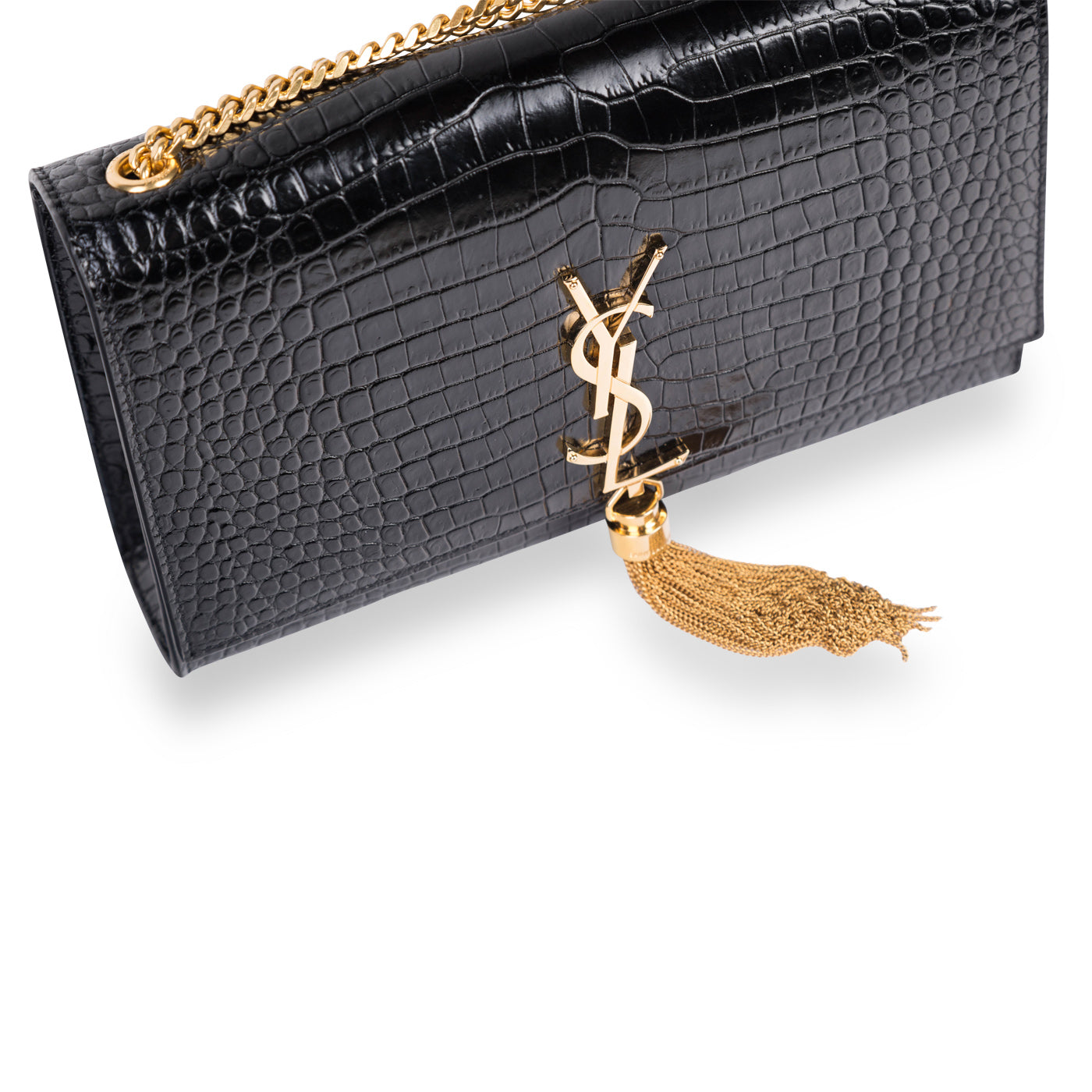 The Kate Tassel bag is one of the most recognised and iconic bags from Saint Laurent, and for good reason due to the fact that it checks the three S's - sleek, stylish, and sophisticated. This bag can be worn from day-to-night and is the perfect accessory for any occasion. The croc-embossed edition of the iconic Kate Tassel bag is complimented by a romantic, gold-tone YSL logo and tassel to add that extra touch of luxury. The Kate Tassel is the perfect bag for a glamourous, sophisticated woman on the go - comfortably carry all your small every day essentials in style with Saint Laurent.