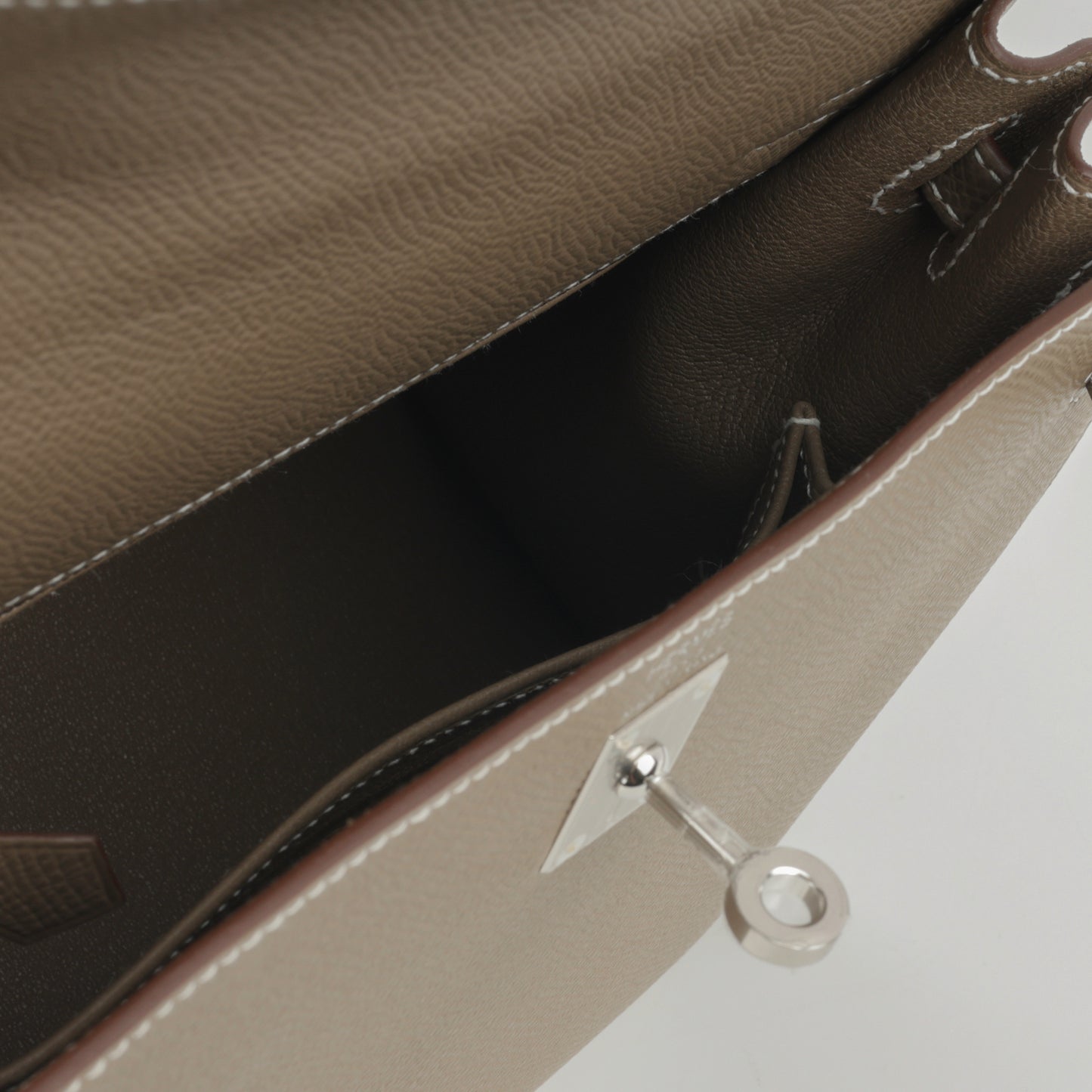 The Hermès Kelly - alongside its sister bag, the Birkin, is one of the most desired bags in the world. Originally created and designed for actress and Princess of Monaco, Grace Kelly - the Kelly bag is true investment piece that will never go out of style. Crafted from Etoupe Epsom leather, this bag is durable as well as timelessly elegant by combining the ideal mix of function and fashion.