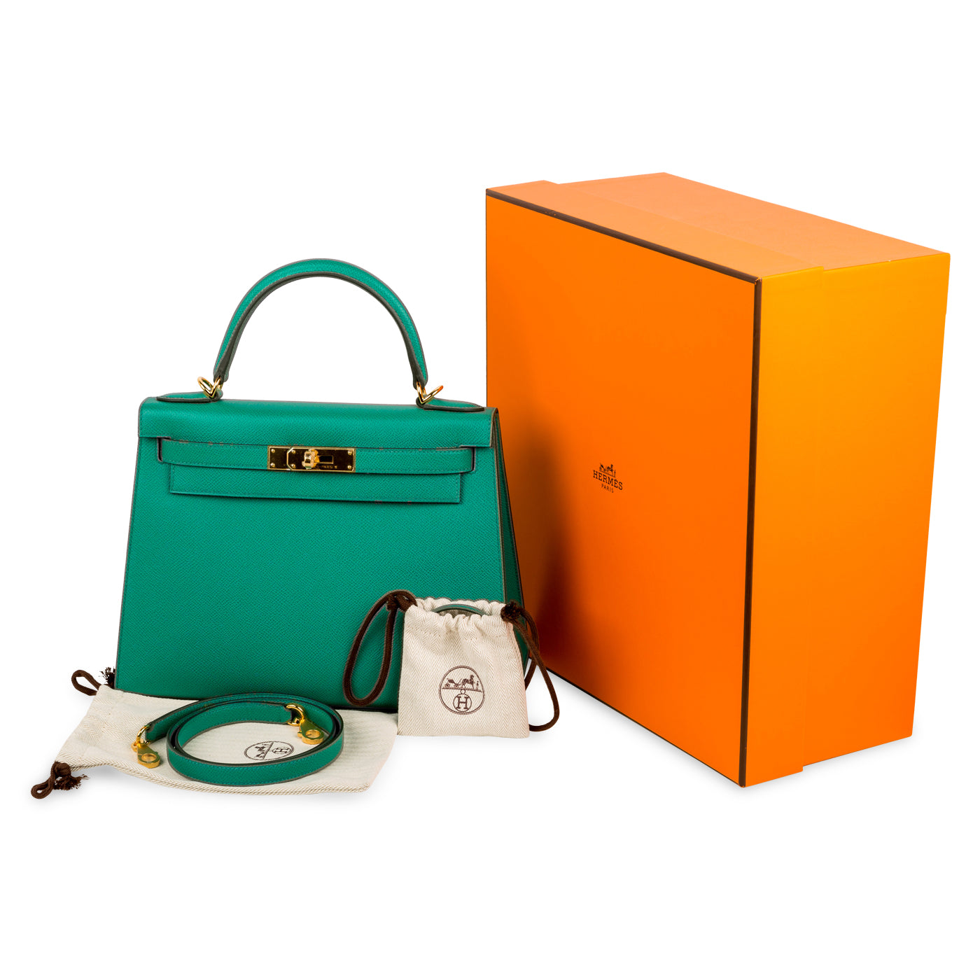 The Hermes Kelly - alongside its sister bag, the Birkin, is one of the most desired bags in the world. Originally created and designed for actress and Princess of Monaco, Grace Kelly - the Kelly bag is true investment piece that will never go out of style. Crafted in a beautiful shade of Green named Vert Jade - in the classic Epsom Sellier leather, this bag is durable as well as timelessly elegant by combining the ideal mix of function and fashion. Naturally, being one of the most famous bags ever created, an Hermes Kelly will never lose its value. Rooted in history, this chic, classic bag not only comes with a story, but will also remain stylish, sophisticated, and desirable forever.