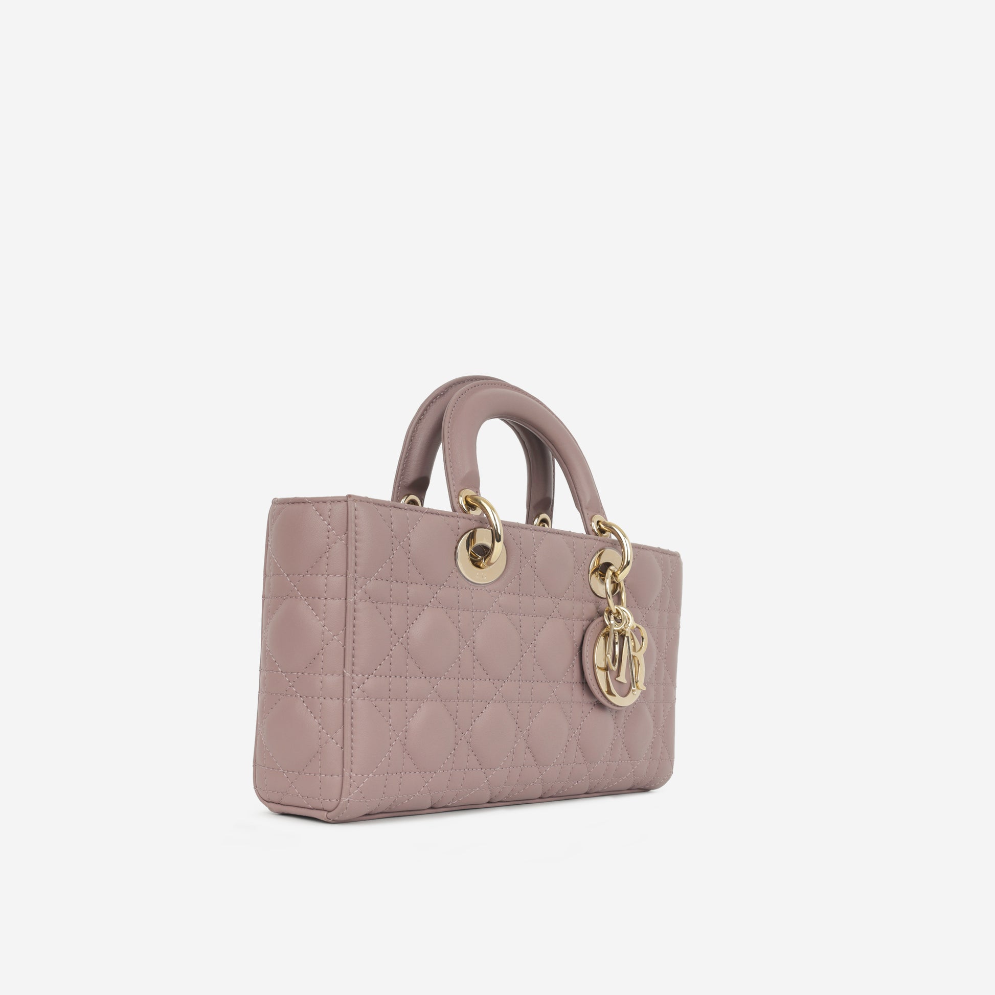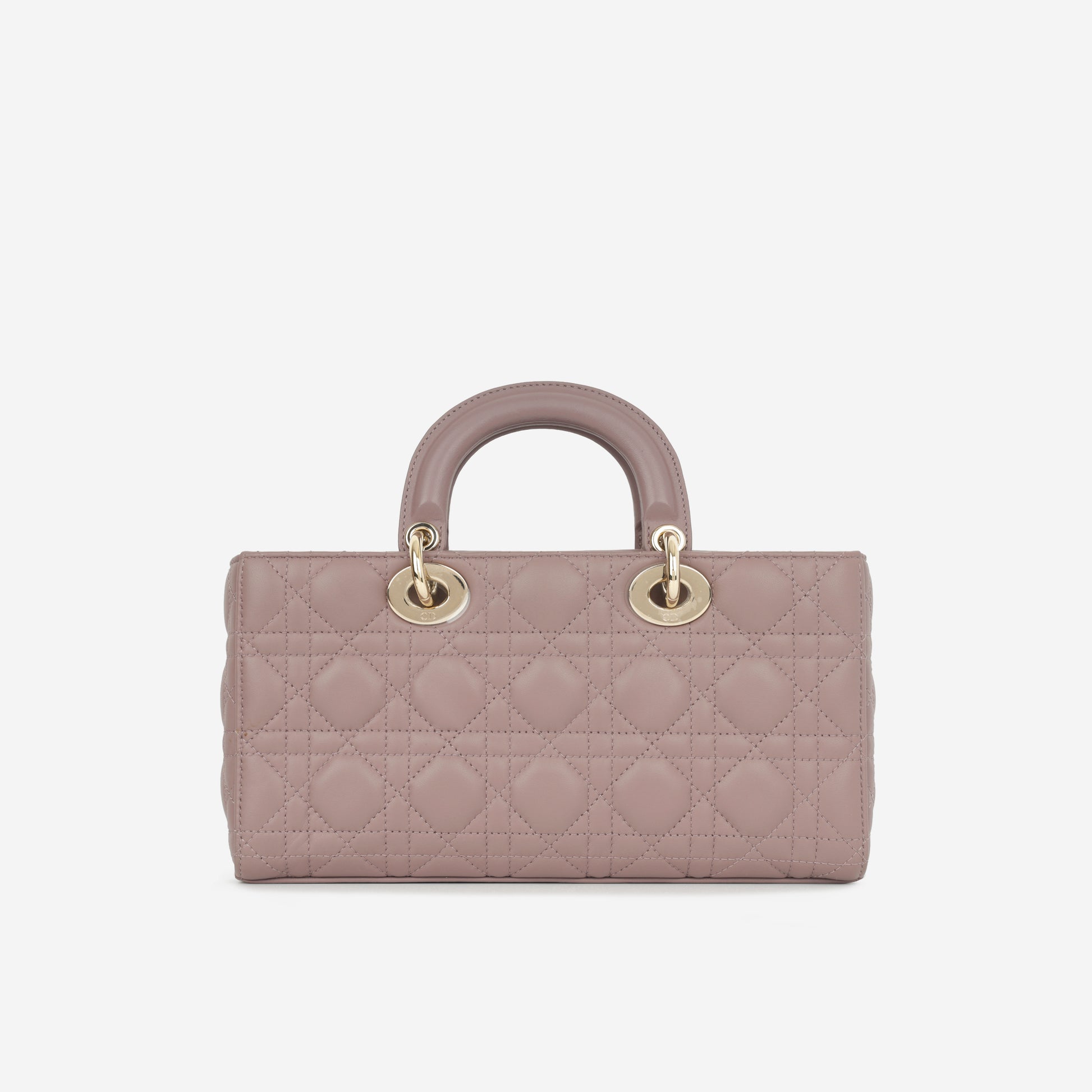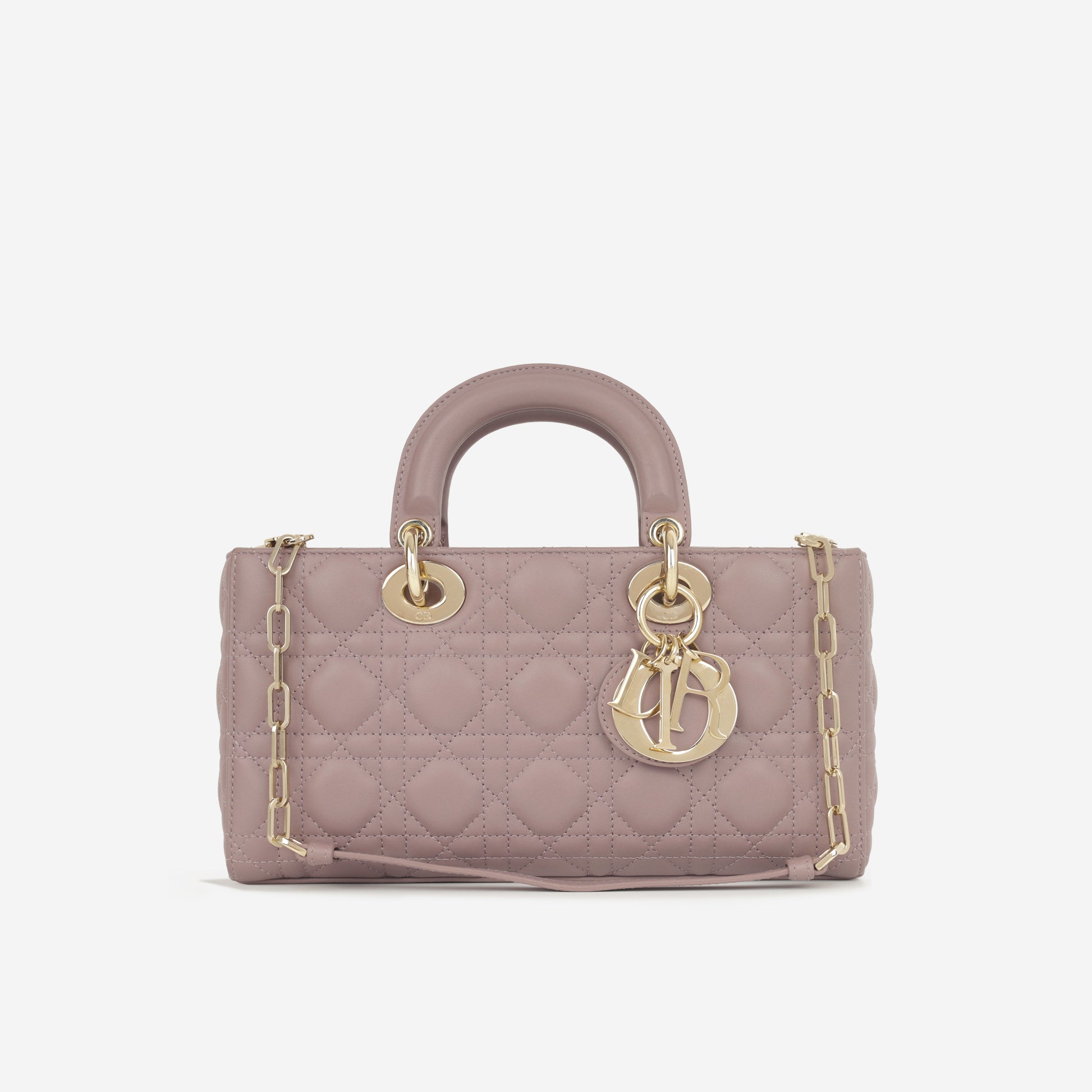 The Lady D-Joy bag effortlessly express the House's unwavering commitment to elegance and refined aesthetics, drawing inspiration from the iconic streamlined design of the renowned Lady Dior line. Crafted with precision from lambskin and adorned with meticulous Cannage stitching, this masterpiece exudes a timeless style that is further elevated by the graceful presence of pale gold-finish metal D.I.O.R. charms delicately adorning its silhouette.