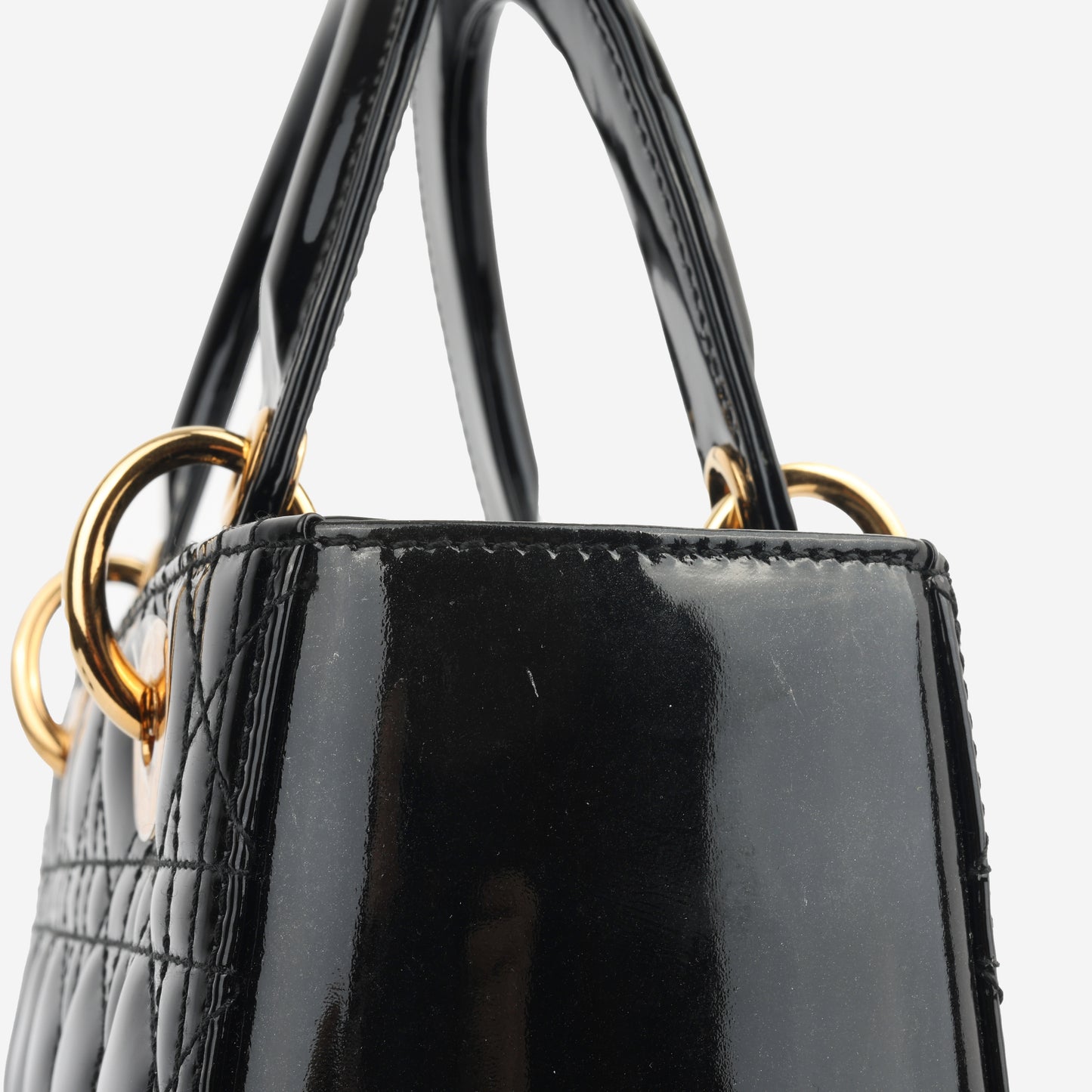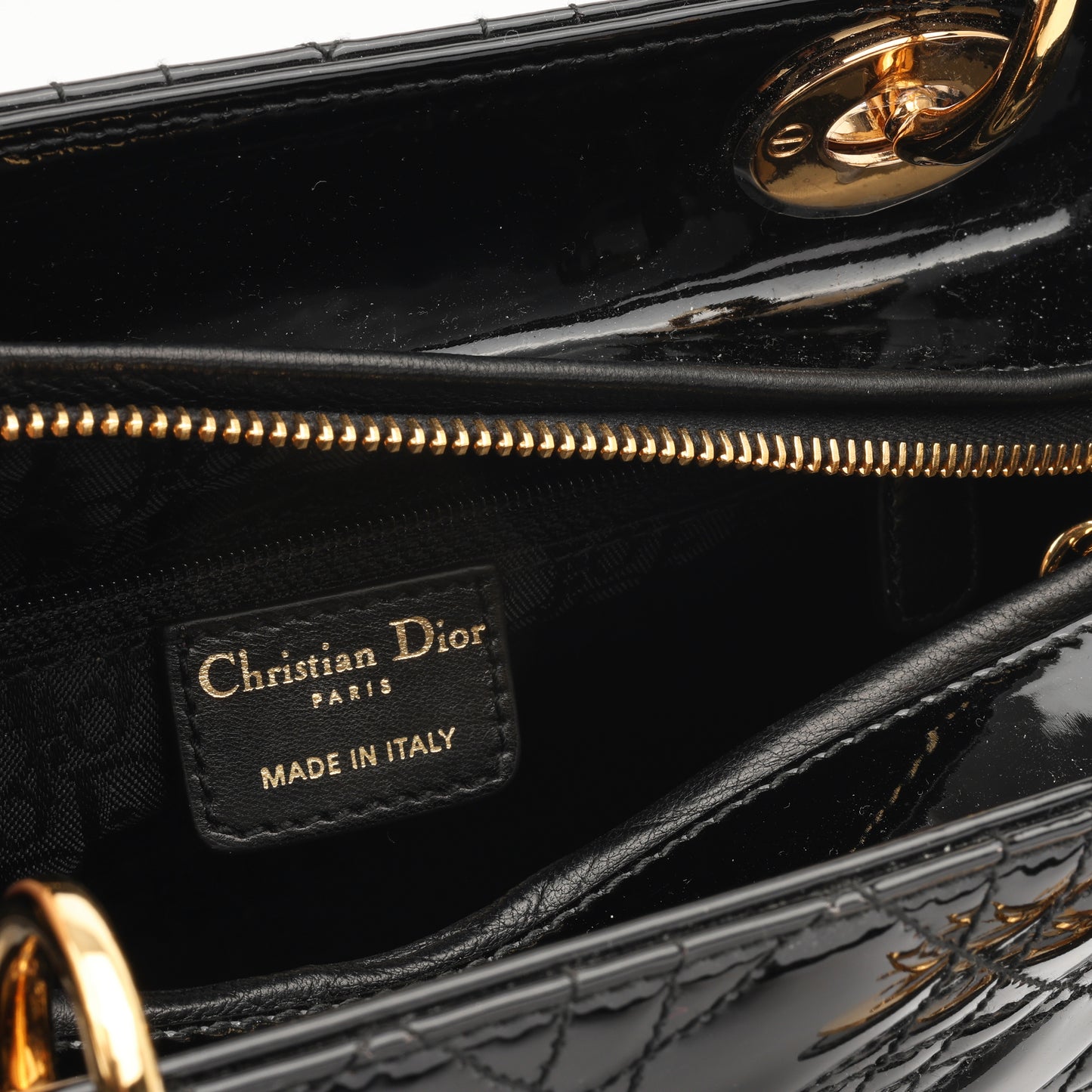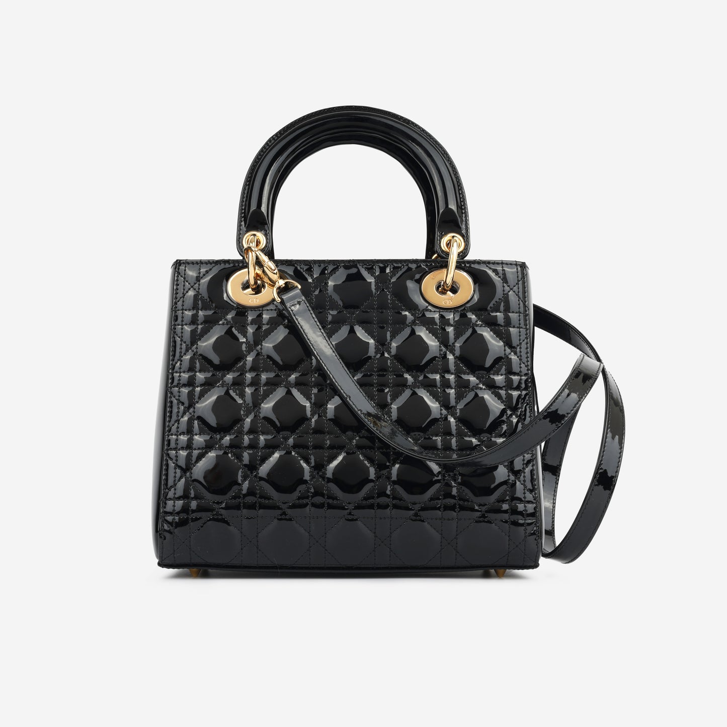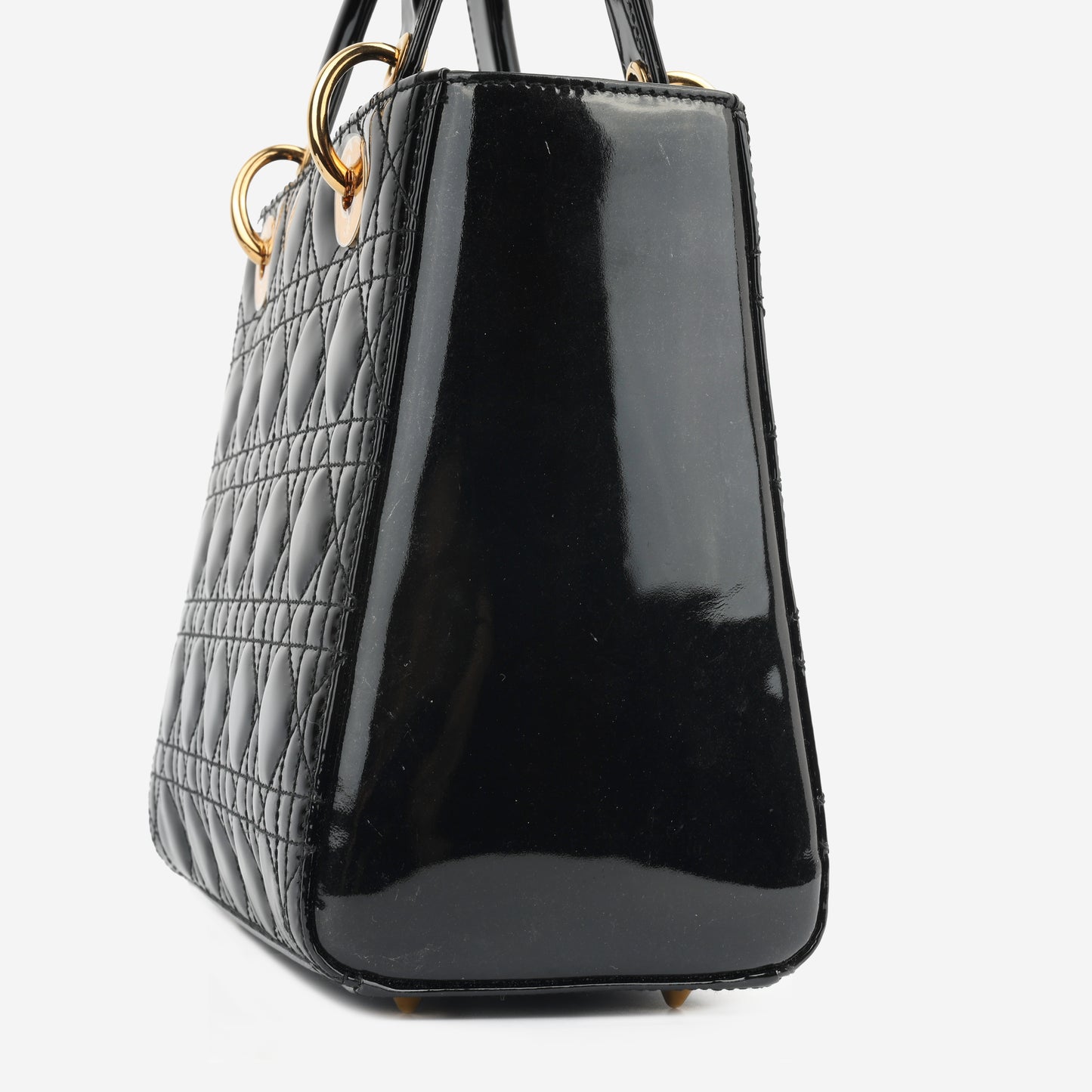 A timeless work of art, the "Lady Dior" bag has become the icon 'it-bag' within the entire Dior collection. Meticulously crafted by hand, this Medium-sized black patent leather bag is enhanced by signature Dior "Cannage" stitching. The Lady Dior bag, also known as the Princess bag, is undoubtedly Dior’s most iconic bag. The bag is named after Princess Diana, who skyrocketed its popularity ever since she was first gifted the bag in the Mid-90's.