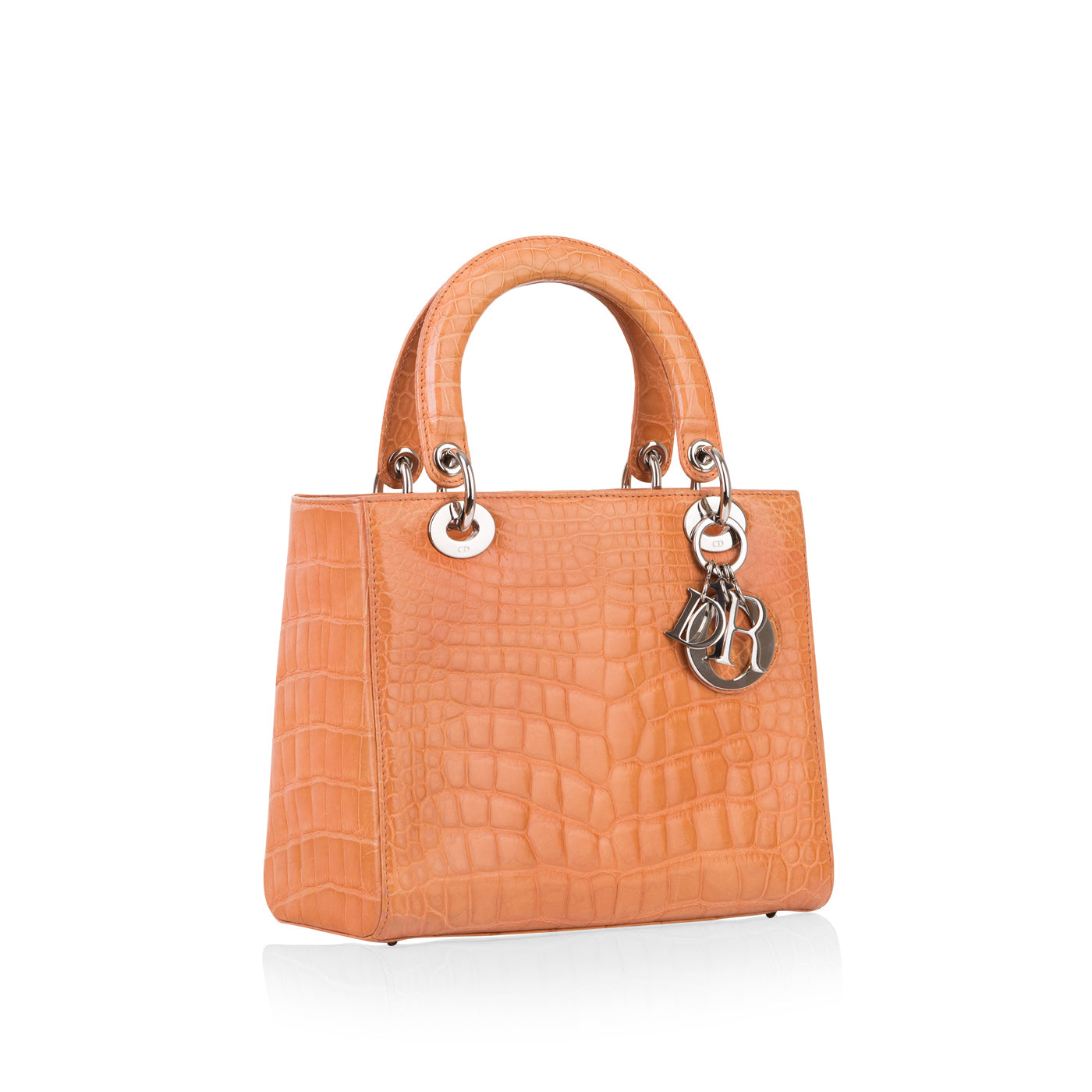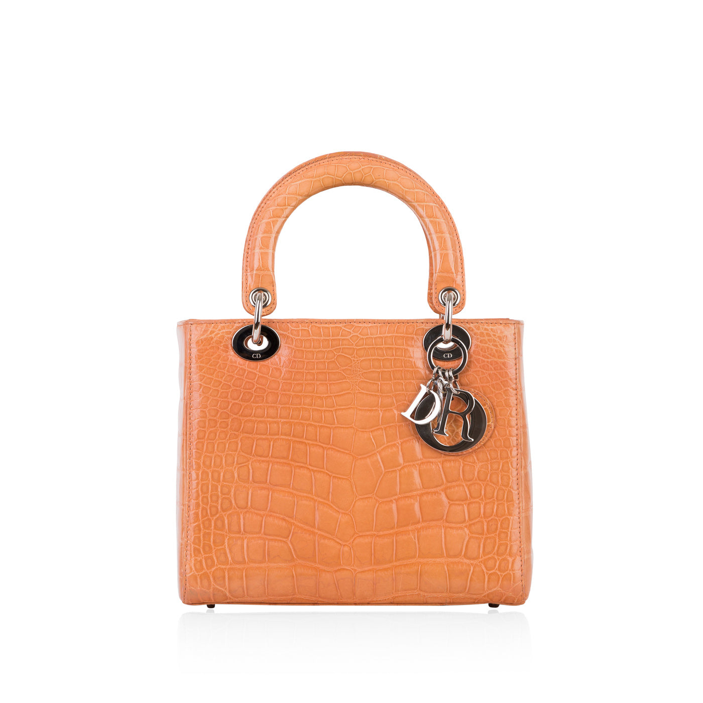 A timeless work of art, the "Lady Dior" bag has become the icon 'it-bag' within the entire Dior collection. Meticulously crafted by hand, this medium-sized crocodile leather orange bag is a special edition and extremely rare. The Lady Dior bag, also known as the Princess bag, is undoubtedly Dior’s most iconic bag. The bag is named after Princess Diana, who skyrocketed its popularity ever since she was first gifted the bag in the Mid-90's.