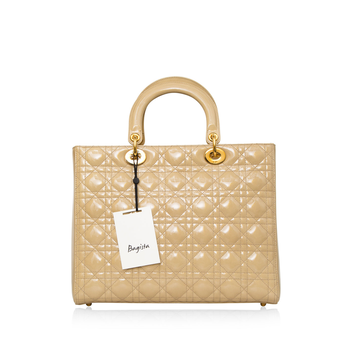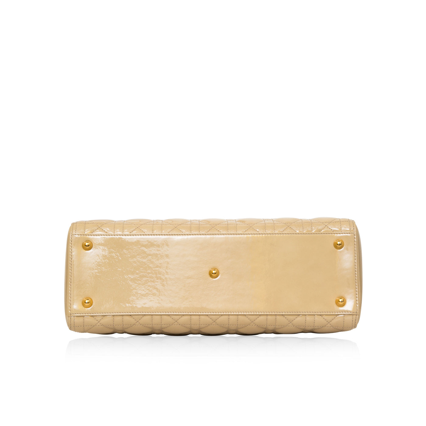 A timeless work of art, the "Lady Dior" bag has become the icon 'it-bag' within the entire Dior collection. Meticulously crafted by hand, this Large-sized Beige patent leather bag is enhanced by signature Dior "Cannage" stitching. The Lady Dior bag, also known as the Princess bag, is undoubtedly Dior’s most iconic bag. The bag is named after Princess Diana, who skyrocketed its popularity ever since she was first gifted the bag in the Mid-90's.