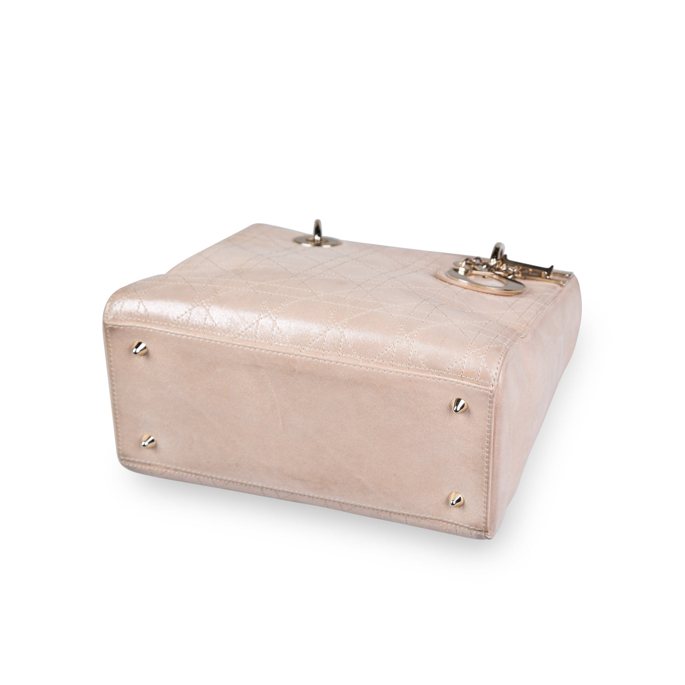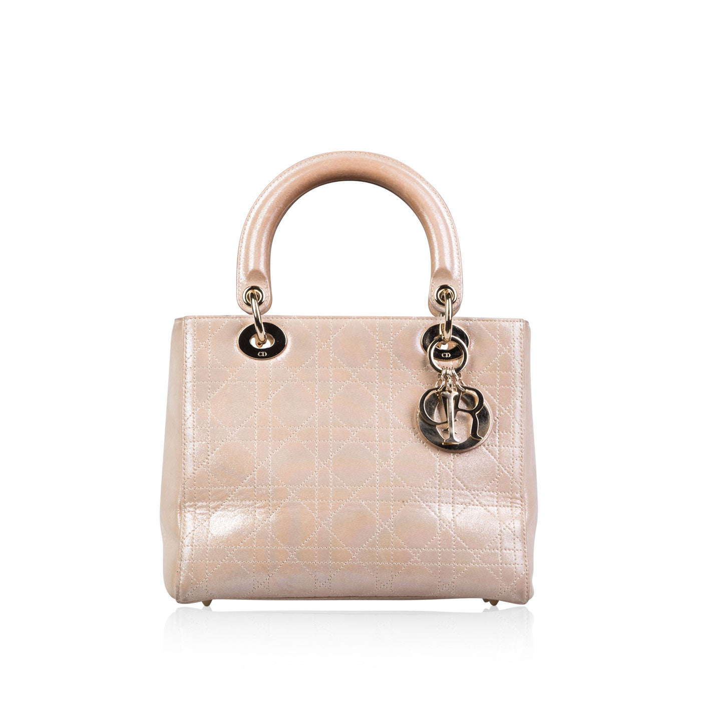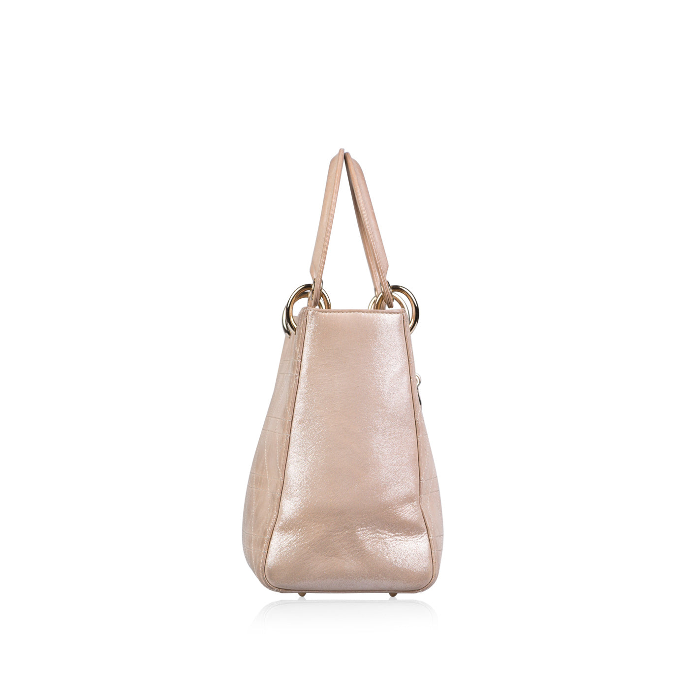 A timeless work of art, the "Lady Dior" bag has become the icon 'it-bag' within the entire Dior collection. Meticulously crafted by hand, this Medium-sized gold shimmer fabric bag is enhanced by signature Dior "Cannage" stitching. The Lady Dior bag, also known as the Princess bag, is undoubtedly Dior’s most iconic bag. The bag is named after Princess Diana, who skyrocketed its popularity ever since she was first gifted the bag in the Mid-90's.