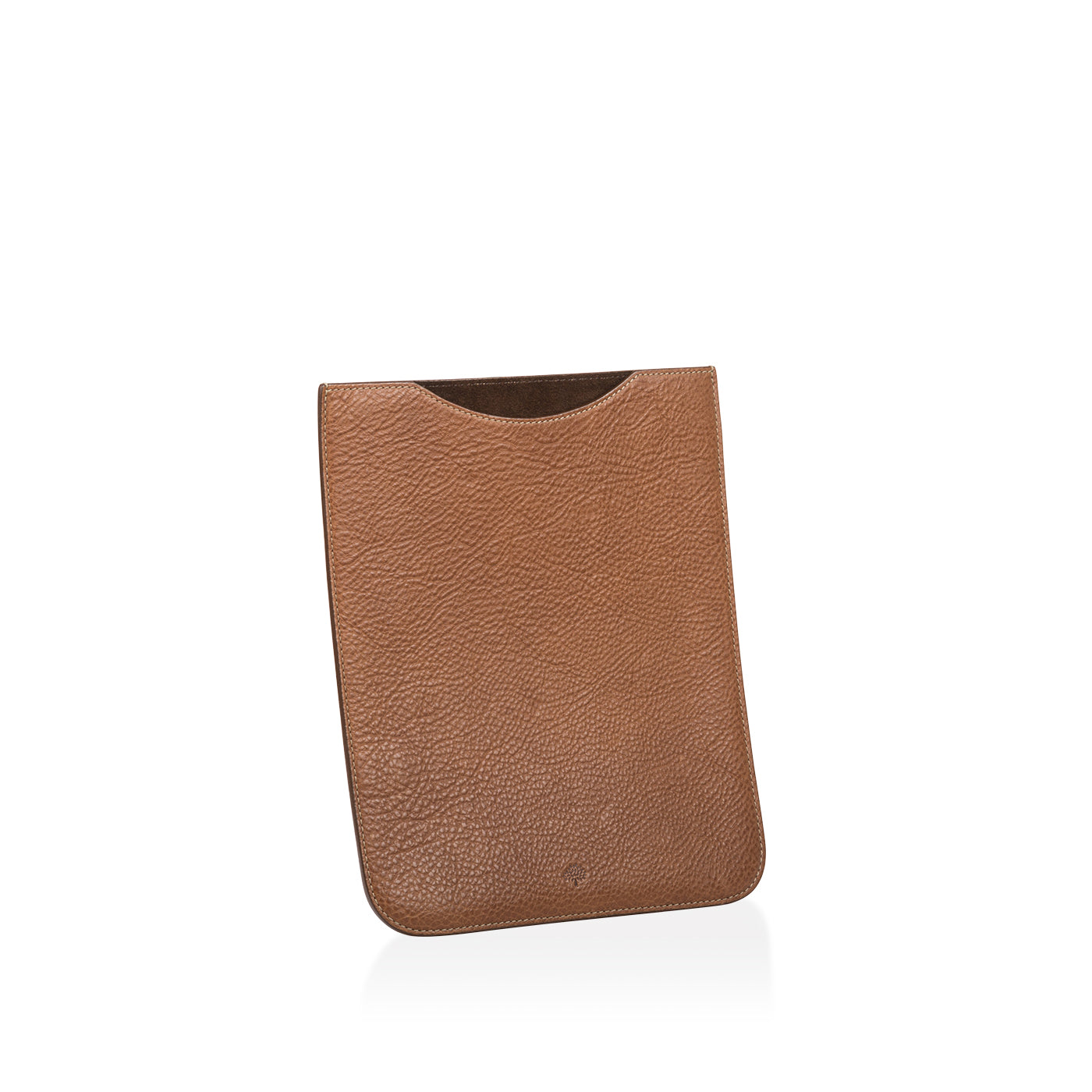 Keep your iPad Air safe and secure in this rather simple yet eloquent Mulberry iPad leather sleeve. Presented in a grained pattern, the leather sleeve also features a subtle embossing of the ionic Mulberry tree. Sleek, vibrant and sophisticated, this iPad sleeve is the perfect travel companion.The Mulberry iPad sleeve features a slim compact design which allows it to fit into your bag or briefcase effortlessly. The natural leather is tanned using a technique which features natural vegetables, thereby allowing the leather to retain an untreated and sophisticated appearance. Which is why this beautiful leather will age gracefully, taking on unique patina with age and use.