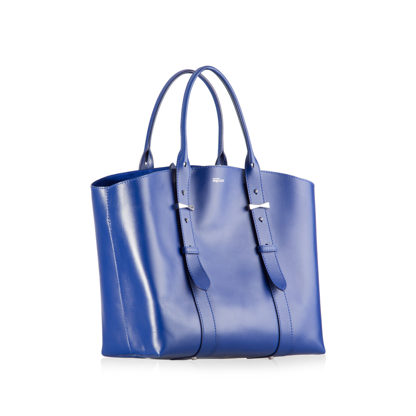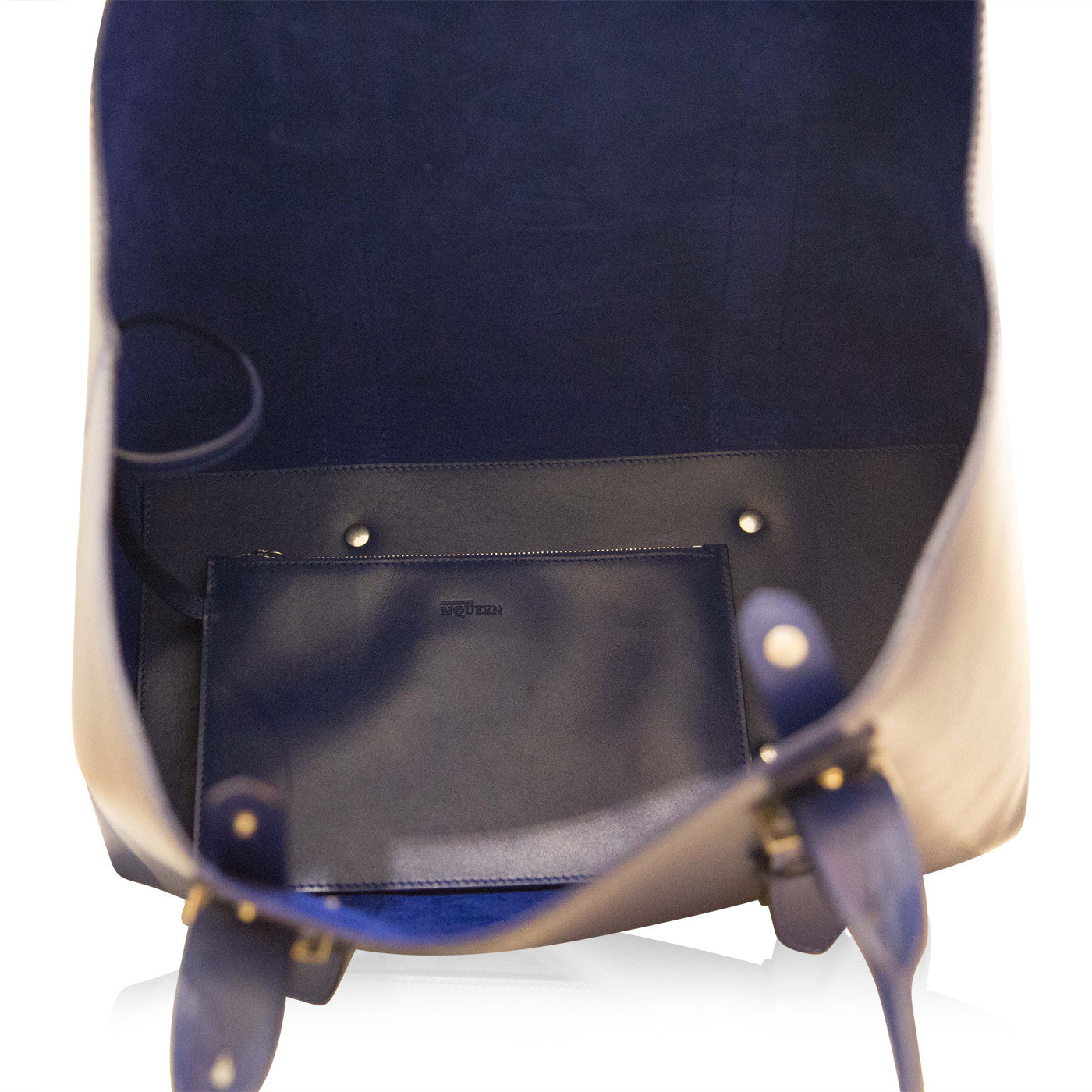 The Legend Medium Shopper has adjustable handles giving the option of shoulder or hand carry. The Legend Medium Shopper is East/West; features exclusive Alexander McQueen metal bridge hardware and stamped logo.