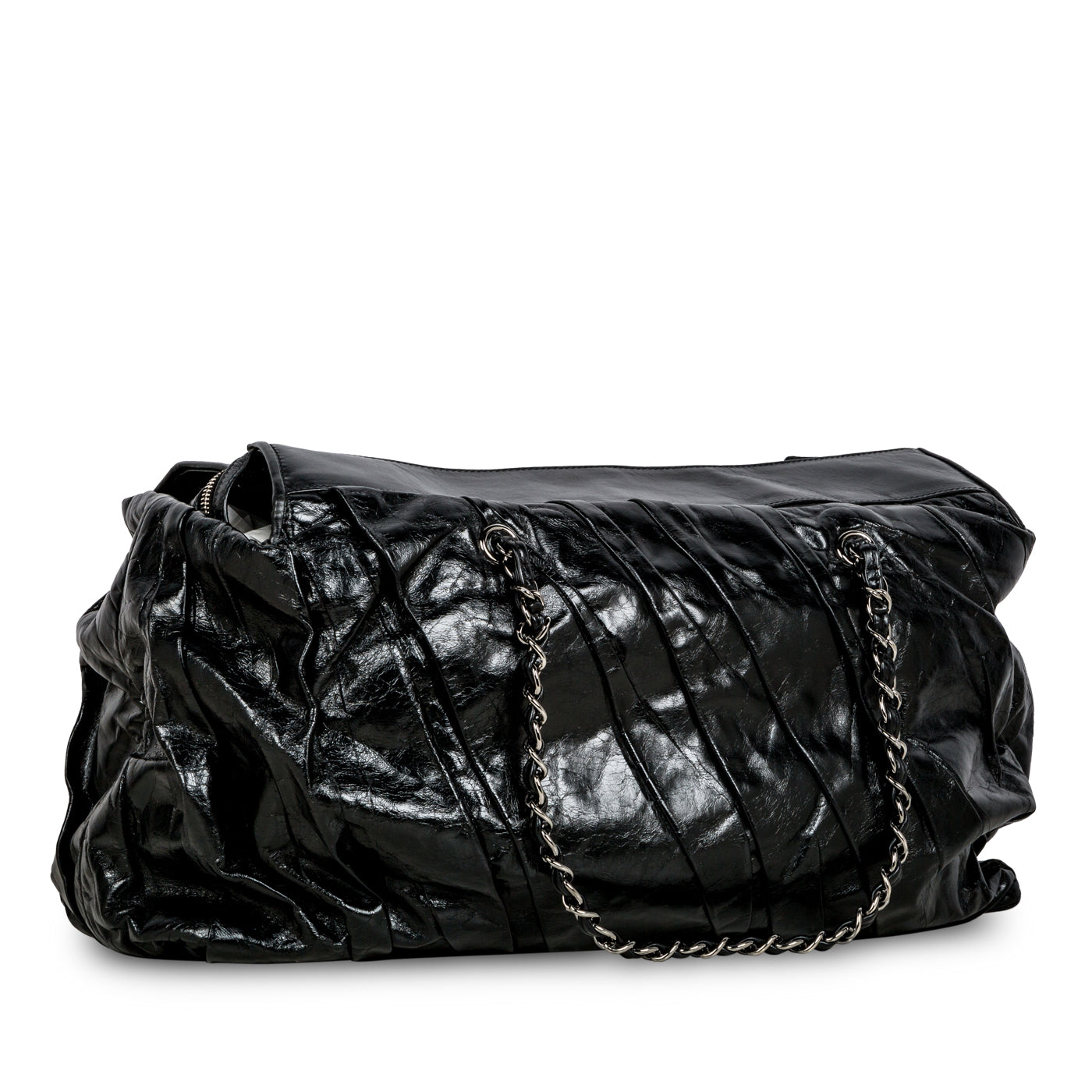 Crafted from distressed pleated leather, this effortlessly cool Chanel bag is your ultimate dream tote. For the women who like to carry their entire life with them wherever they go, or for the women who only travel in style, or for the women with a love for luxury and a soft spot for Chanel - this one's for you. Whether you're off to work, jet setting across the world, running errands, or grabbing dinner with friends, this XL piece is suitable for any and every occasion. A prime example of "understated glamour" this tote is large and luxurious but low-key at the same time. Sleek and simple, this tote is one you'll have forever. A classic, timeless piece that will never go out of style, investing in a Chanel is always a good idea.