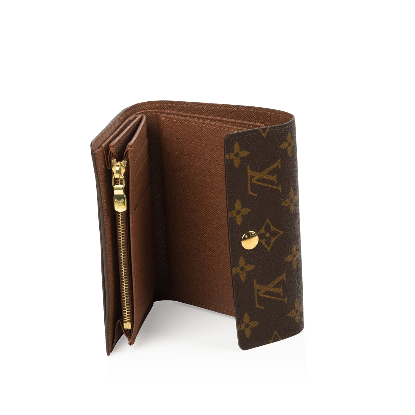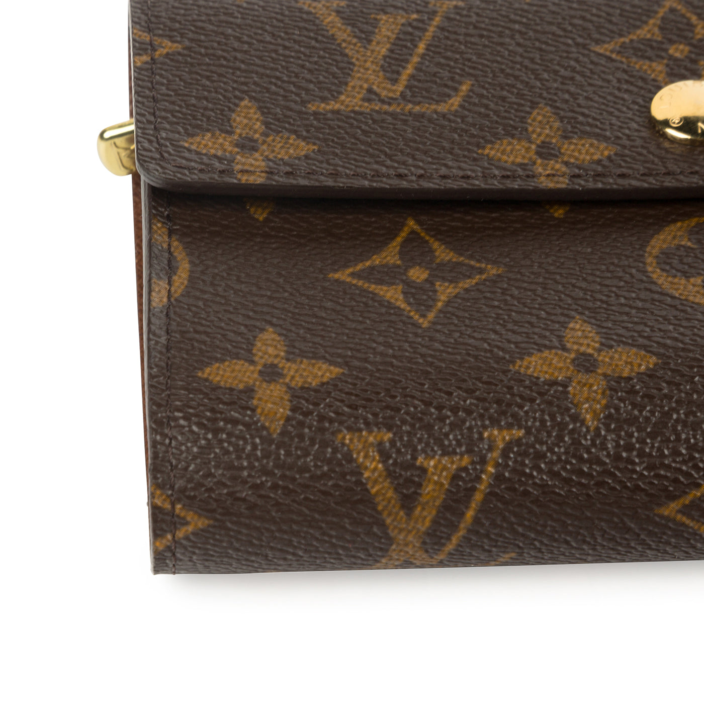 Remain organised and effortlessly sophisticated with Louis Vuitton’s Monogram Alexandra Wallet. A rather rare gem, the wallet is small yet mighty. Its exterior features the fashion house’s renowned monogram canvas alongside beautiful gold toned hardware, creating the perfect balance between chic and contemporary. The flap opens up to reveal a stunning brown grained leather interior lining compromising of several storage compartments; from thirteen credit card slots, several pockets and a gorgeous ID and photo window.