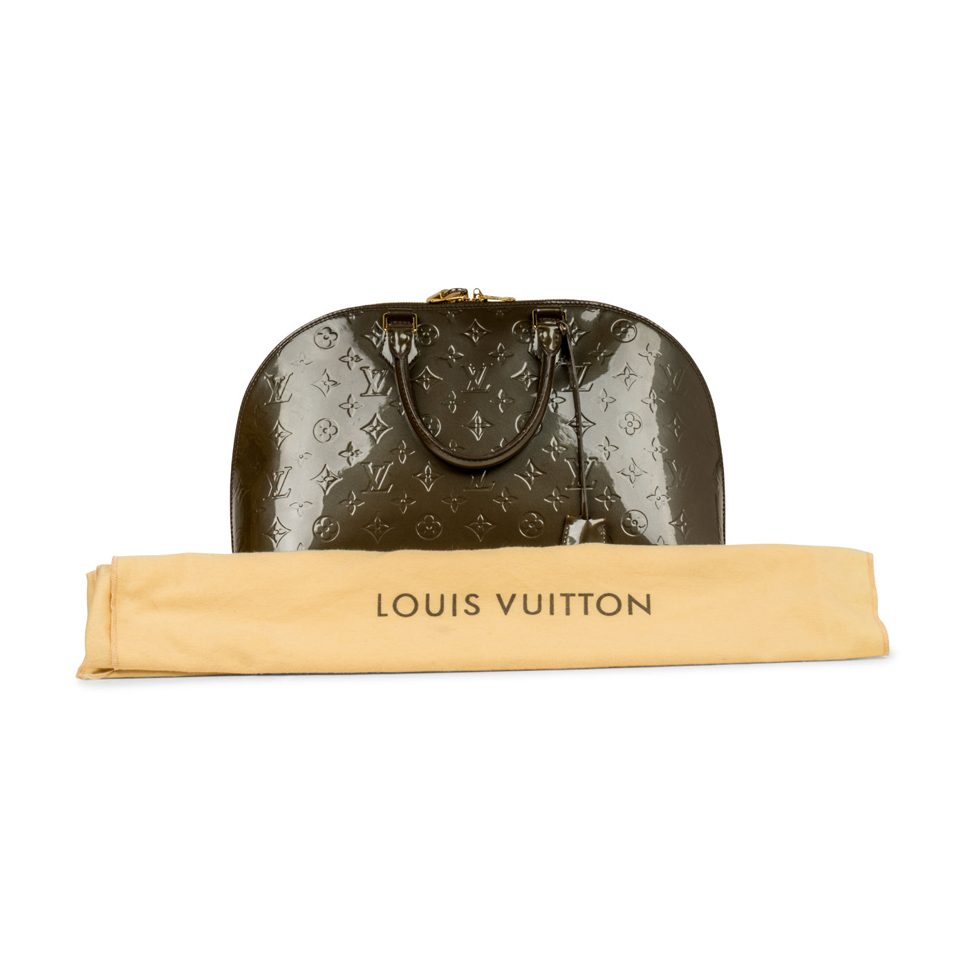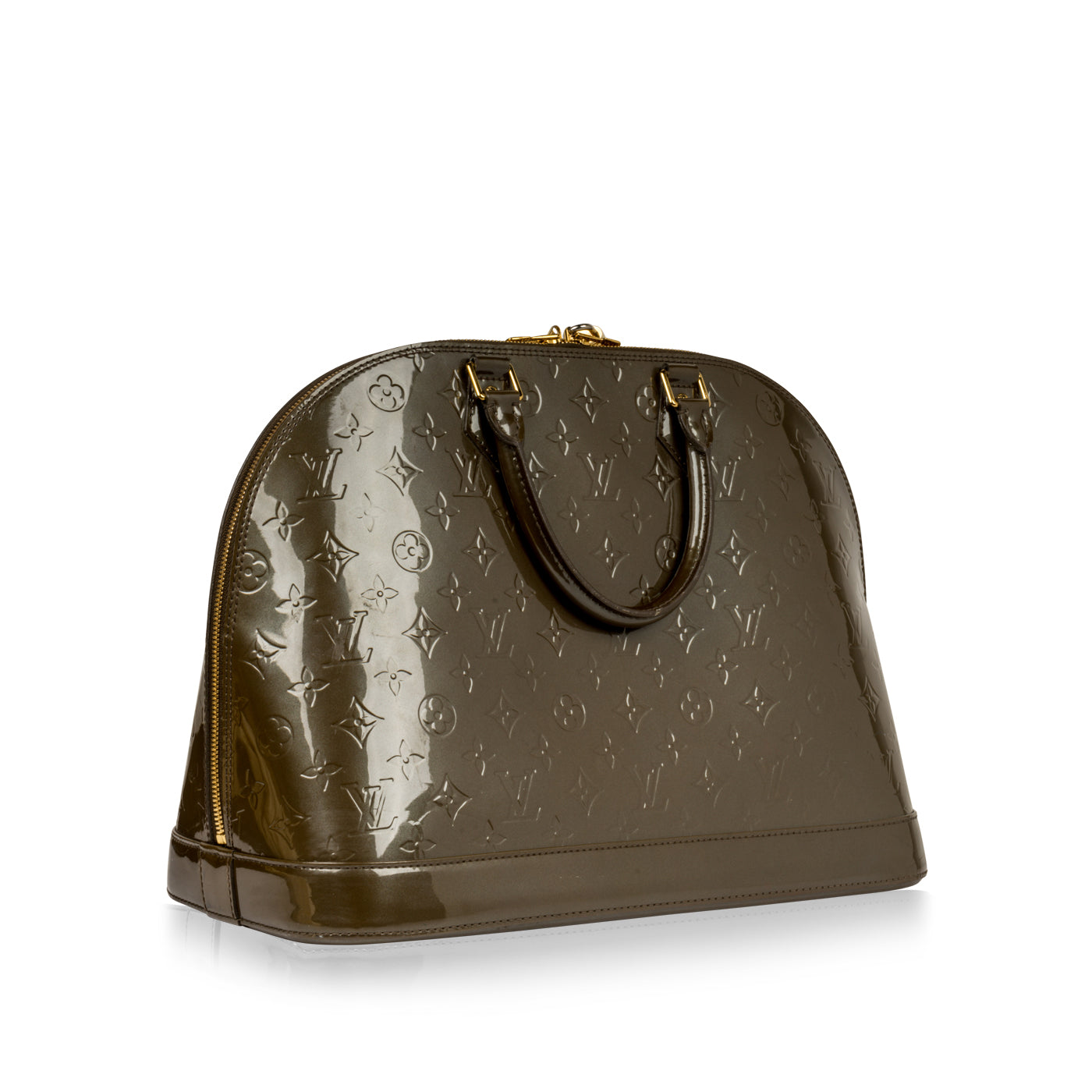 The iconic Alma bag from Louis Vuitton, originally introduced in 1934, offers function and timeless sophistication. Carefully crafted from shiny patent leather in a deep olive hue, this Alma features LV's signature monogram logo embossed in the leather. On the more low-key side in comparison to the brand's monogram canvas, this Alma is a versatile piece that can easily hold all your essentials while keeping you sleek, stylish and sophisticated. With its uber-spacious interior featuring two mobile phone compartments, you can carry your whole life with you wherever you go. Whether you dress the Alma up with a blazer and a skirt, or down with a top paired with cropped trousers for a more casual look, this bag will add a touch of luxury to whatever you wear it with and is sure to draw attention wherever you go.
