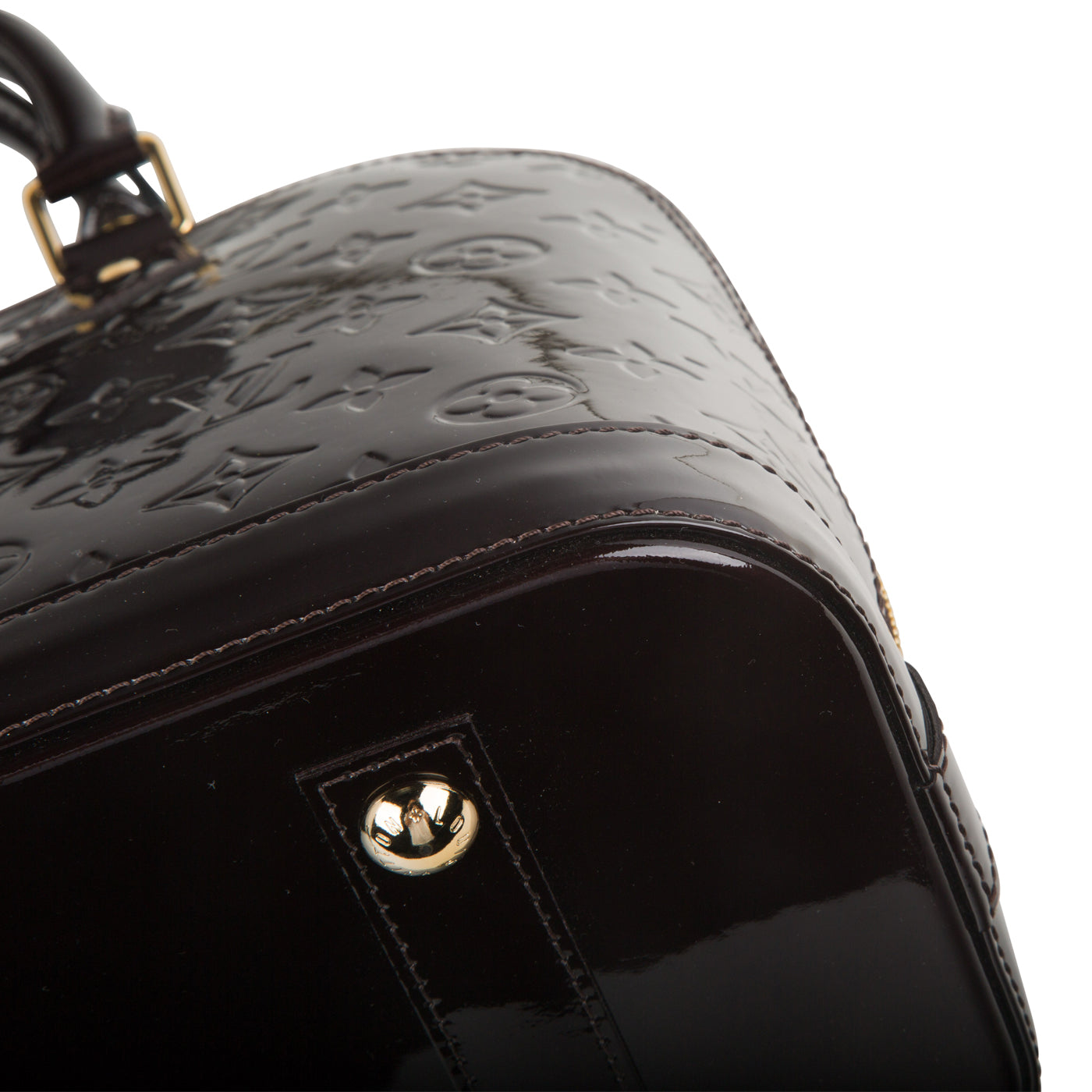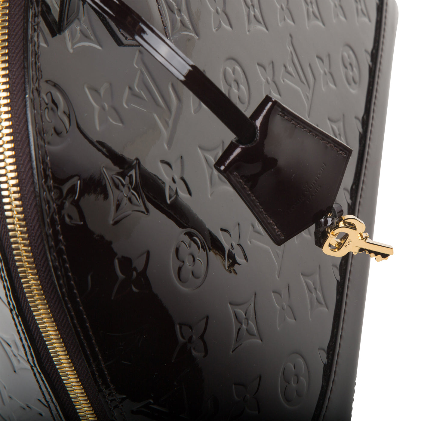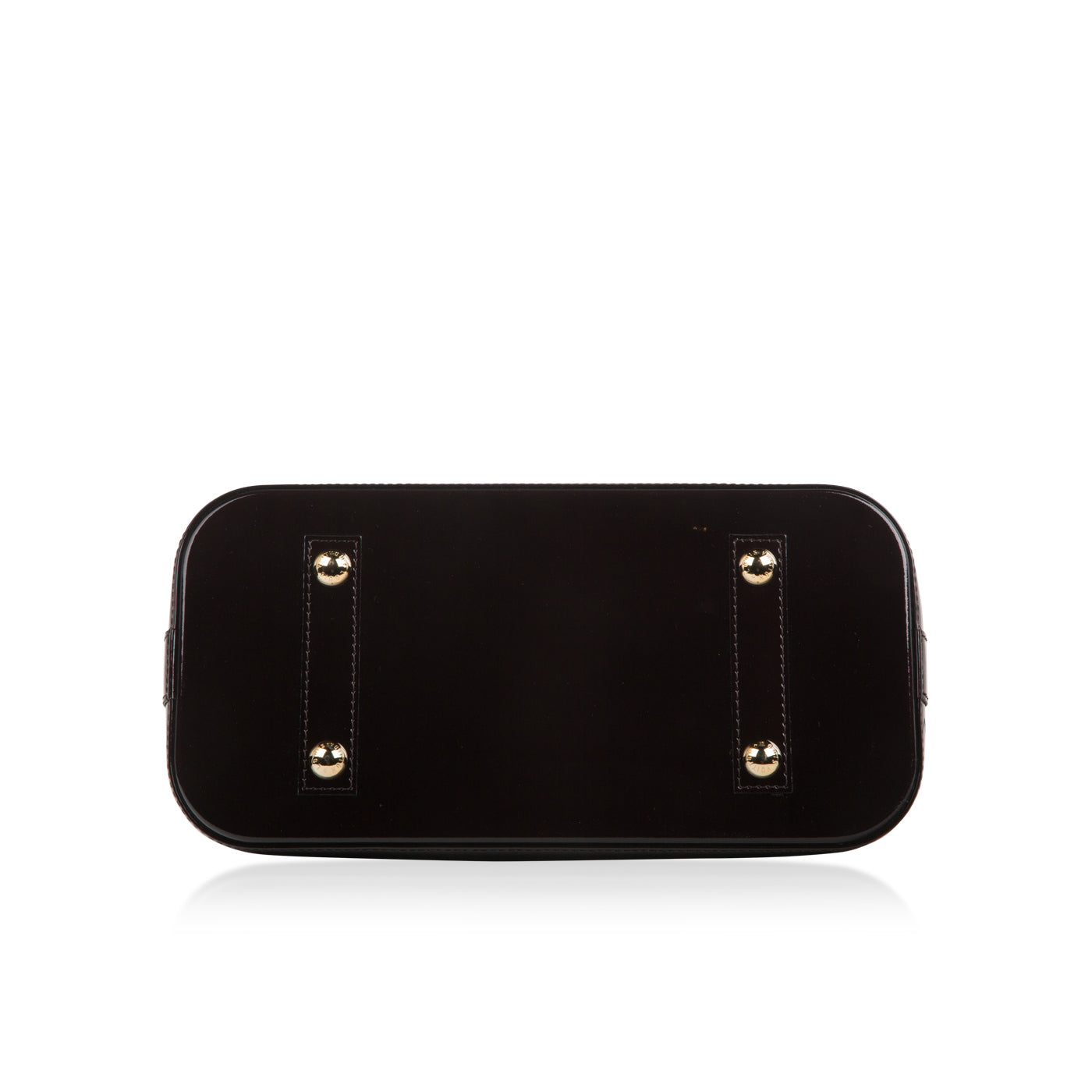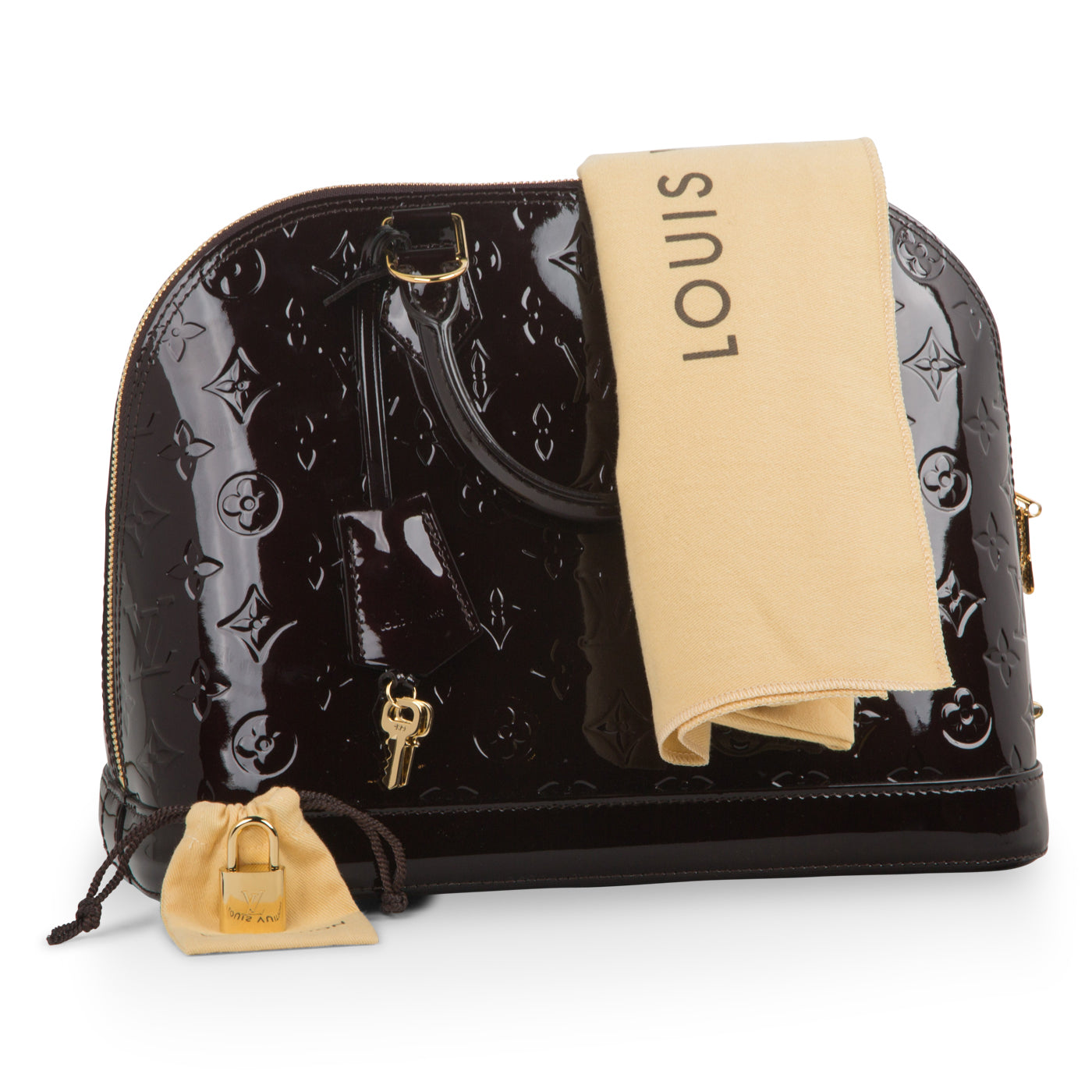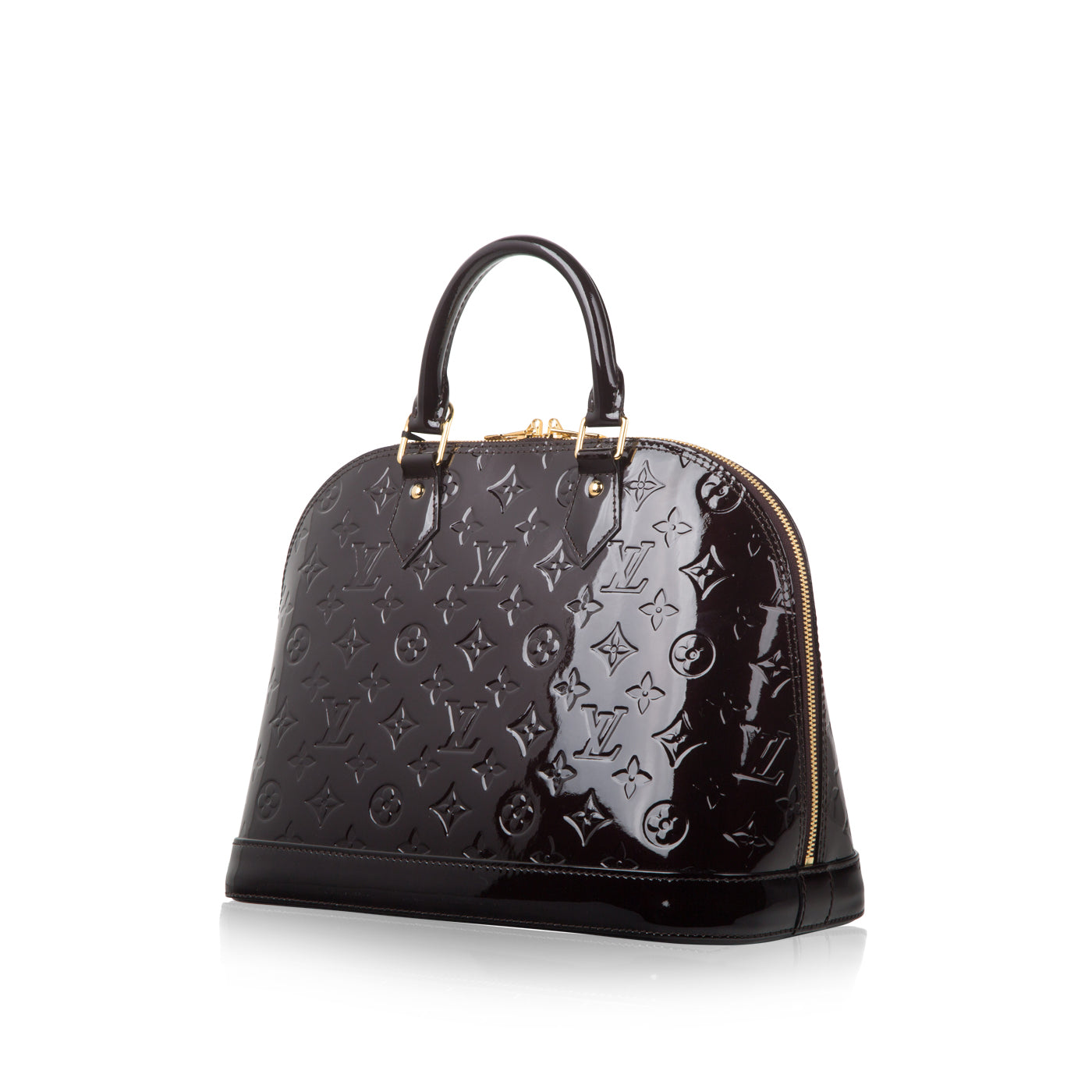 The iconic Alma bag from Louis Vuitton, originally introduced in 1934, offers function and timeless sophistication. Carefully crafted from aubergine patent leather, this Alma features LV's signature monogram logo embossed in the leather. On the more low-key side in comparison to the brand's monogram canvas, this Alma is a versatile piece that can easily hold all your essentials while keeping you sleek, stylish and sophisticated. With its spacious interior featuring two slip compartments, you can carry all your every-day essentials in style. Whether you dress the Alma up with a blazer and a skirt, or down with a top paired with cropped trousers for a more casual look, this bag will add a touch of luxury to whatever you wear it with and is sure to draw attention wherever you go.