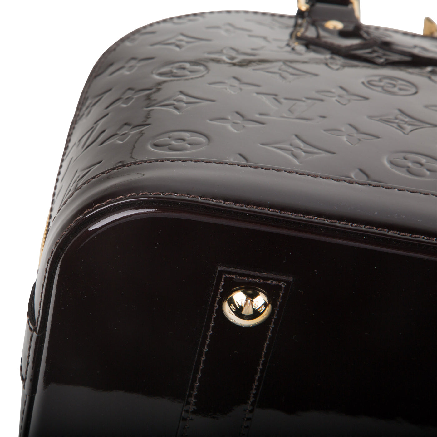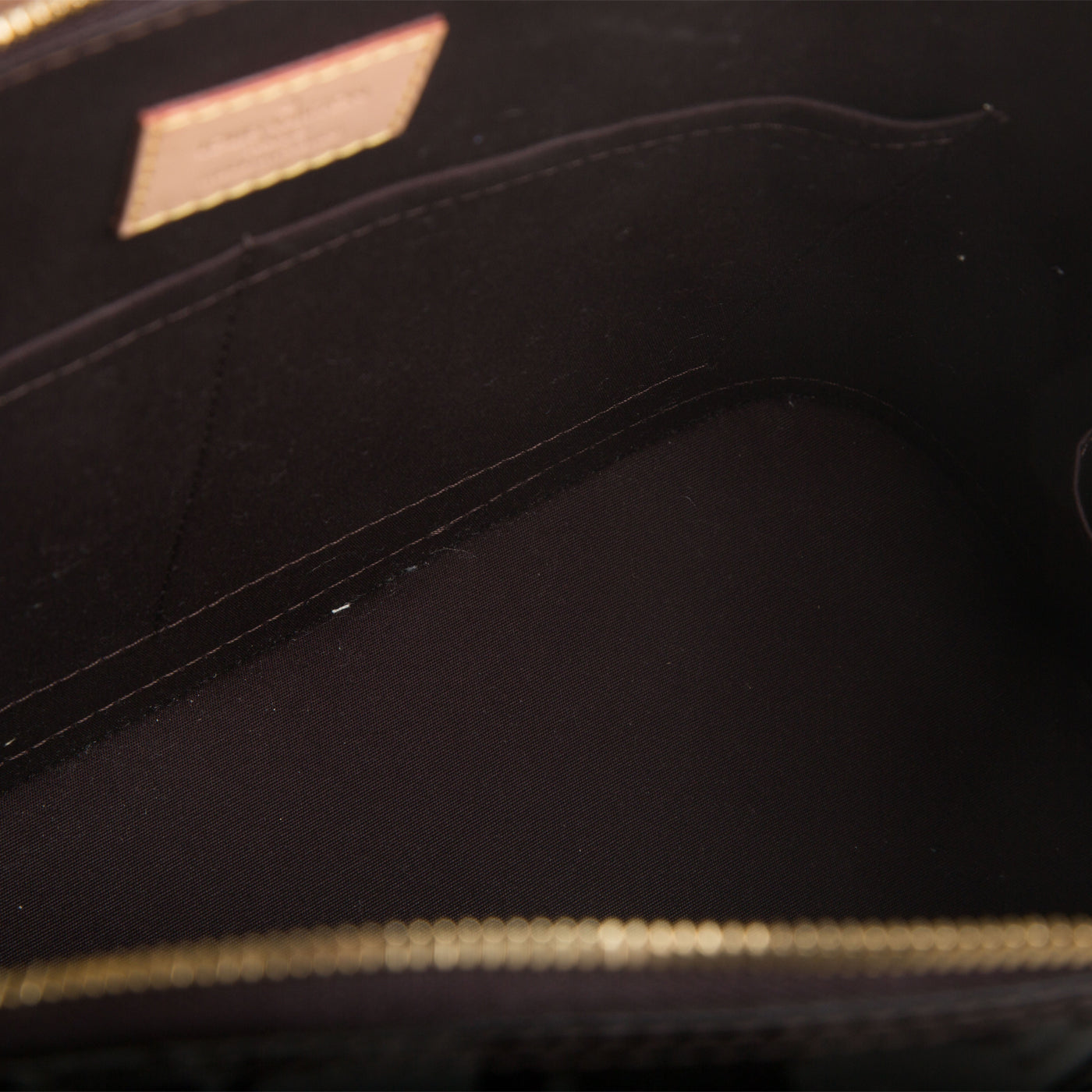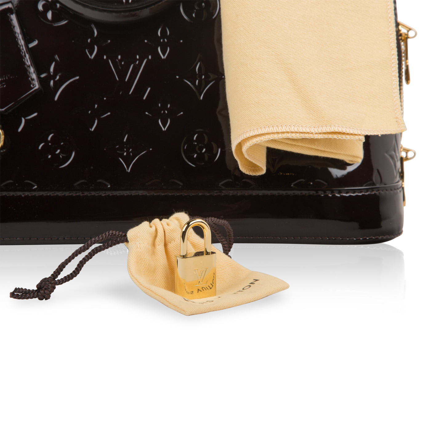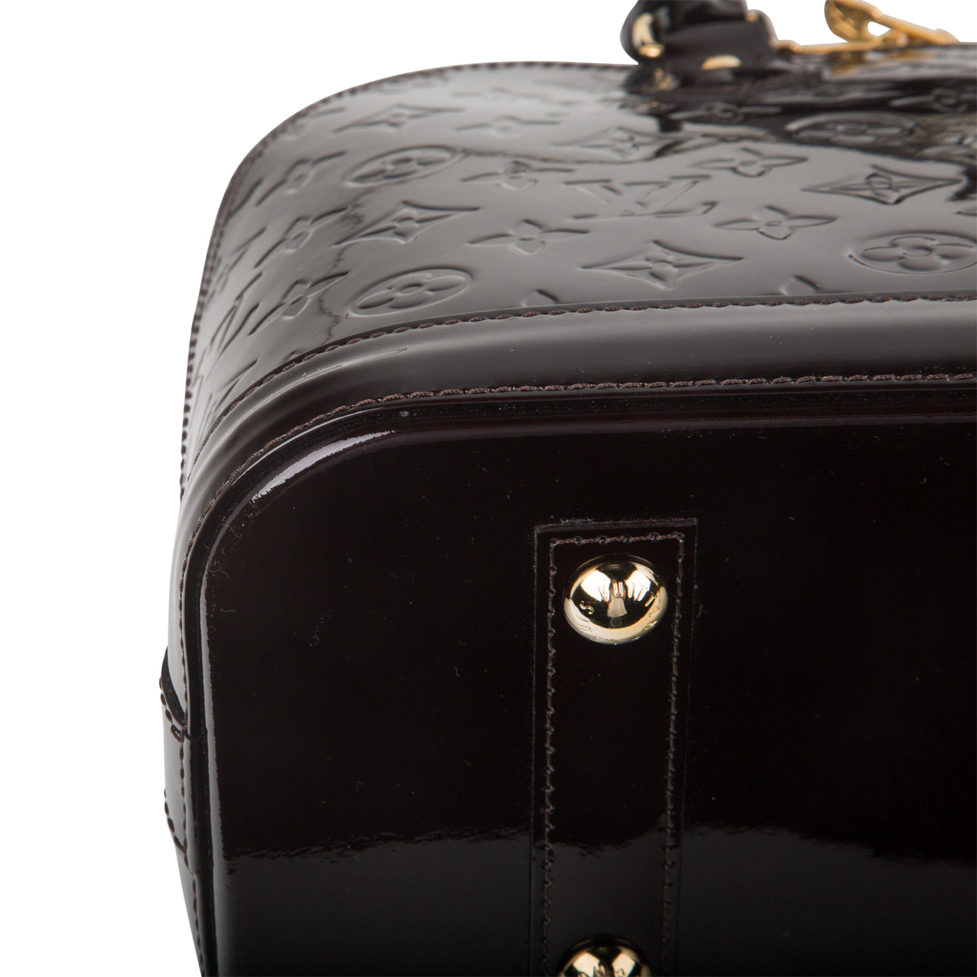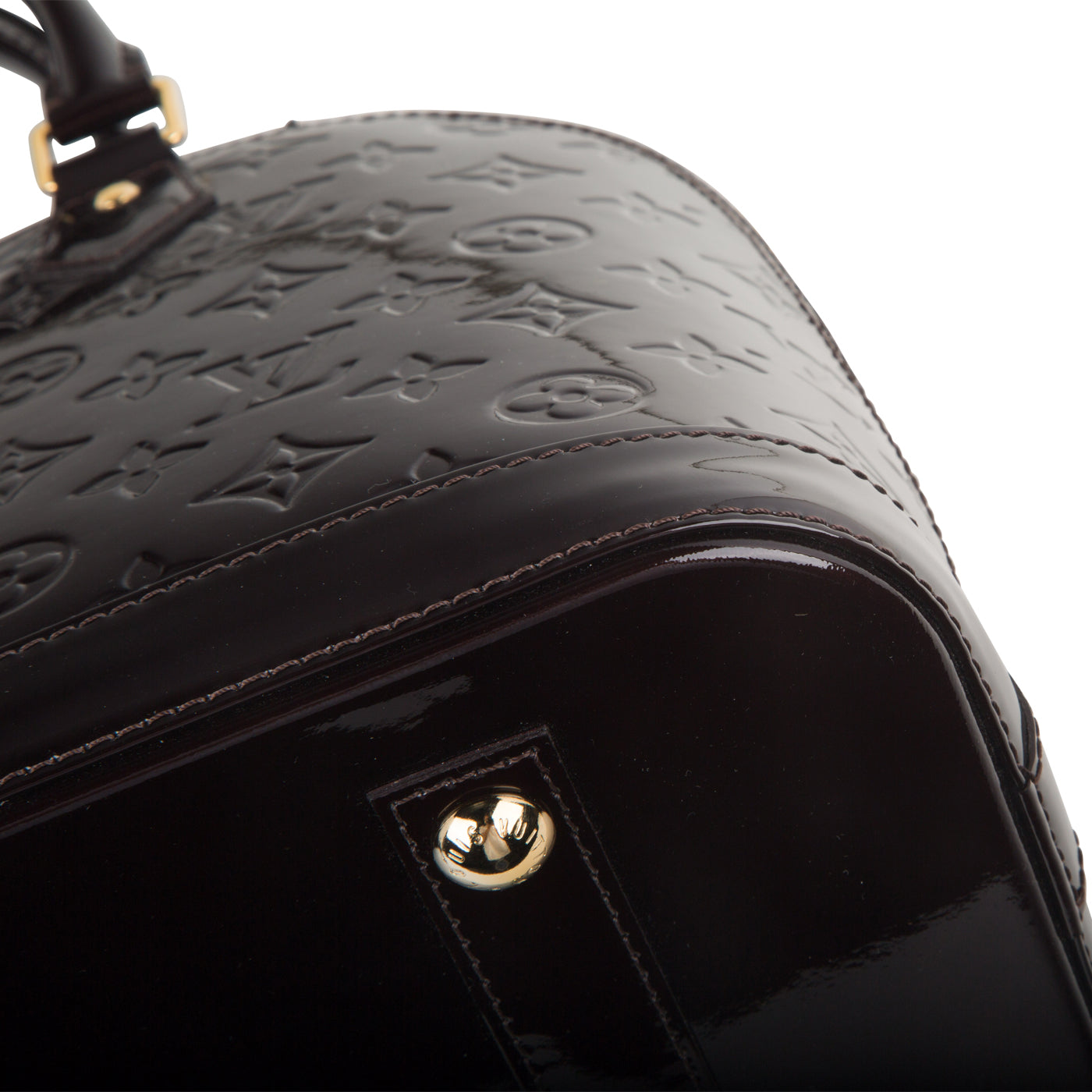 The iconic Alma bag from Louis Vuitton, originally introduced in 1934, offers function and timeless sophistication. Carefully crafted from aubergine patent leather, this Alma features LV's signature monogram logo embossed in the leather. On the more low-key side in comparison to the brand's monogram canvas, this Alma is a versatile piece that can easily hold all your essentials while keeping you sleek, stylish and sophisticated. With its spacious interior featuring two slip compartments, you can carry all your every-day essentials in style. Whether you dress the Alma up with a blazer and a skirt, or down with a top paired with cropped trousers for a more casual look, this bag will add a touch of luxury to whatever you wear it with and is sure to draw attention wherever you go.