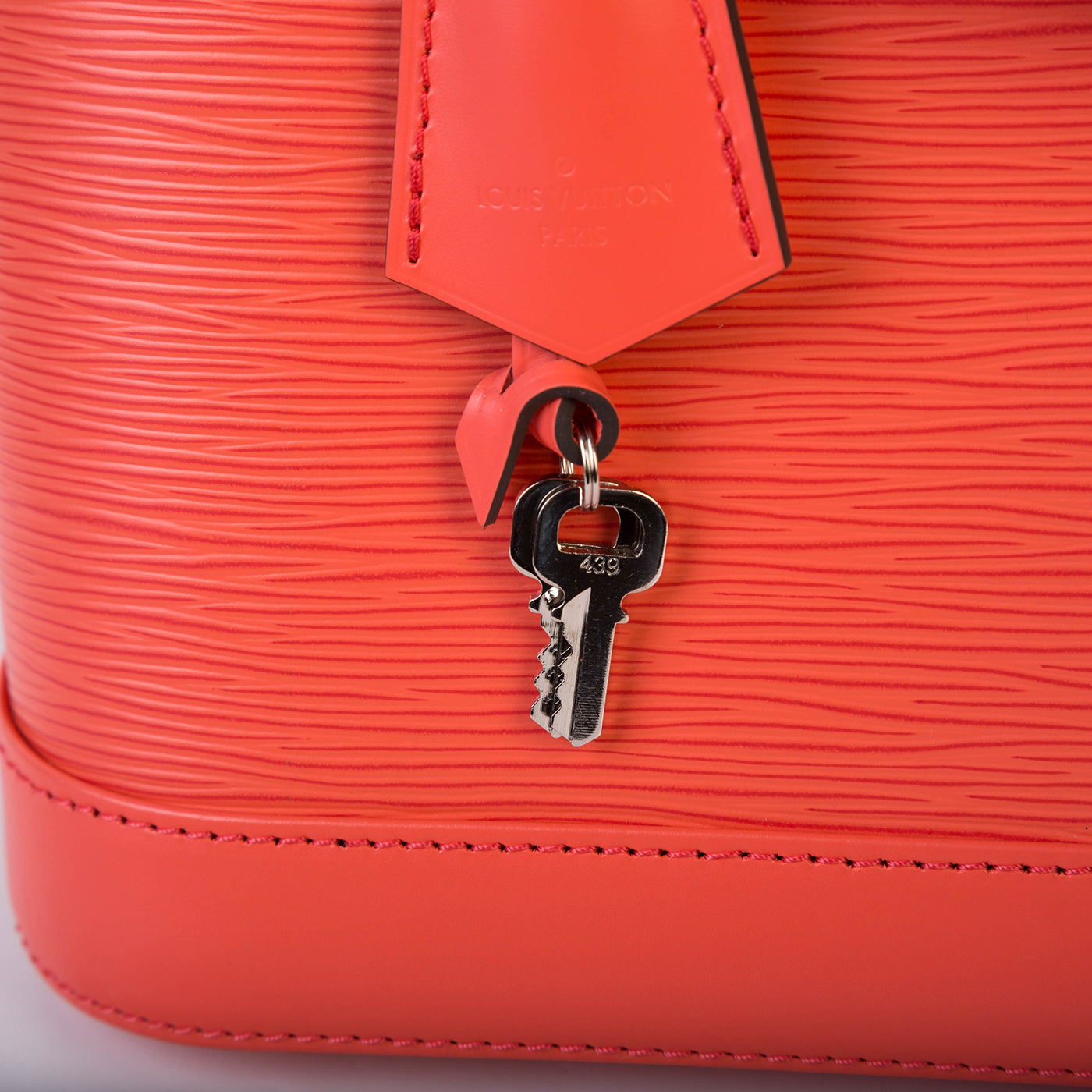 The Alma was originally introduced in 1934 and is one of Louis Vuitton's signature pieces. With its structured silhouette, practical function and classic aesthetic, the Alma is the uptime go-to bag for any woman with a love for luxury. The bright coral hue is the ideal summer bag, given its bright colouring it is also the perfect compliment to any monochrome look. Whether you dress it up with a white summer dress and heels or dress it down with a pair of light wash jeans and a basic tee, this Alma is a sure statement that will make head turns. Carry all your every day essentials inside the spacious interior while remaining sleek, stylish and sophisticated.