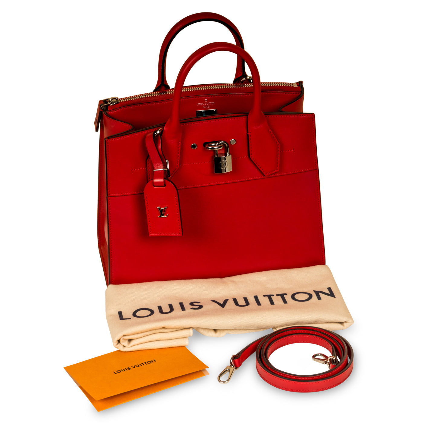 Sophisticated and feminine, Louis Vuitton presents their ever-popular City Steamer tote. Inspired by historic House luggage by Vuitton and restyled for contemporary living by Creative Head, Nicolas Ghesquière. This particular City Steamer PM handbag is crafted from rich smooth calfskin. The marvellous piece features distinctive handle mounts, an engraved padlock at front and centre of the bag, discreet LV emblems - all in a discreet and ultra-luxury form.
