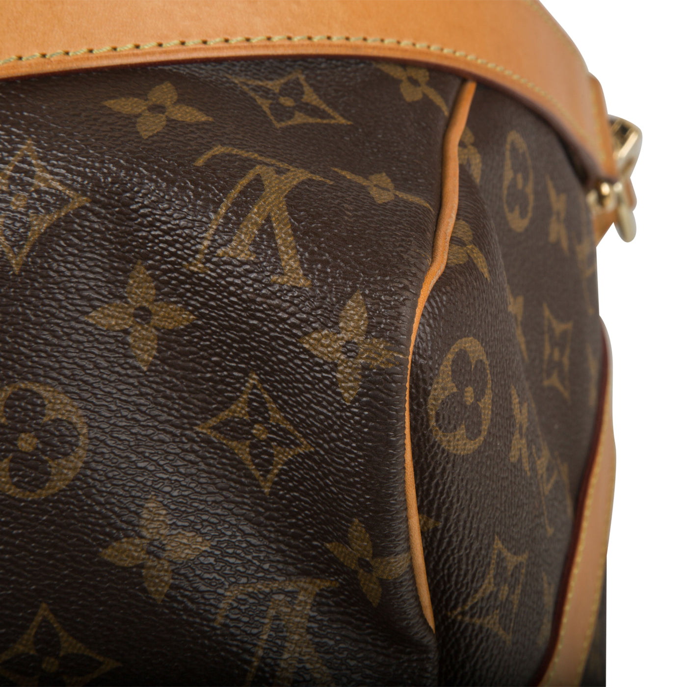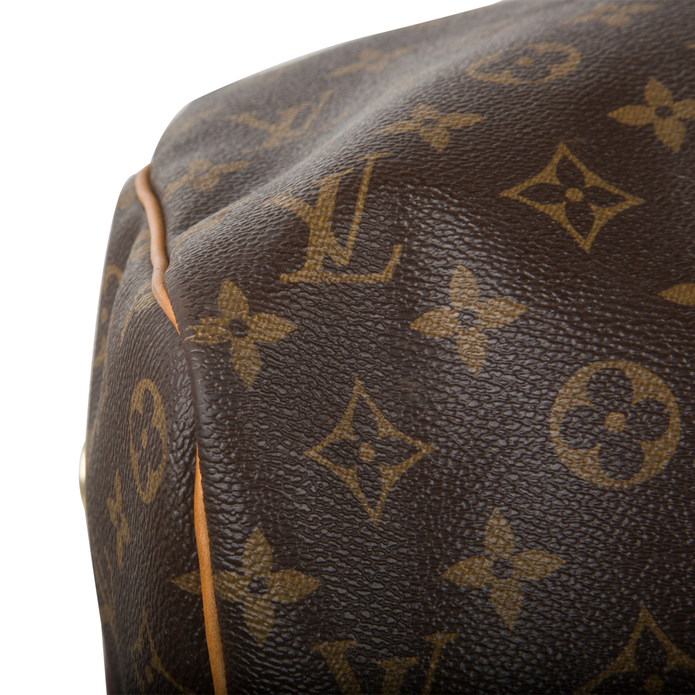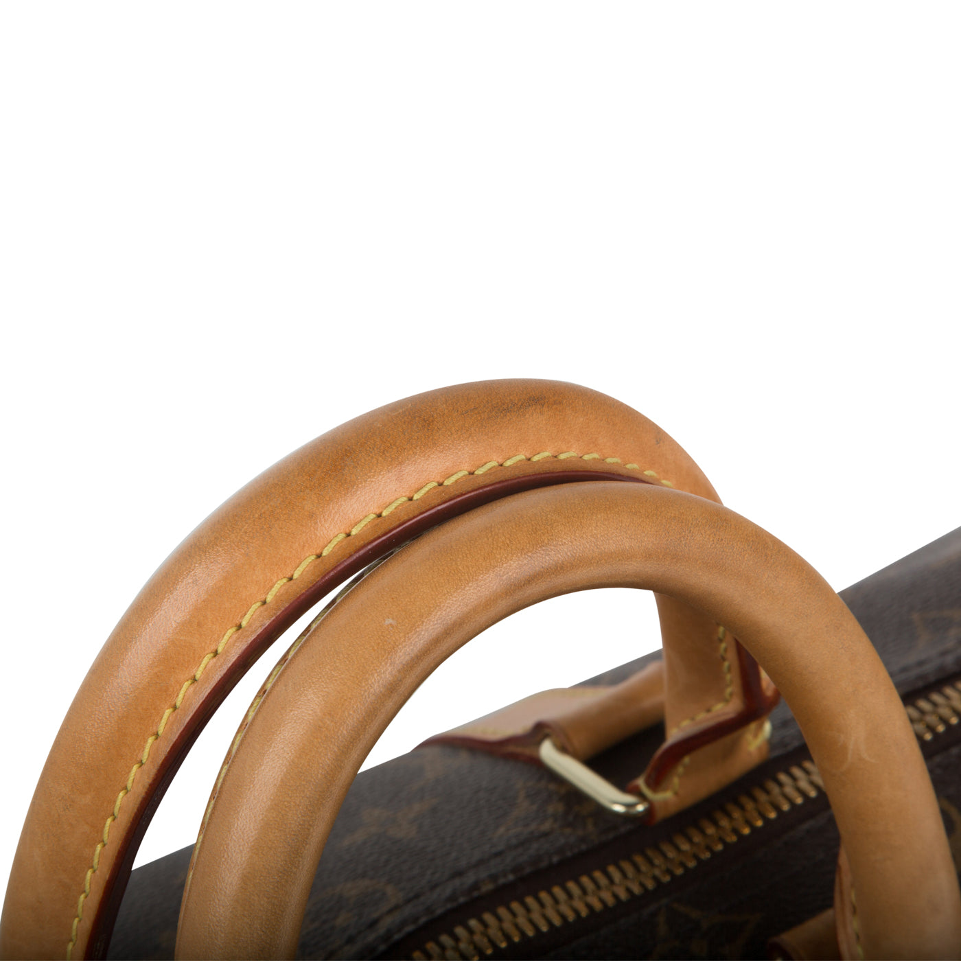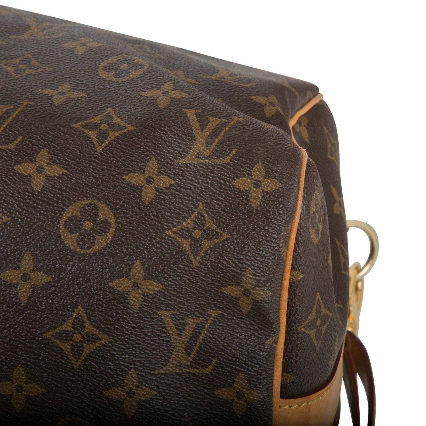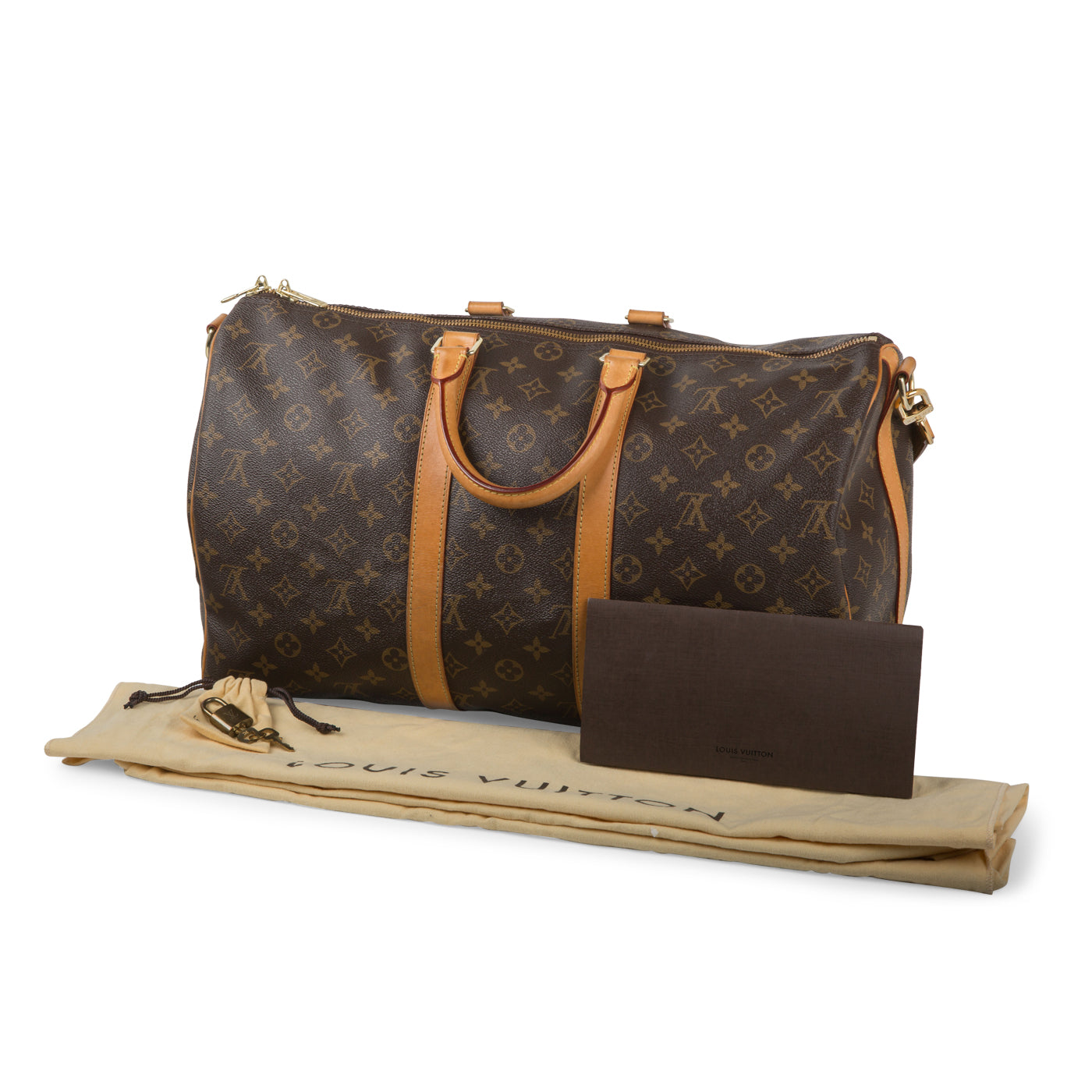 Louis Vuitton presents their signature Keepall bag, the perfect travel accessory for both men and women. Carefully crafted in the brand's iconic Monogram canvas with tan leather trimming, top handles and shoulder strap, the Keepall is sleek and sophisticated. Spacious enough to carry your whole world inside, but small enough to easily accompany you throughout your day, the Keepall is also extremely lightweight. It's the perfect travel companion and a necessary addition to any luxury bag collection, especially luggage. The perfect mix between fashion and function, it's practical as well as stylish. Wherever you go, the LV Keepall will make sure you travel in style.