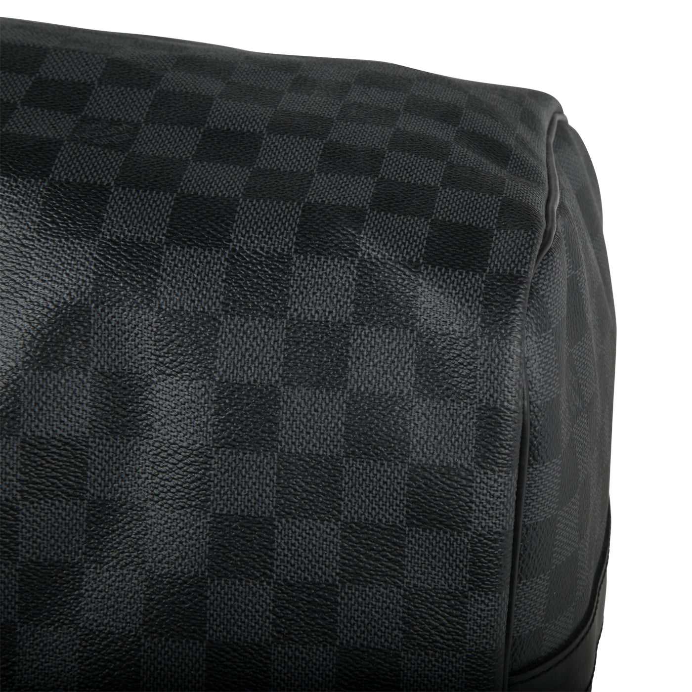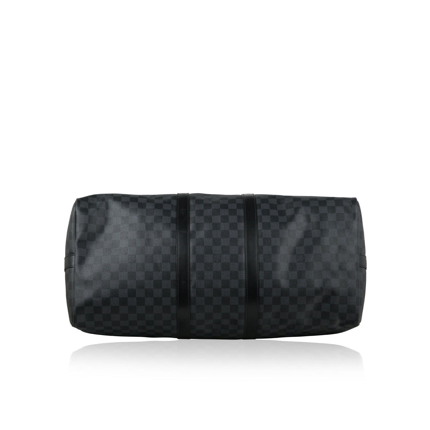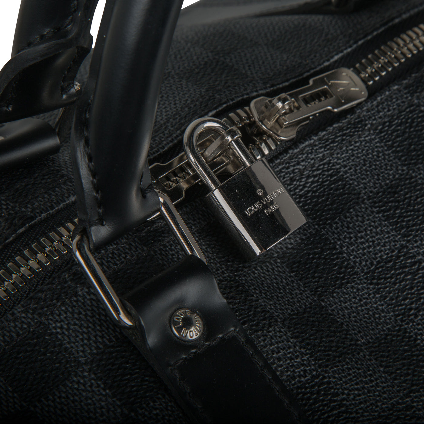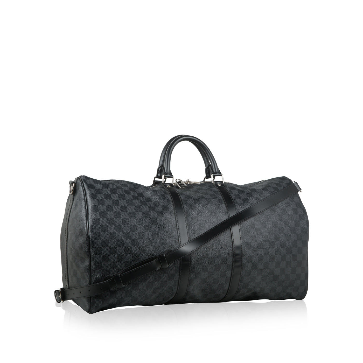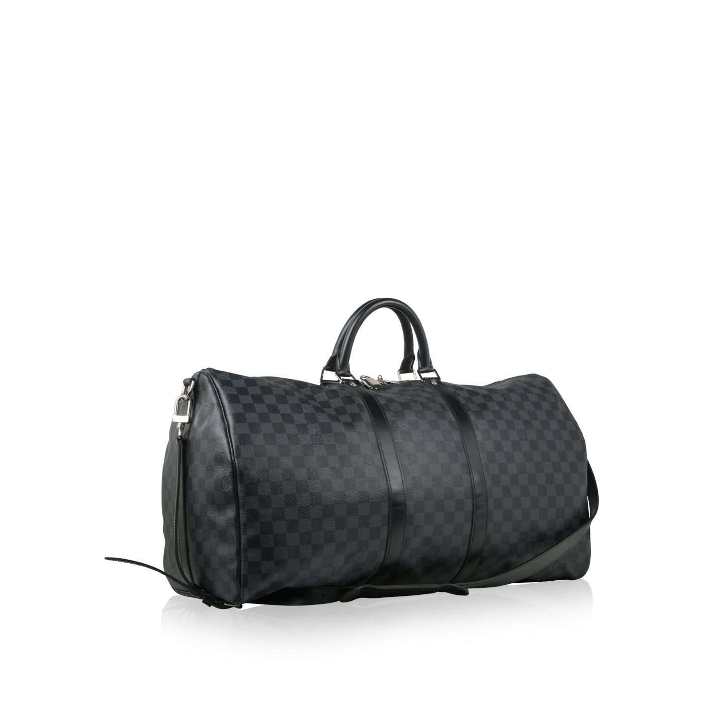 Louis Vuitton presents their signature Keepall bag, the perfect travel accessory for both men and women. Carefully crafted in the brand's iconic Damier Graphite canvas with black leather trimming, top handles and shoulder strap, the Keepall is sleek and sophisticated. Large and spacious, making it easy to carry your whole world with you wherever you go, the Keepall is also extremely lightweight. It's the perfect travel companion and a necessary addition to any luxury bag collection, especially luggage. The perfect mix between fashion and function, it's practical as well as stylish. Wherever you go, the LV Keepall will make sure you travel in style.