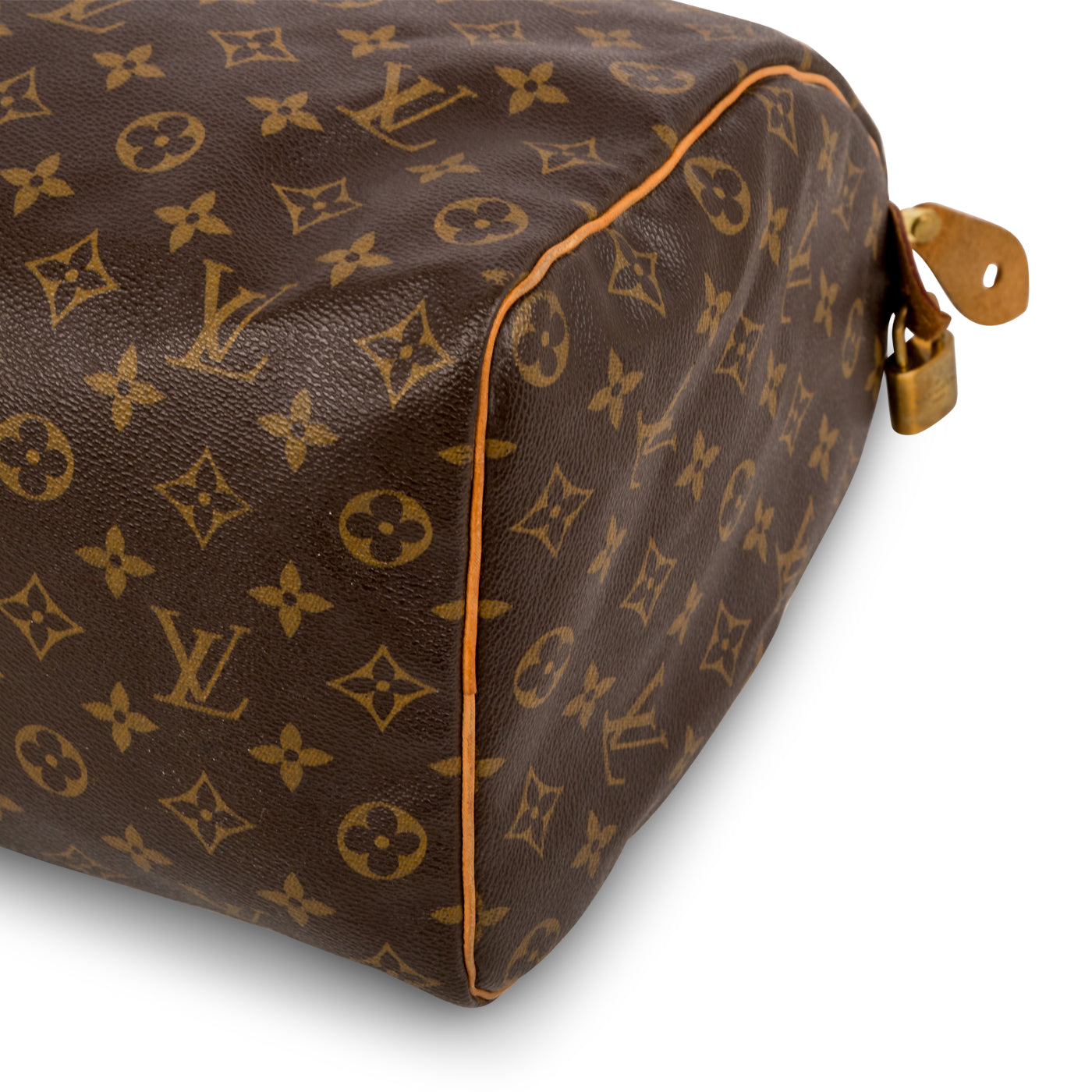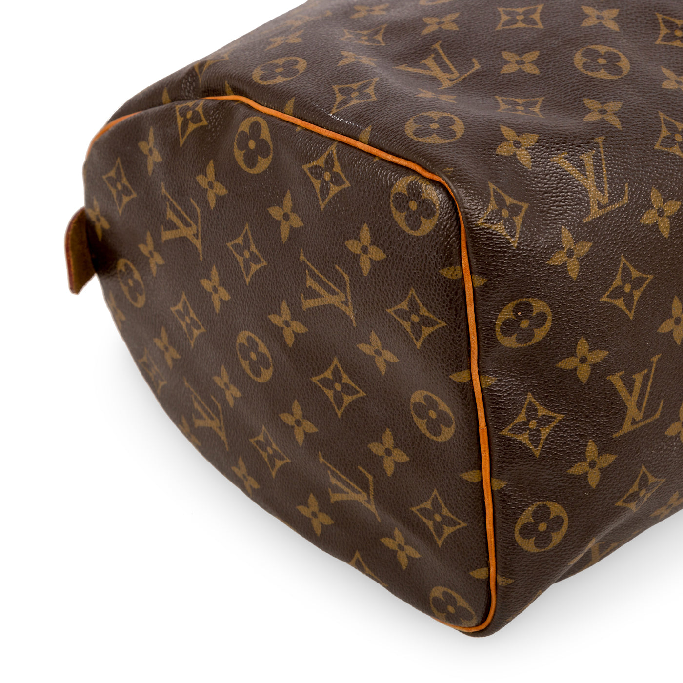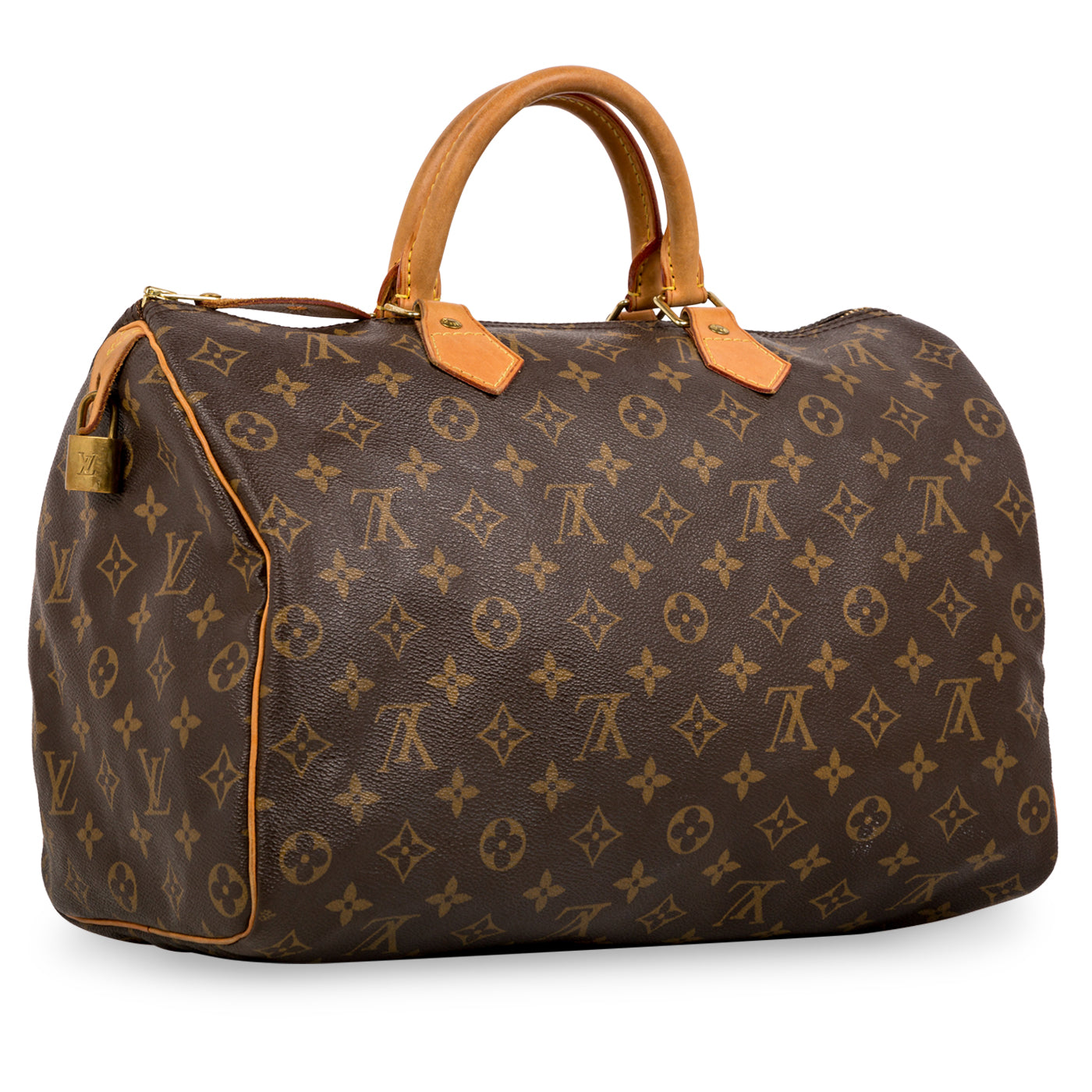 The first every-carry-all city bag, the Louis Vuitton Speedy 35 is an essential bag for the lady-on-the-go who also wants to remain fashion forward. A timeless classic, this bag is crafted from Louis Vuitton’s signature monogram canvas, which is characteristically famed for complimenting any and every day outfit within your wardrobe. This handbag features beautiful cowhide leather trimmings and is cleverly finished off with gold-toned hardware. Its interior features a roomy storage compartment alongside a slip pocket for smaller necessities.