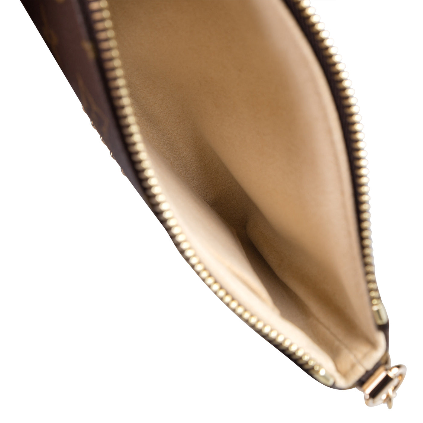 This discontinued clutch on chain by Louis Vuitton is highly sought after even after it’s production ended in 2016. The heritage logo plaque, paired with the detachable and delicate gold chain means this bag is the perfect go to clutch bag for that instant Parisian-chic. The purse zips close making it secure and it comes complete with a Louis Vuitton dust bag.