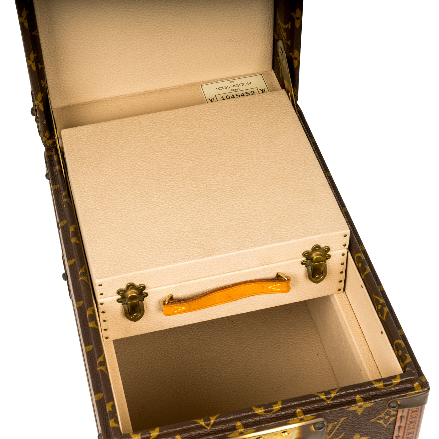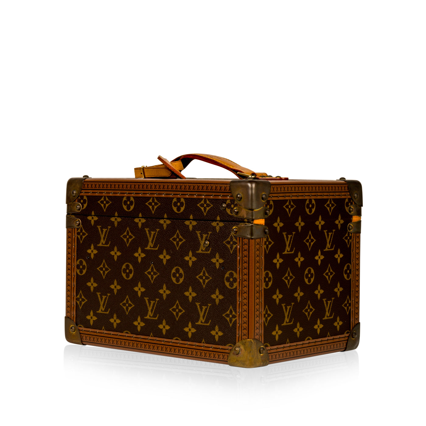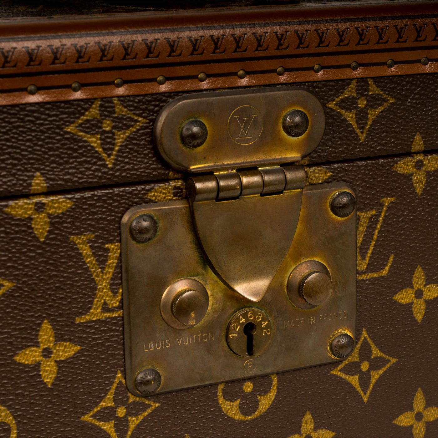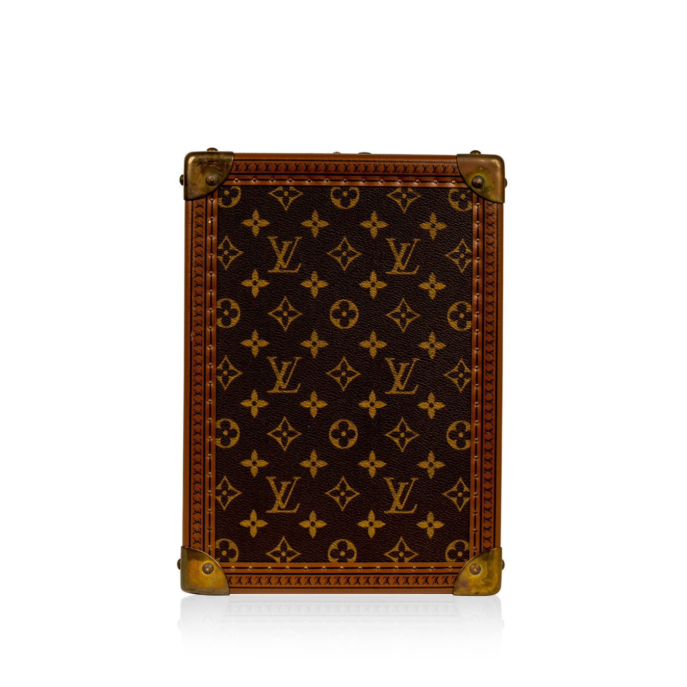A rare piece from Louis Vuitton, this mini vintage vanity case is an absolute must have for any lover of LV or vintage timepieces in general. Though of course it's ideal if you want to actually use it as a vanity, but we adore this piece as an interior decoration piece. Rich in history, this classic vanity is a unique accessory that you will never fall out of love with. With its signature monogram printed embossed throughout, rustic brass hardware and vintage brown LV logo trimming, this piece truly is special. Always sleek, always chic - this vanity will never go out of style.