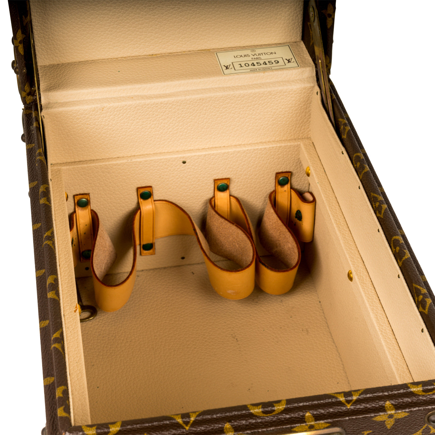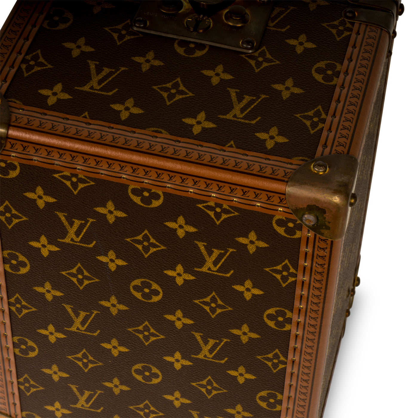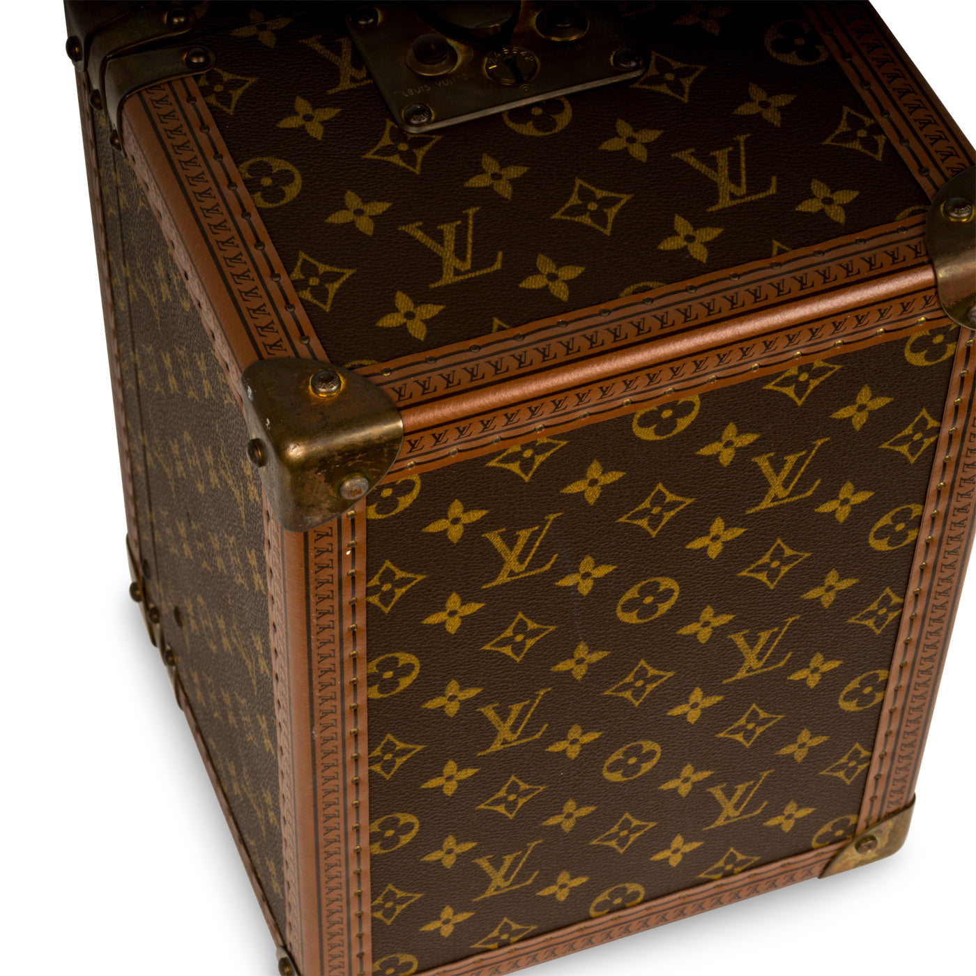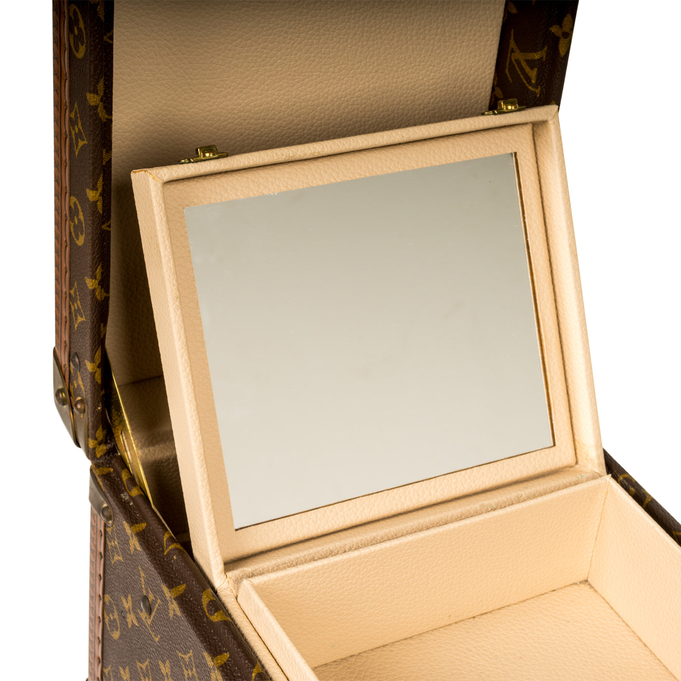 A rare piece from Louis Vuitton, this mini vintage vanity case is an absolute must have for any lover of LV or vintage timepieces in general. Though of course it's ideal if you want to actually use it as a vanity, but we adore this piece as an interior decoration piece. Rich in history, this classic vanity is a unique accessory that you will never fall out of love with. With its signature monogram printed embossed throughout, rustic brass hardware and vintage brown LV logo trimming, this piece truly is special. Always sleek, always chic - this vanity will never go out of style.