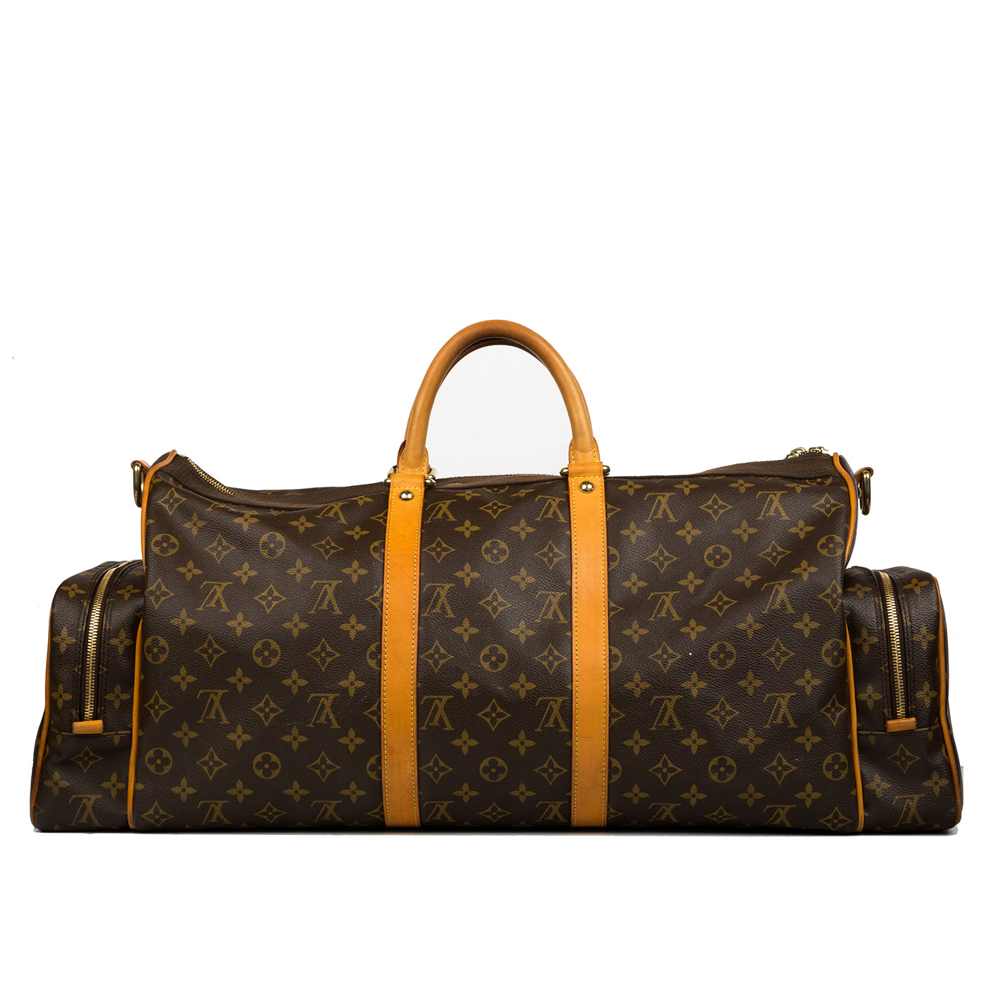 The ideal companion to accompany you on all your journeys, this Louis Vuitton travel bag the perfect balance between fashion and function. Luxurious and glamorous but also practical, you can comfortably carry everything you may need inside the spacious compartment. Given the fact that this piece is vintage, its a true collectors item and will never go out of style. With two side pockets, two top handles, beige leather and brown fabric trimmings, this bag is sleek, stylish and sophisticated. The ultimate go-to when you need to carry your whole world with you, the Louis Vuitton travel bag is a must-have.