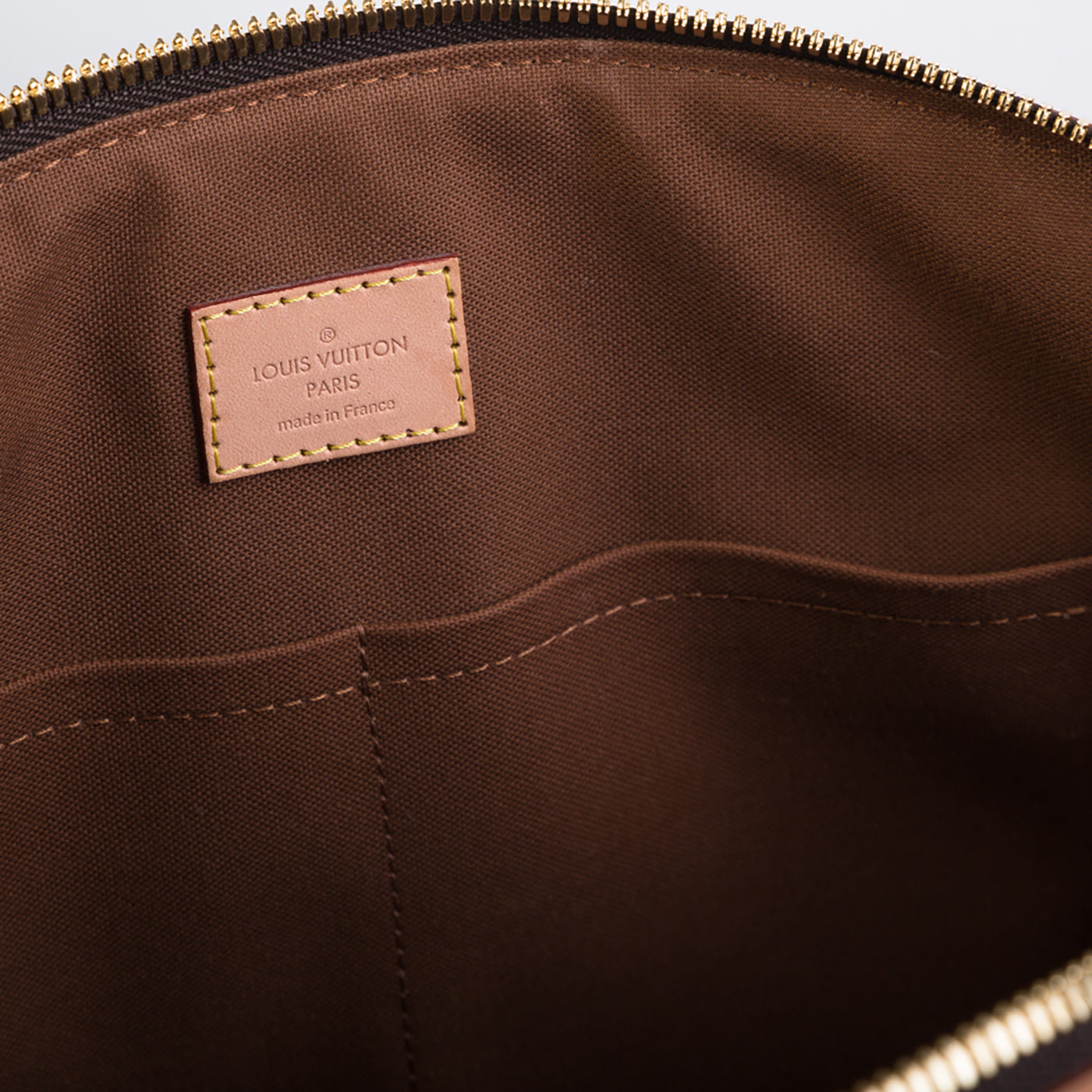 Introduced in 2007, Louis Vuitton presented the Tivoli GM bag. Featuring their iconic monogram canvas, beige leather piping and handles with buckle detailing, the Tivoli is the ideal every-day bag. With its structured silhouette and timeless appearance, the Tivoli can be worn with any casual outfit. Whether you're running errands, grocery shopping, or out for a quick lunch with your girlfriends, the Tivoli is the perfect accessory to carry by your side. Fit all your every day essentials inside the spacious interior while remaining, sleek, stylish, and sophisticated. A well-worthy addition to any handbag collection, the Tivoli is the ideal piece for any woman with a love for luxury and an even bigger love for retro LV.