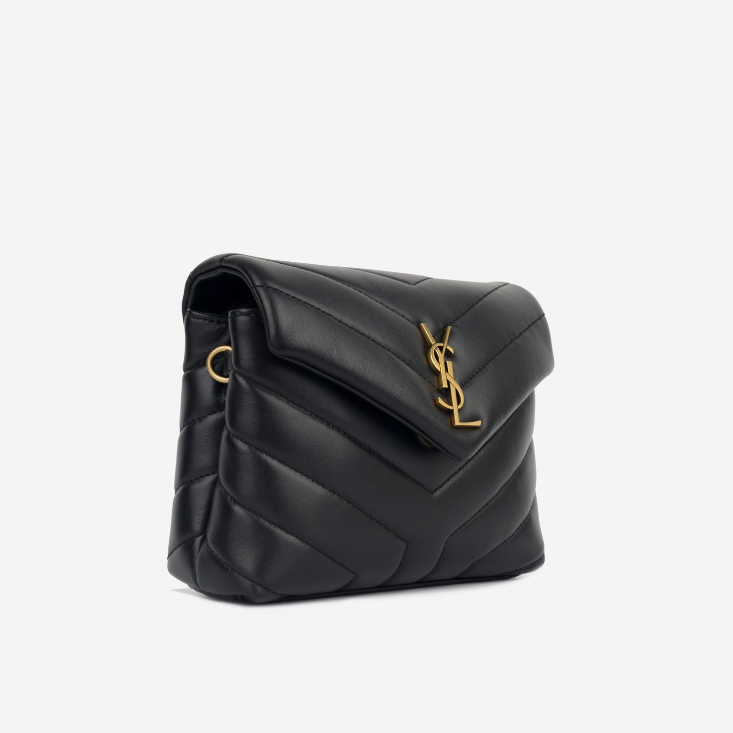 Introducing Saint Laurent's iconic Lou Toy bag – the ideal accessory for the modern, on-the-go woman with a penchant for luxury. Meticulously crafted in smooth black matelassé leather and paired with sleek gold hardware, the Lou perfectly encapsulates the brand's edgy-glam aesthetic. Beyond its stylish allure, this bag is designed to be both practical and chic, making it a must-have for those who appreciate the blend of sophistication and functionality.