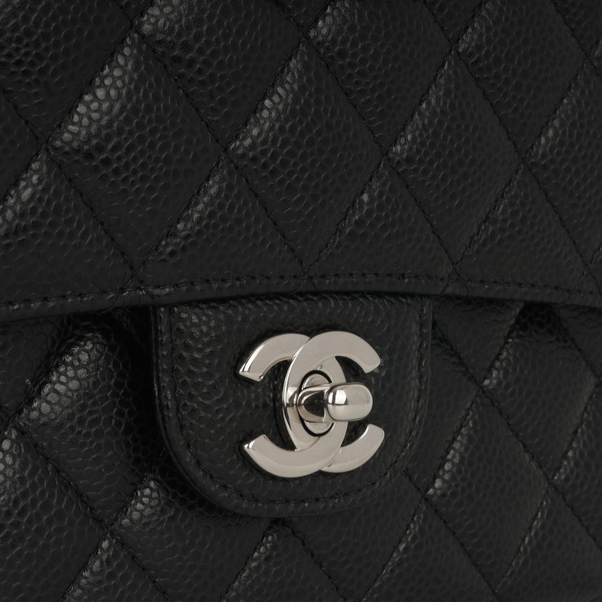- Black quilted caviar leather