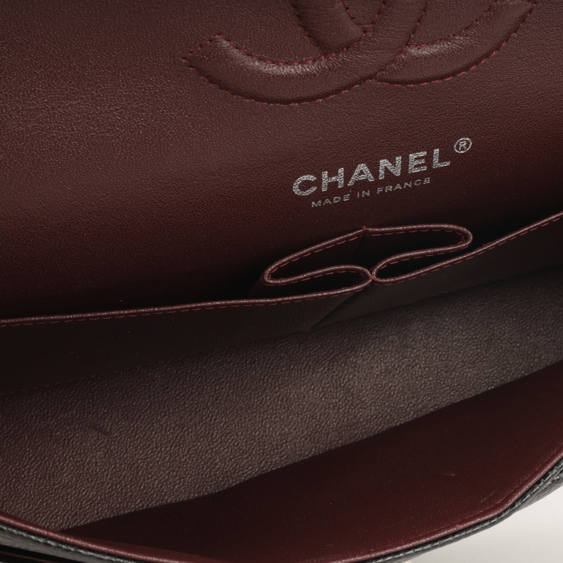 - Burgundy lambskin interior lining